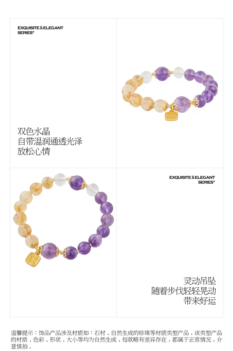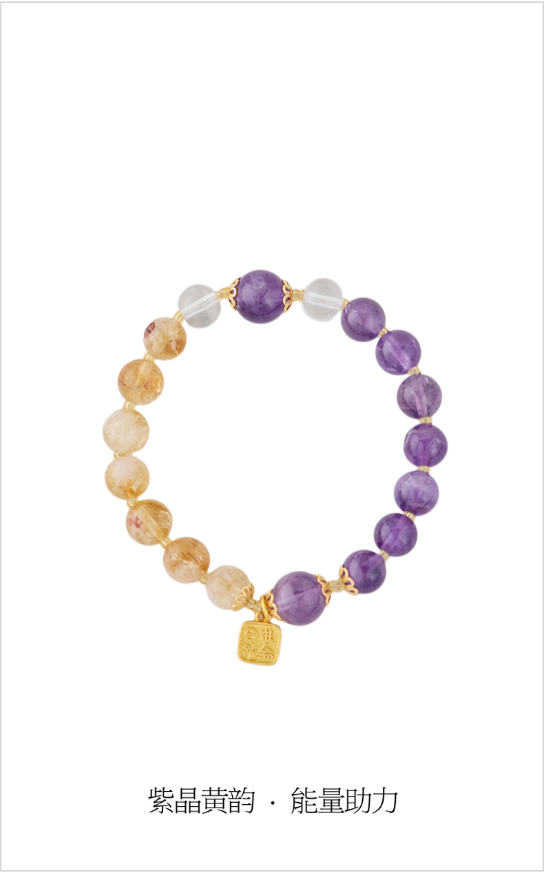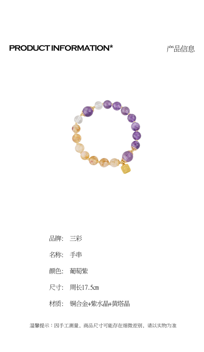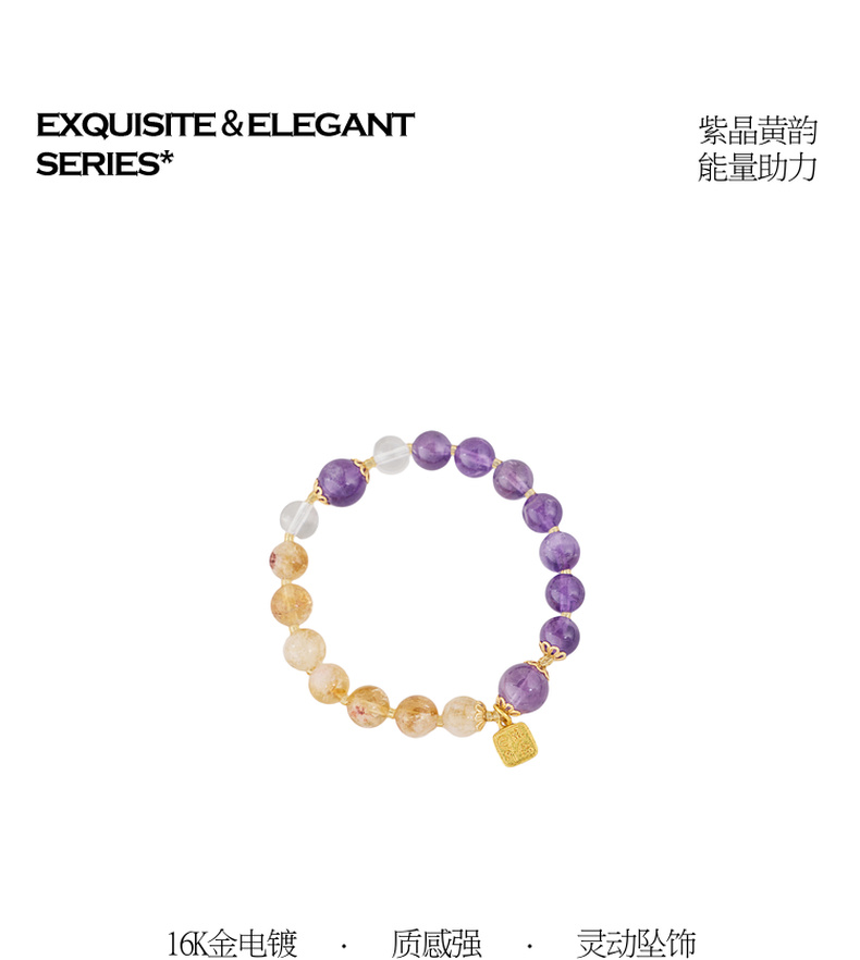 三彩2026新款黄紫撞色水晶手串国风轻复古治愈氛围感通勤茶歇小众