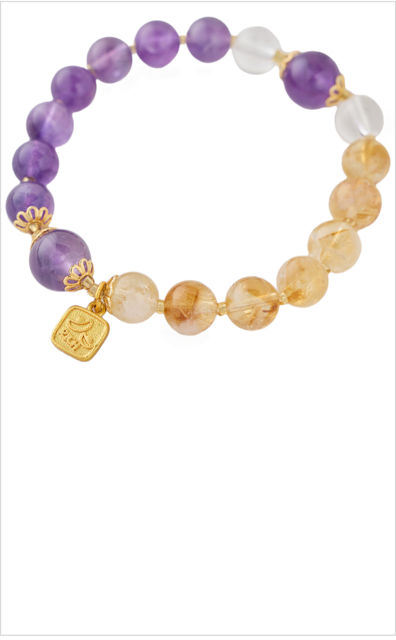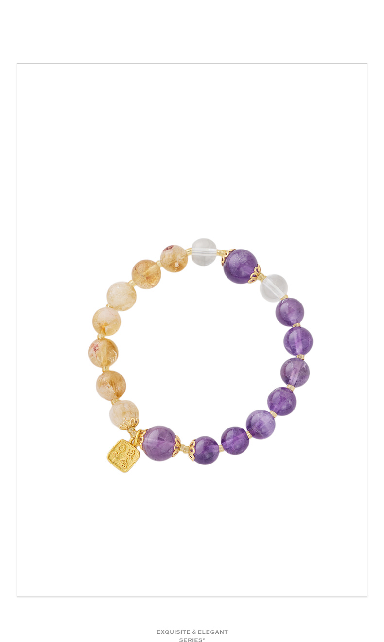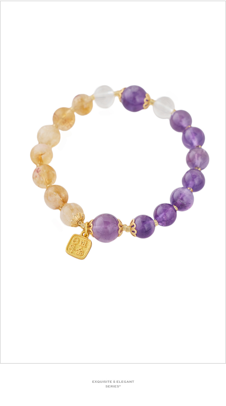 三彩2026新款黄紫撞色水晶手串国风轻复古治愈氛围感通勤茶歇小众