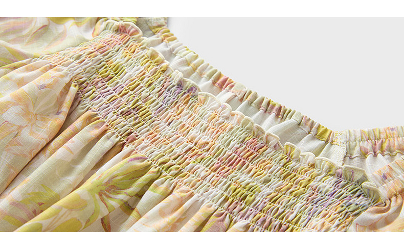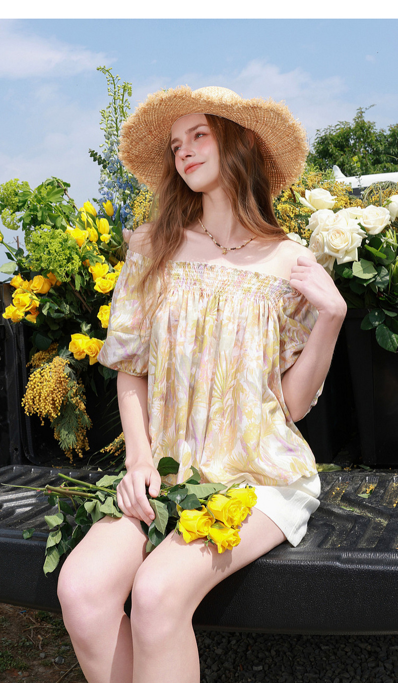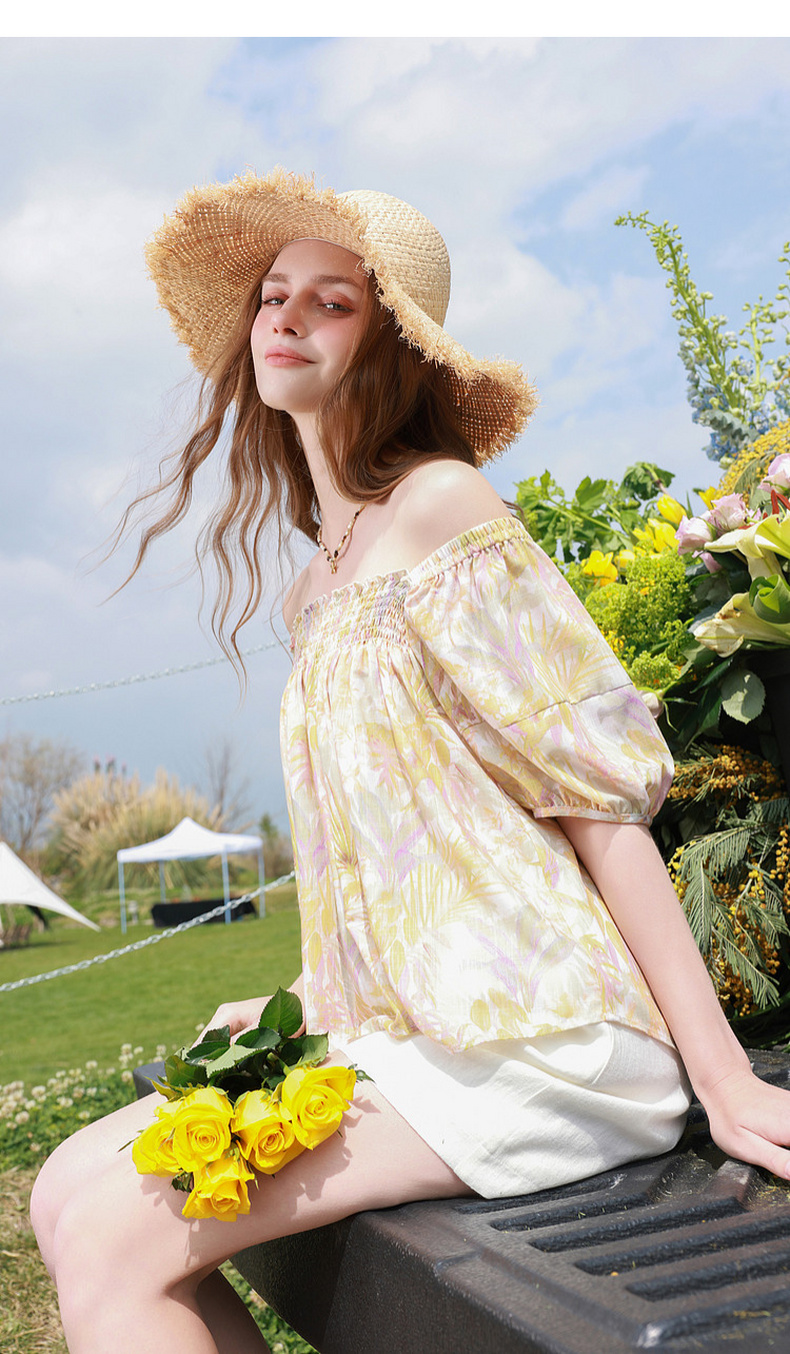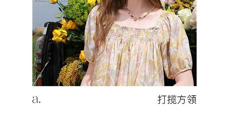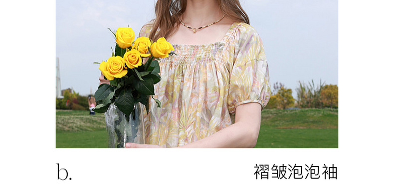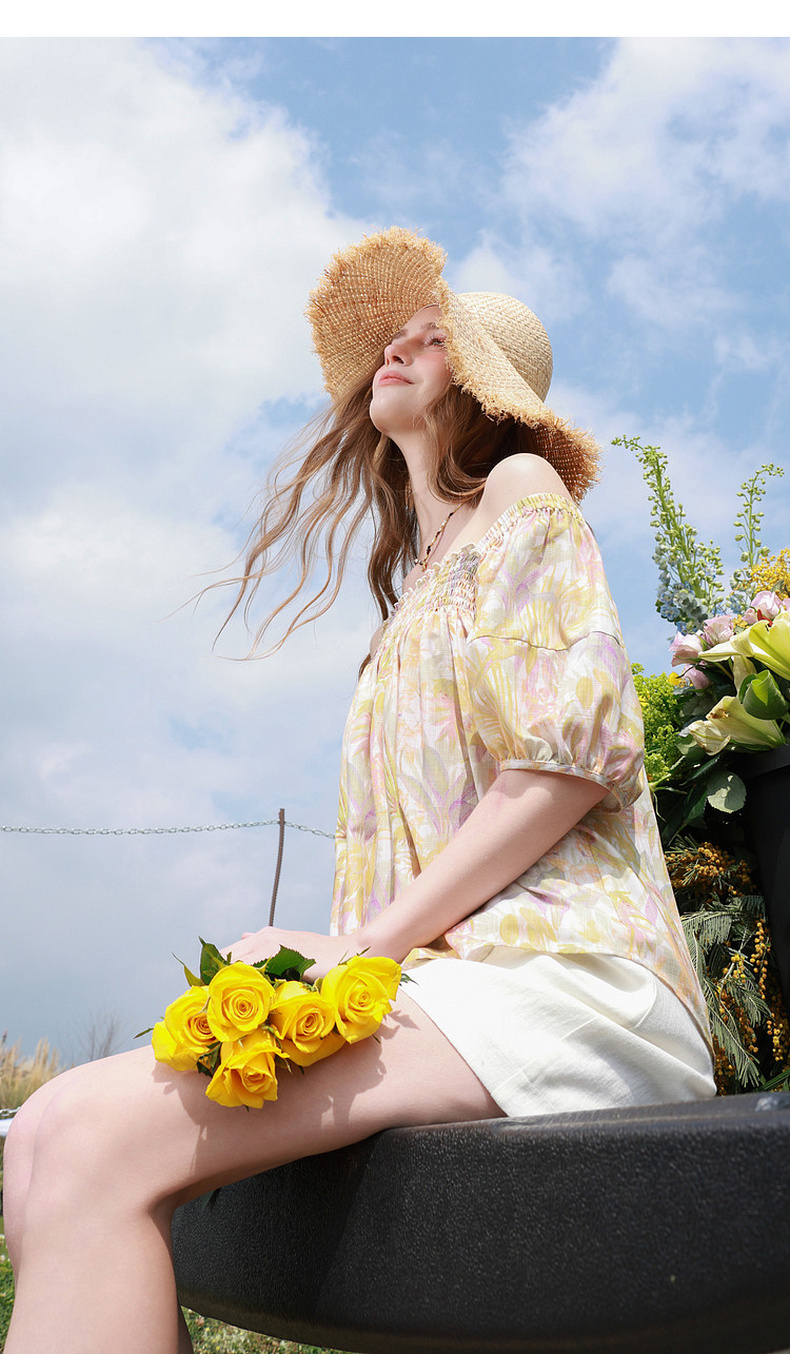 三彩2026夏季新款印花小衫宽松娃娃衫泡泡袖方领套头上衣M