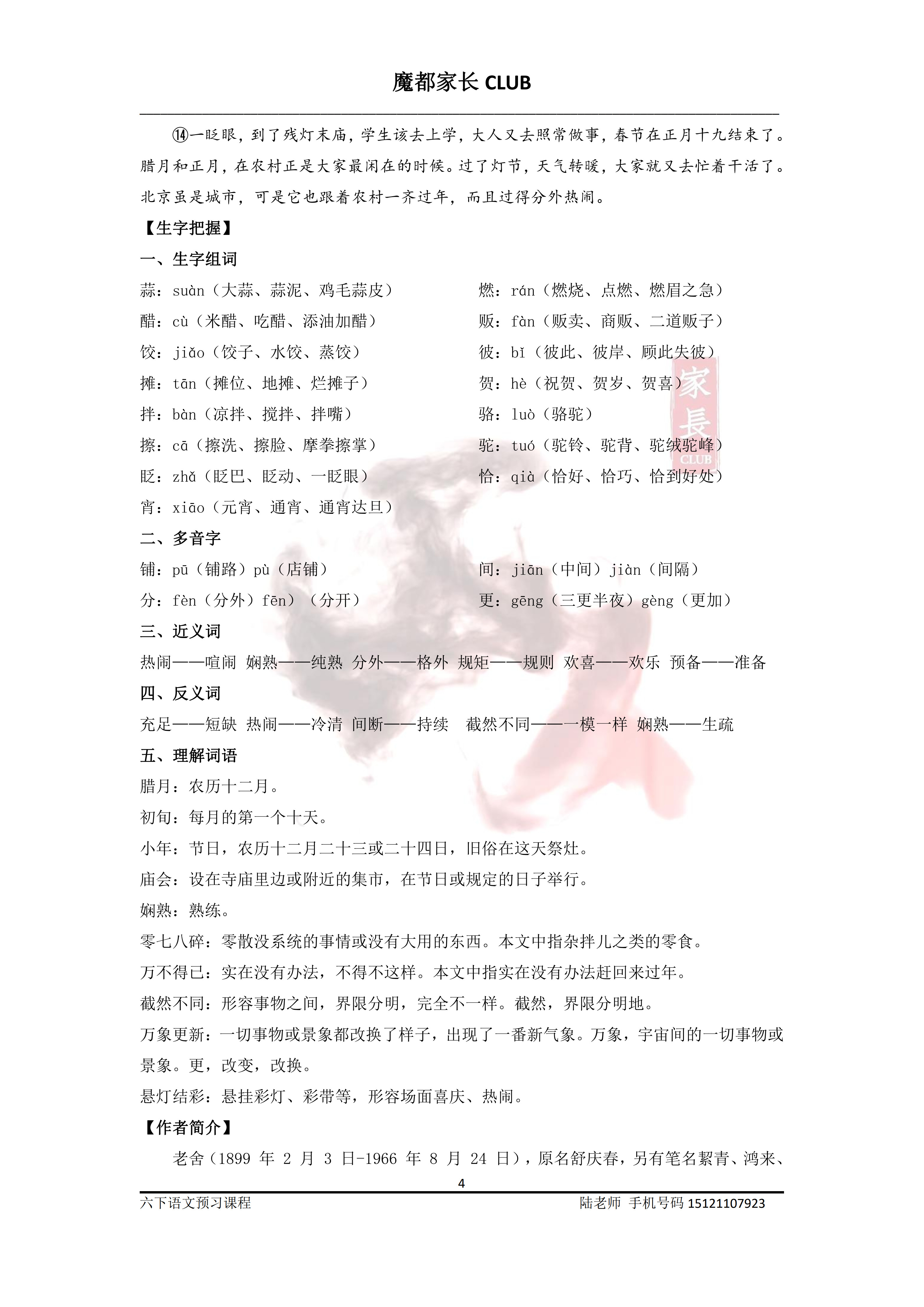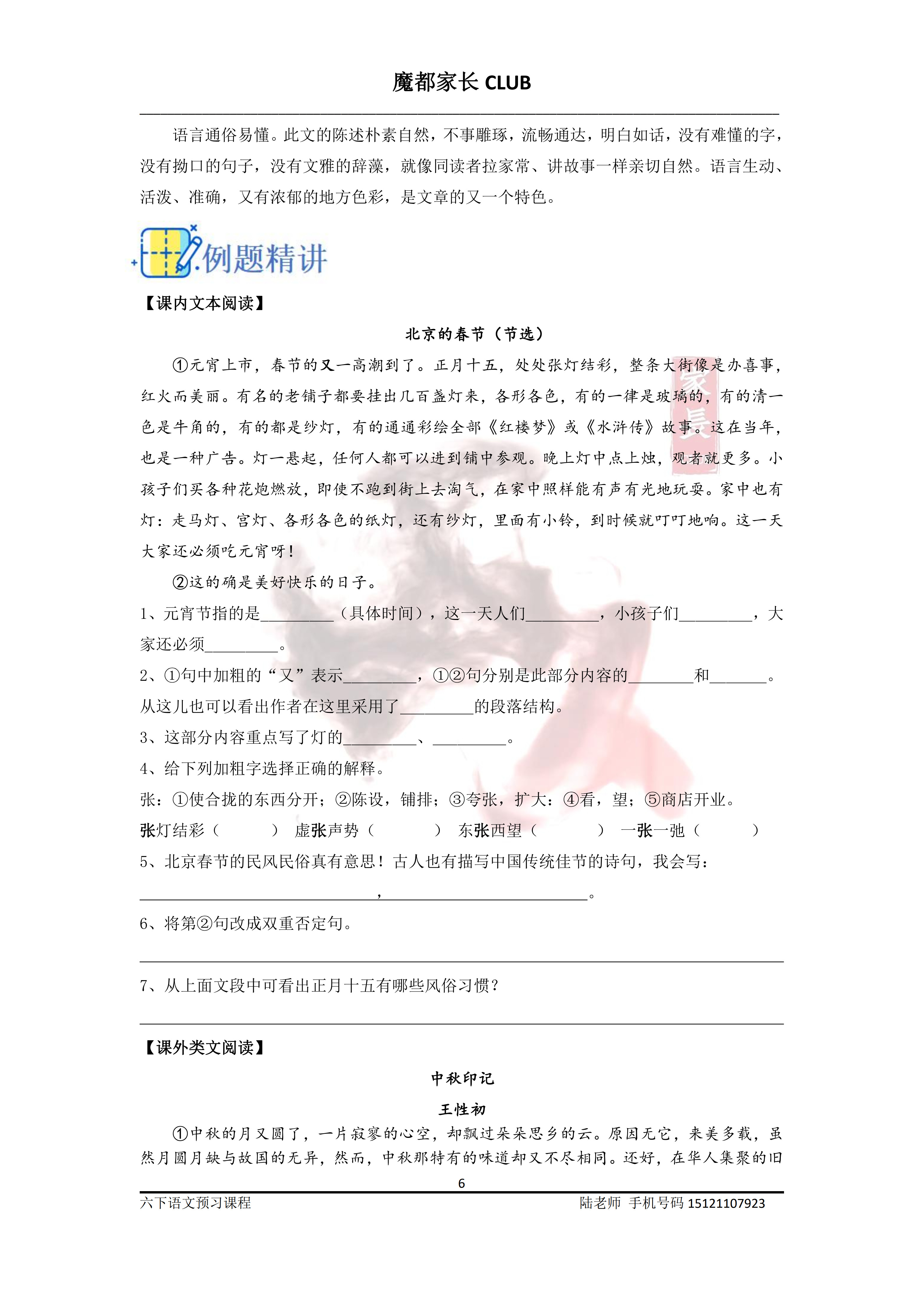 26寒 语文预习阅读 6年级下7年级下(部编版)