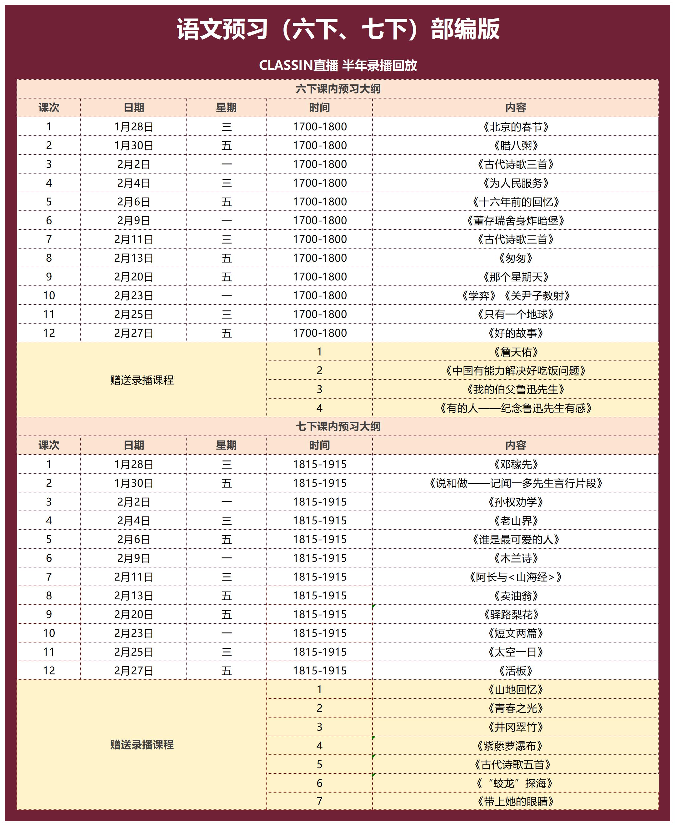 🚩6年级下册:1月28日起每周1、3、5 1700-1800