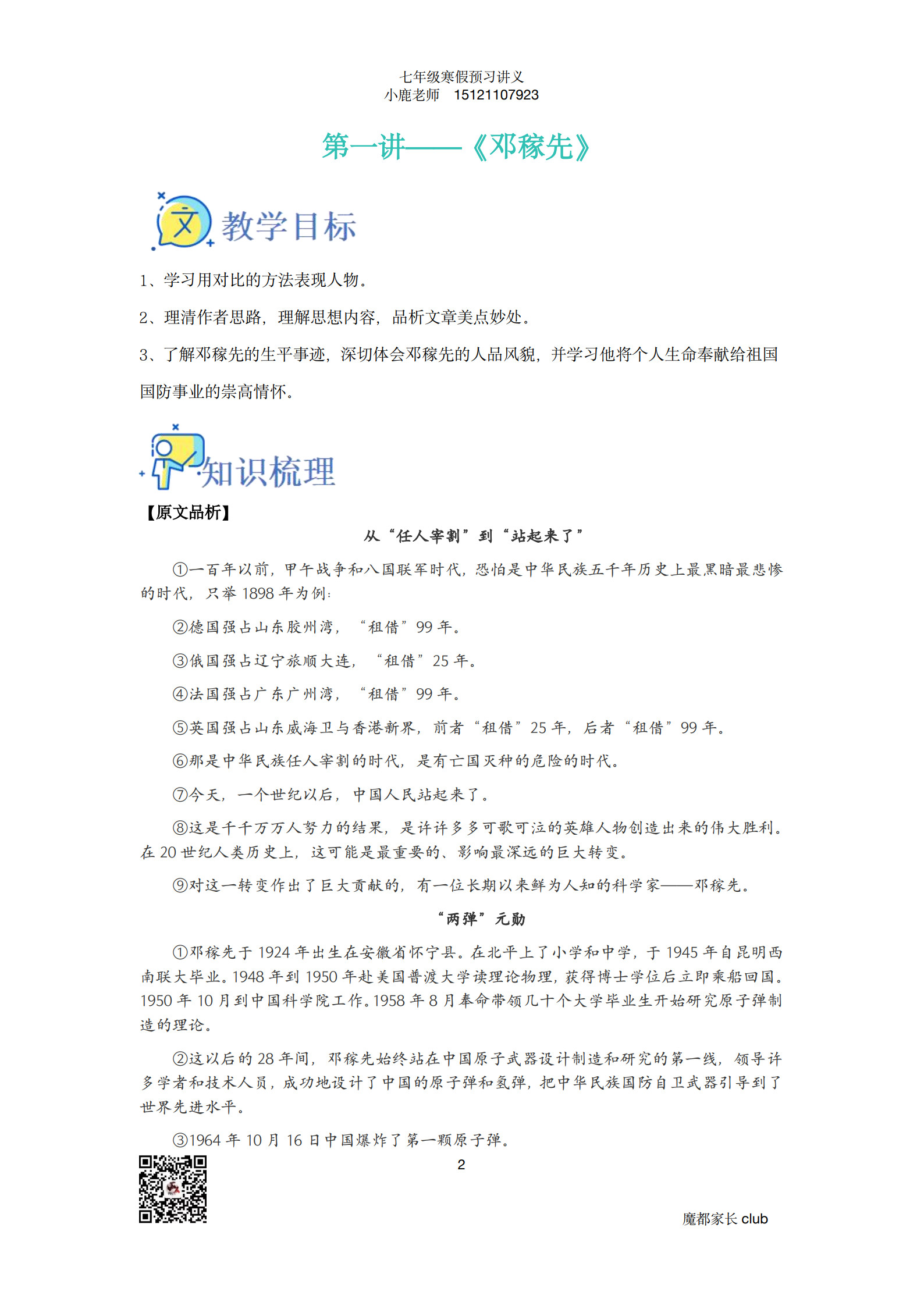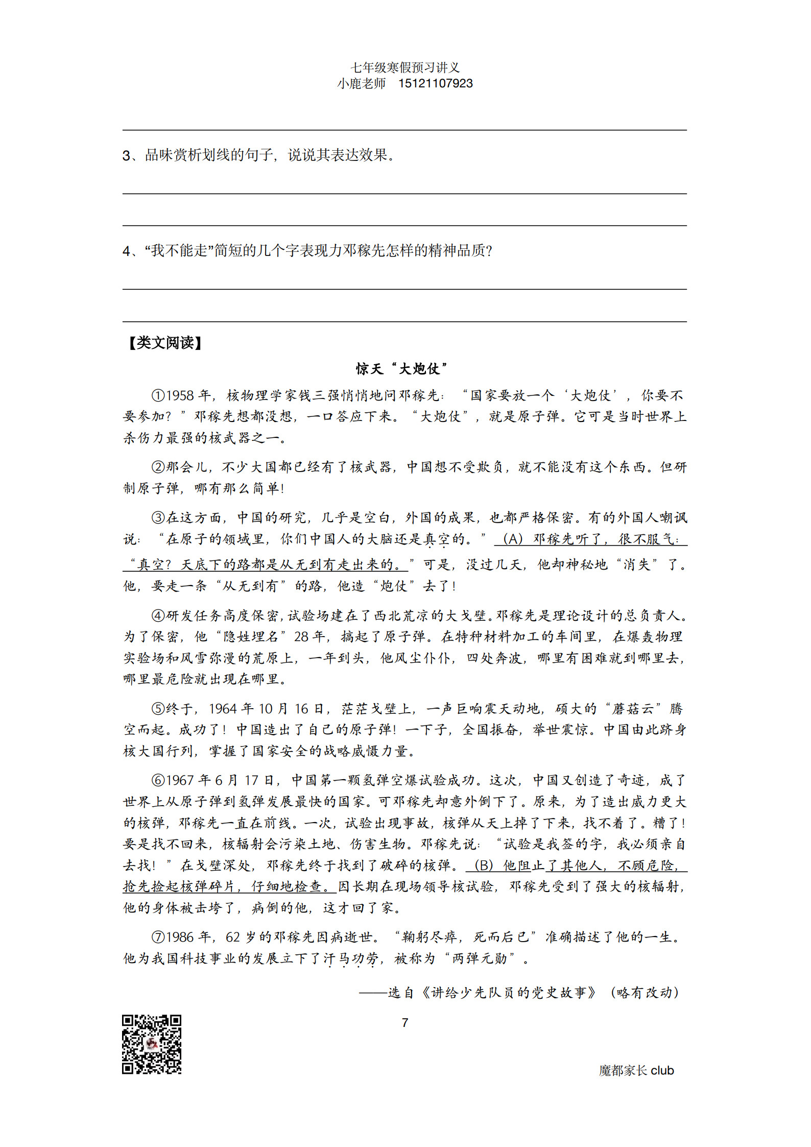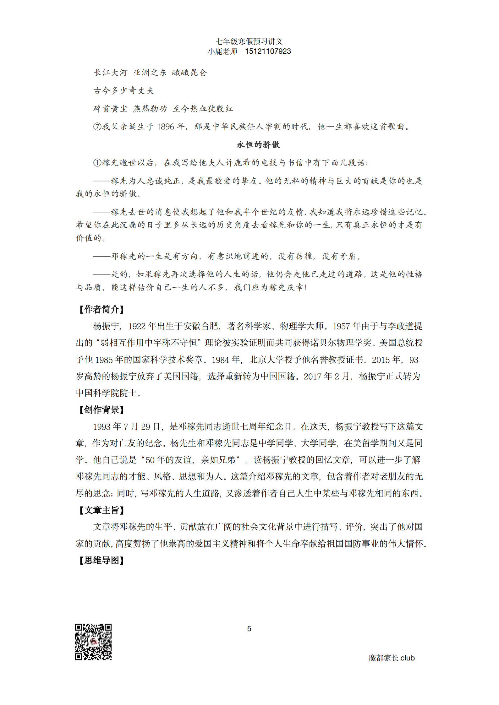 🎉课程讲义:针对6年级下7年级下册书本(部编版)