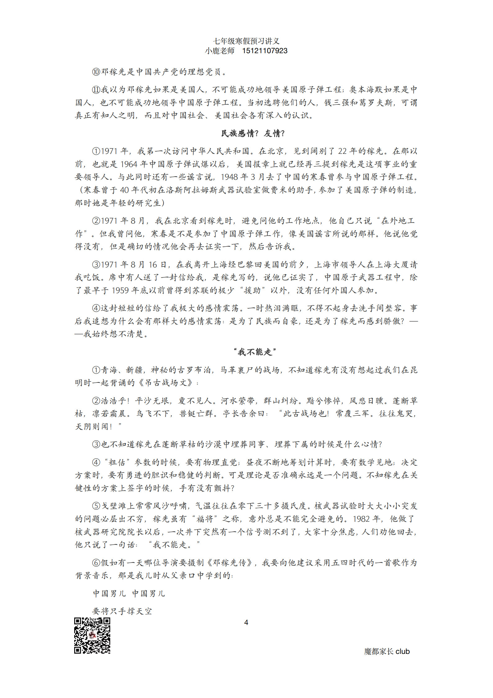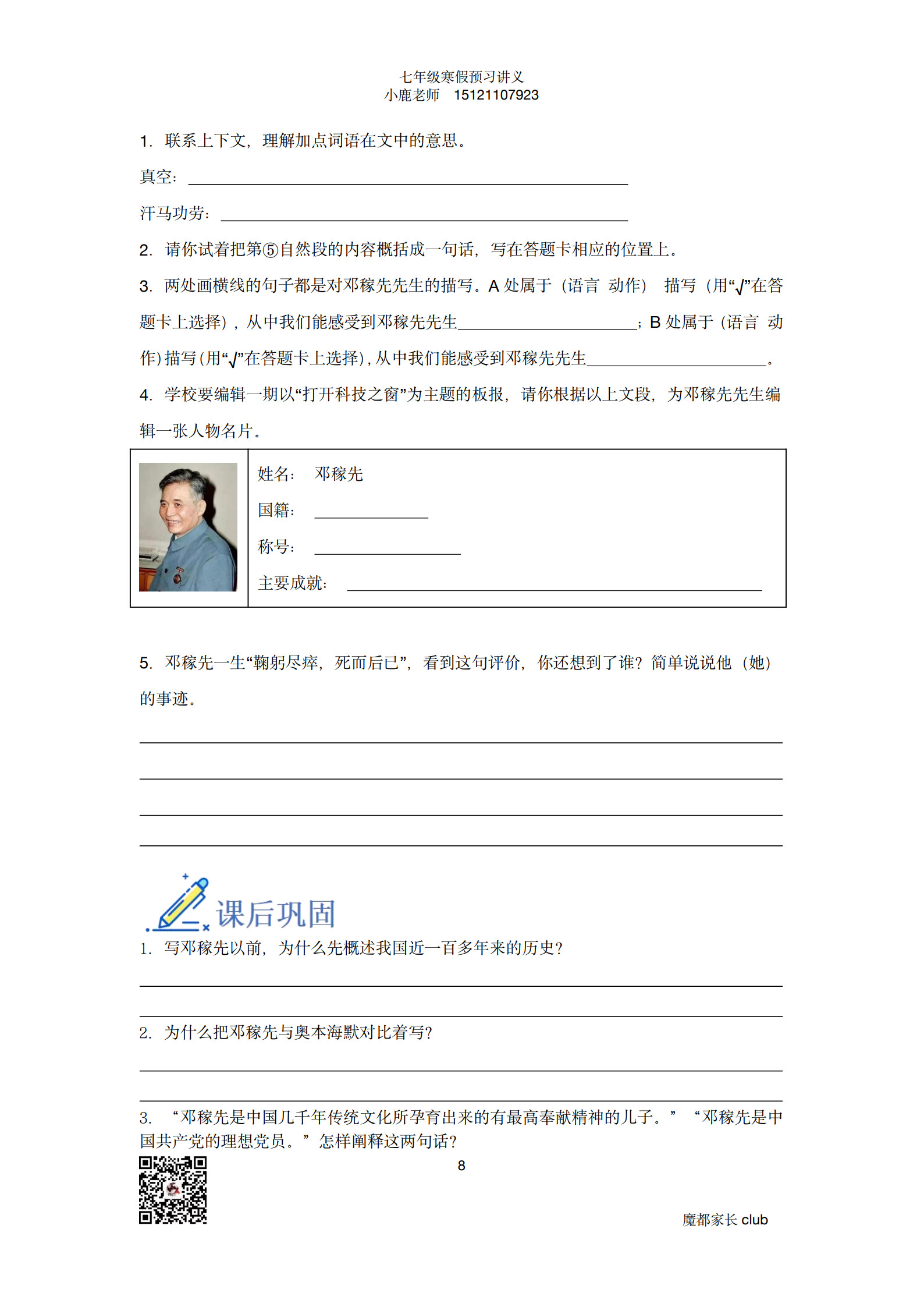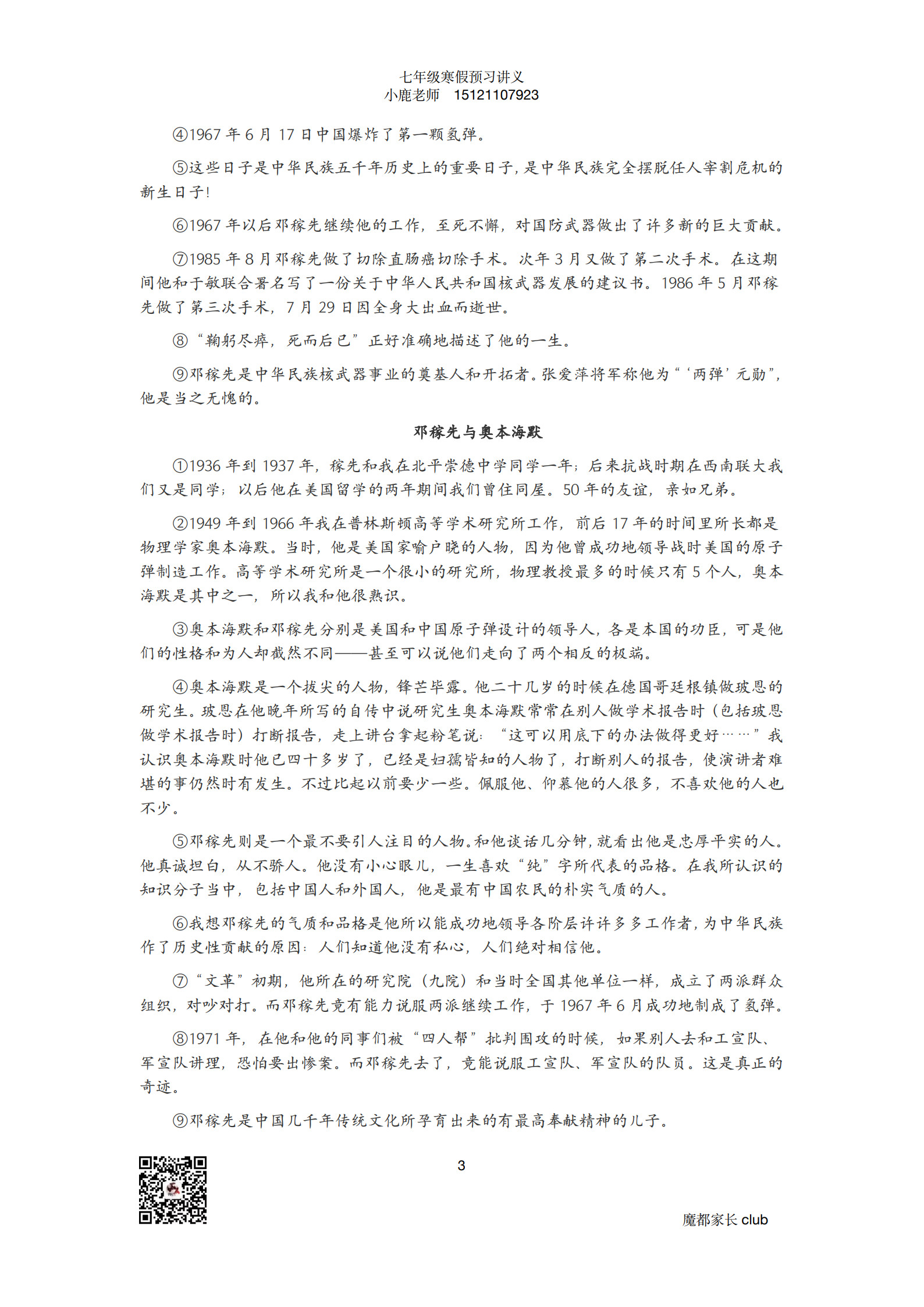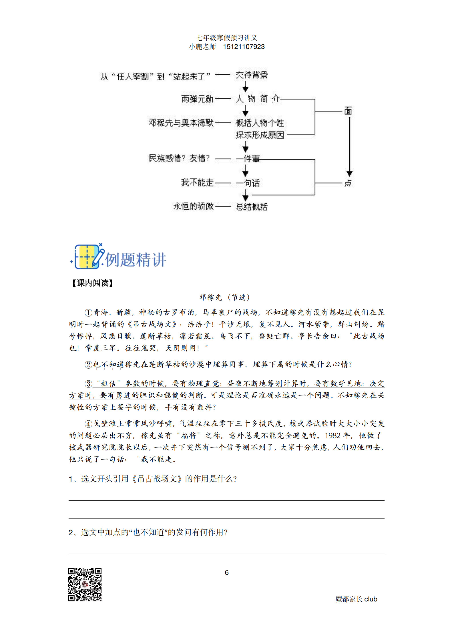 🎉课程讲义:针对6年级下7年级下册书本(部编版)