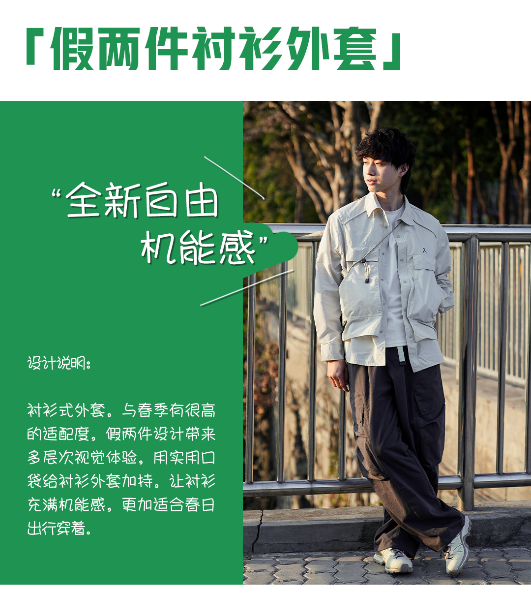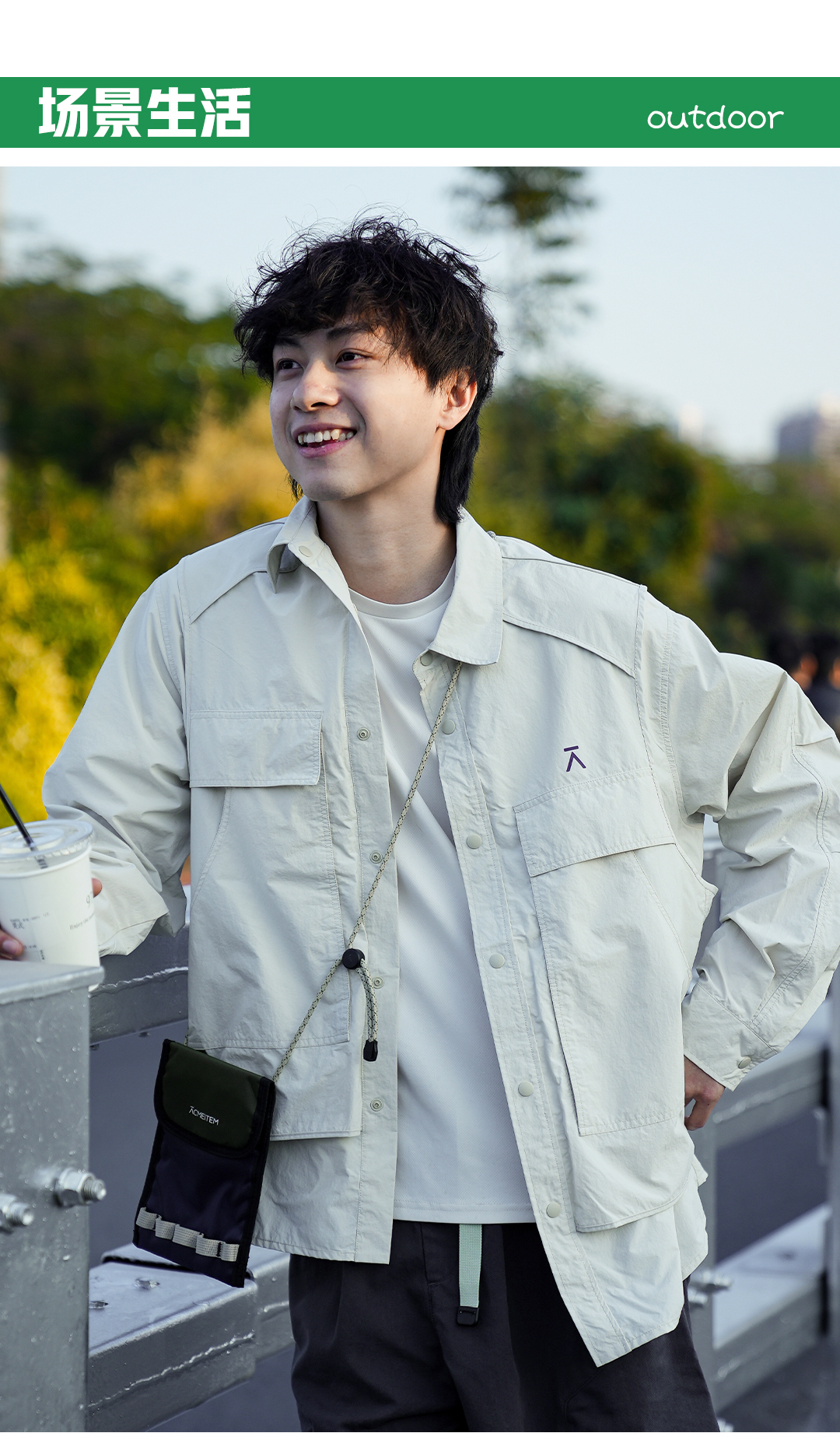 【品牌特惠】ACMEITEM 爱棵米 户外机能风假两件衬衫外套宽松速干防晒开衫男女GAG3210850A