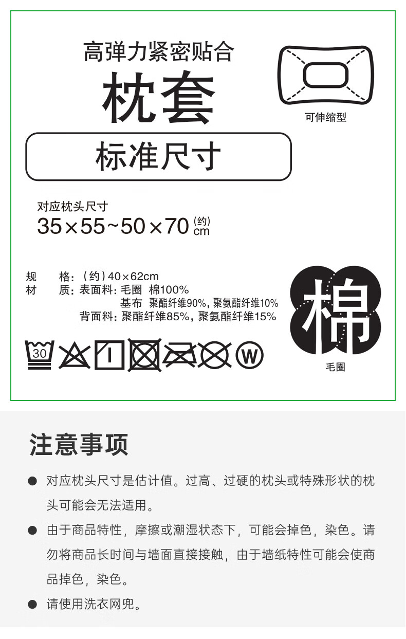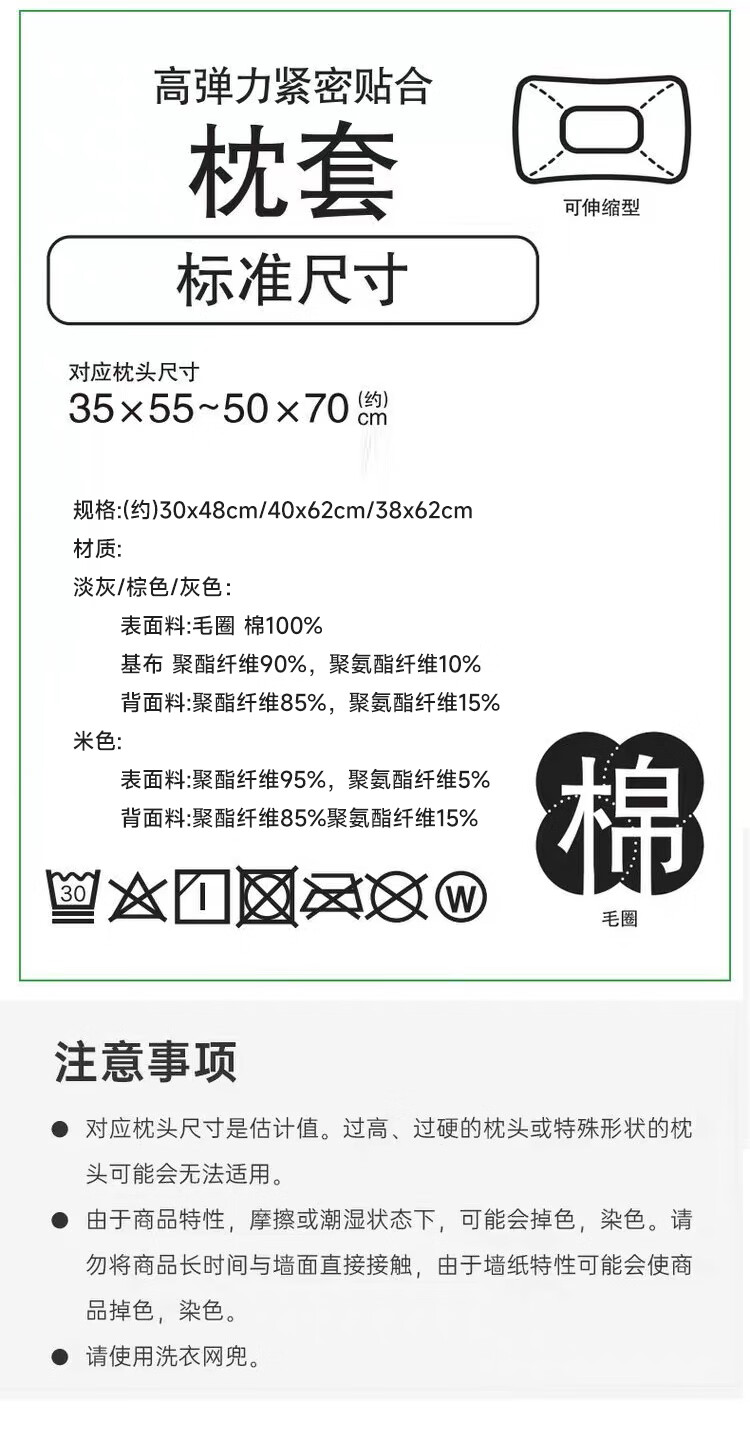 日式四季通用单枕头套无芯 简约高弹伸缩枕套枕巾毛圈