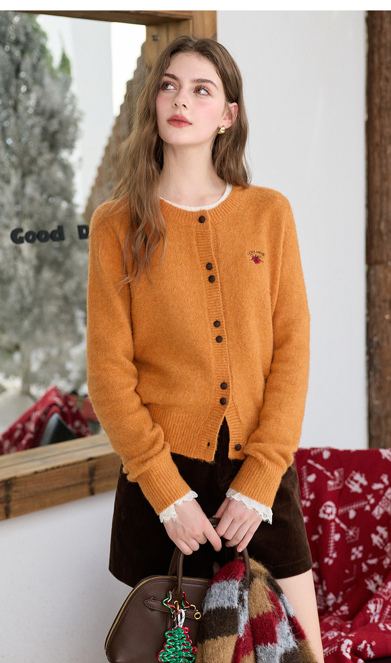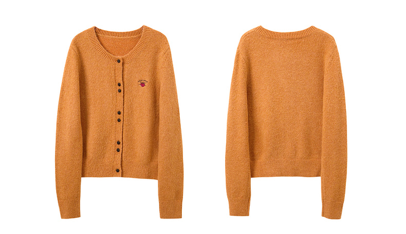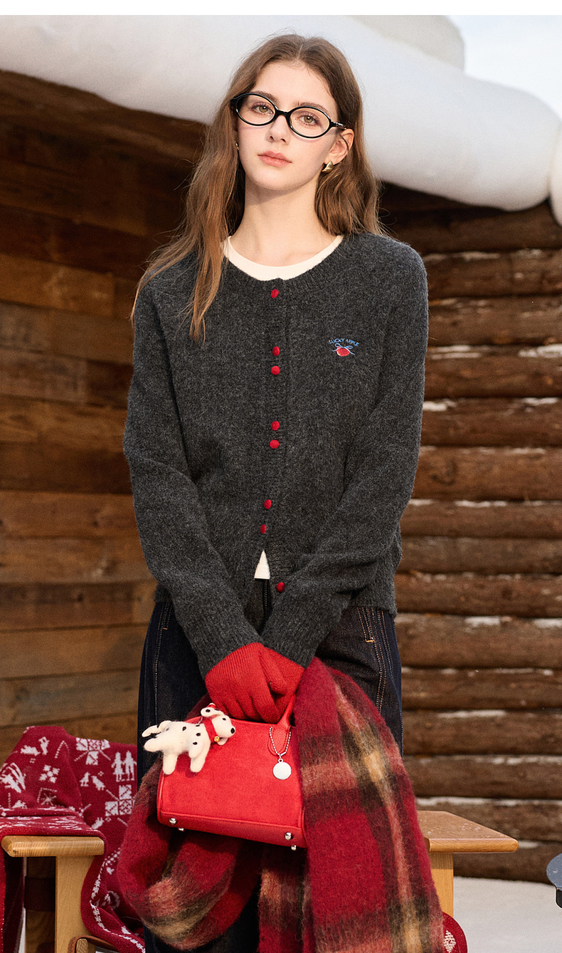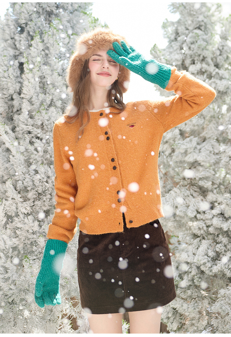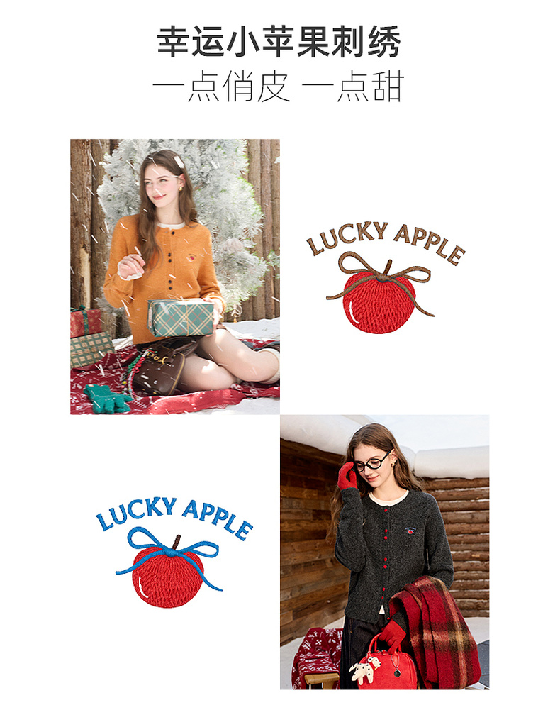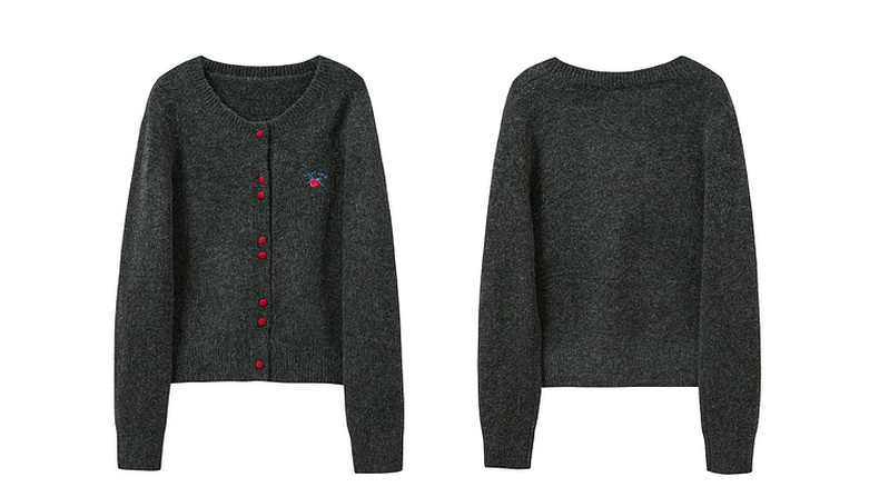 三彩2026春季新款撞色刺绣针织衫圆领毛衫开衫休闲外套M