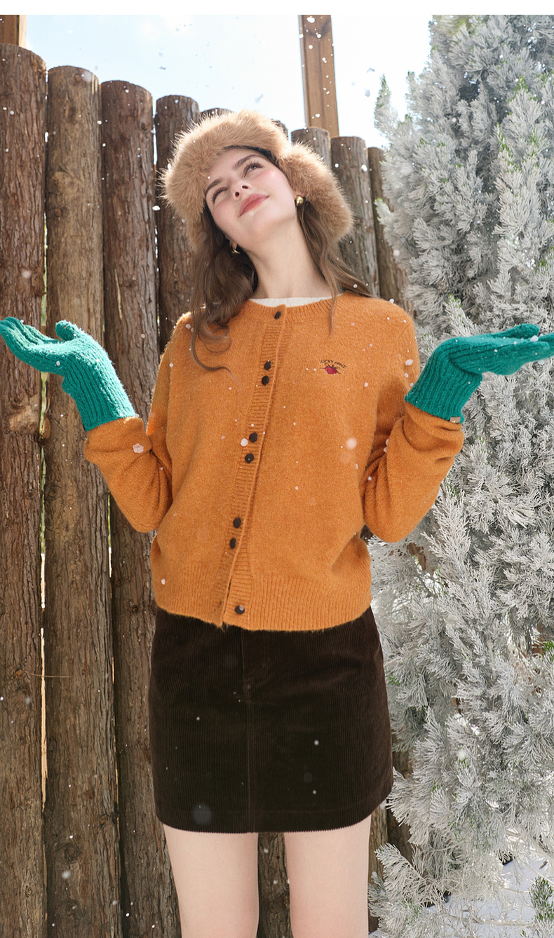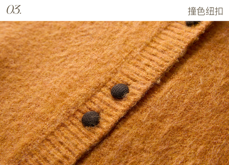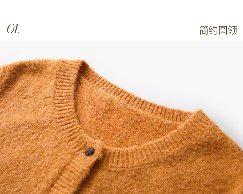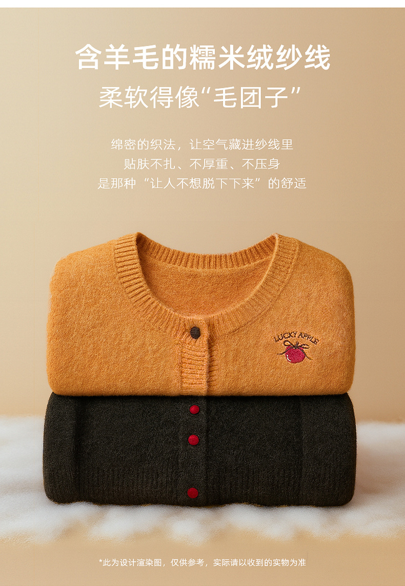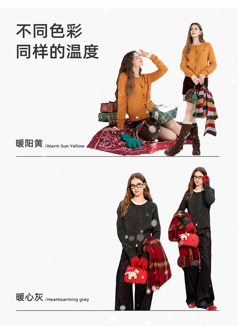 三彩2026春季新款撞色刺绣针织衫圆领毛衫开衫休闲外套M