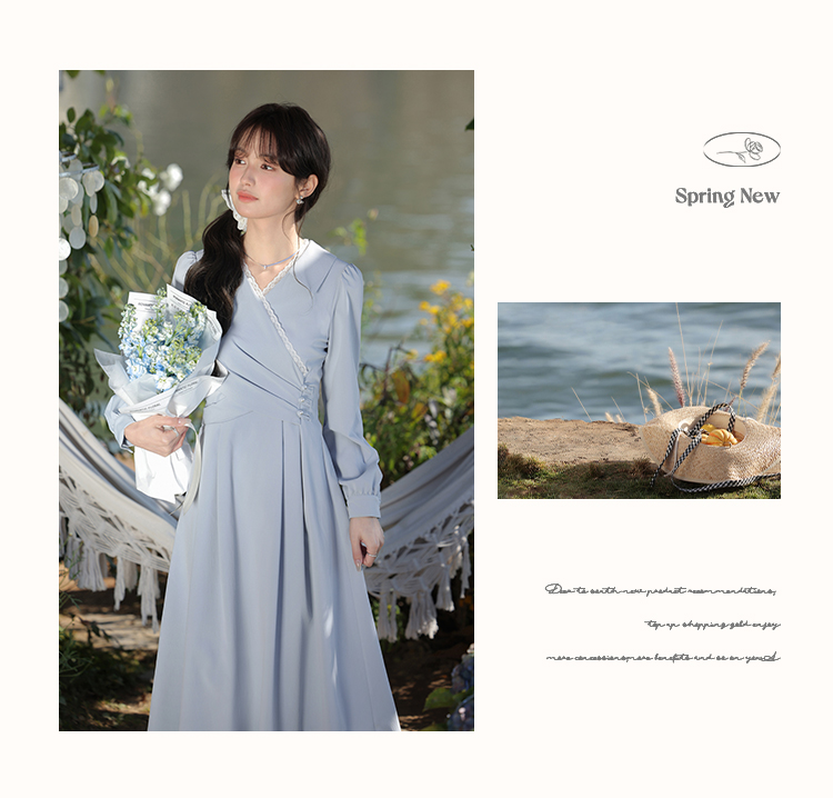 鹿向南「春日序曲」法式气质连衣裙2025新款女春季显瘦设计感裙子
