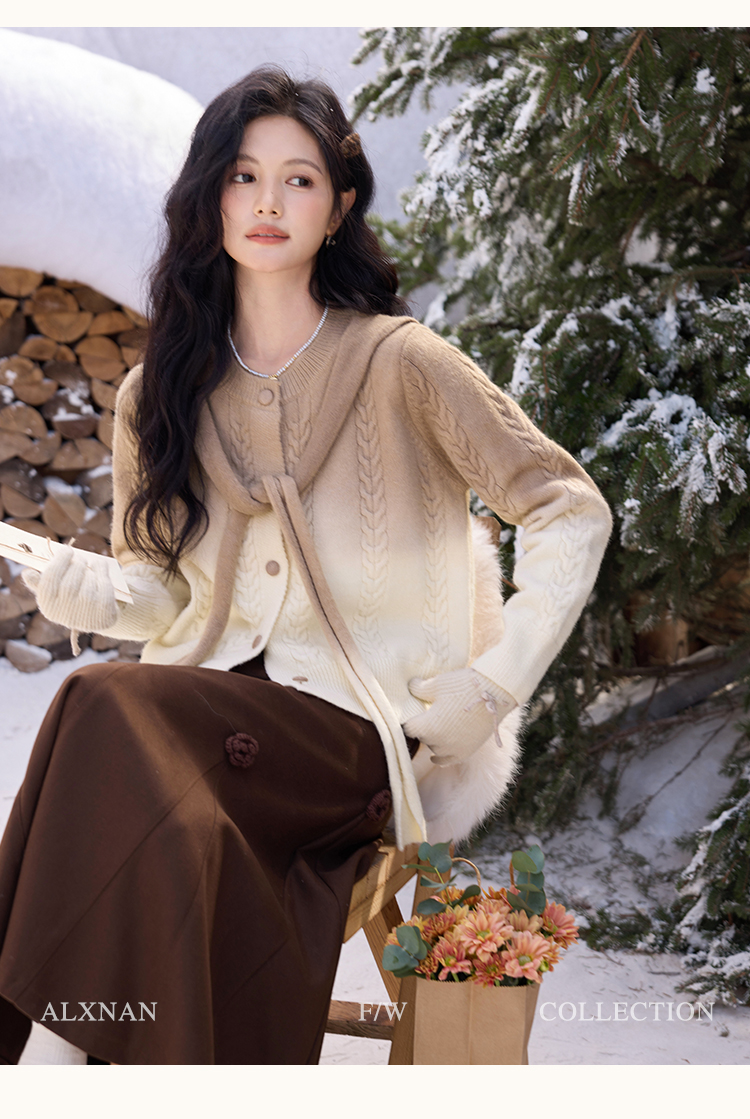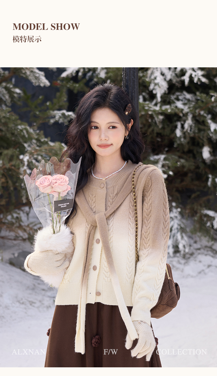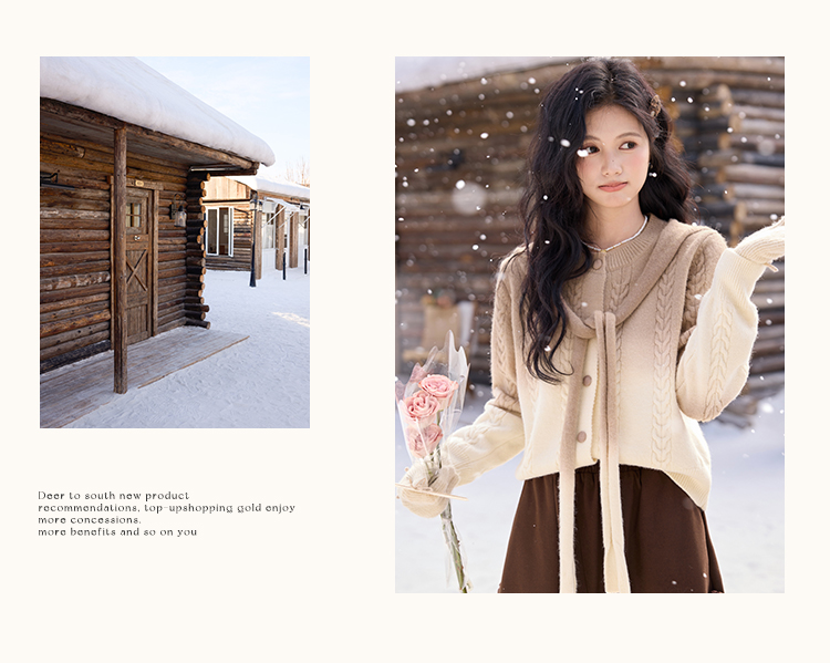 【6折秒杀】鹿向南「生椰拿铁」气质咖色毛衣开衫女2025新款冬款保暖上衣女L52158/L52158-1