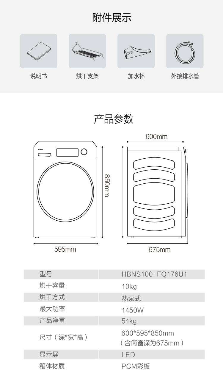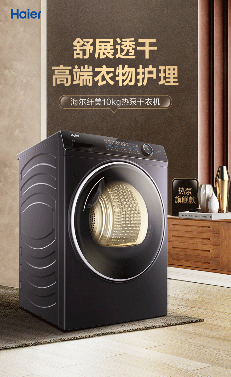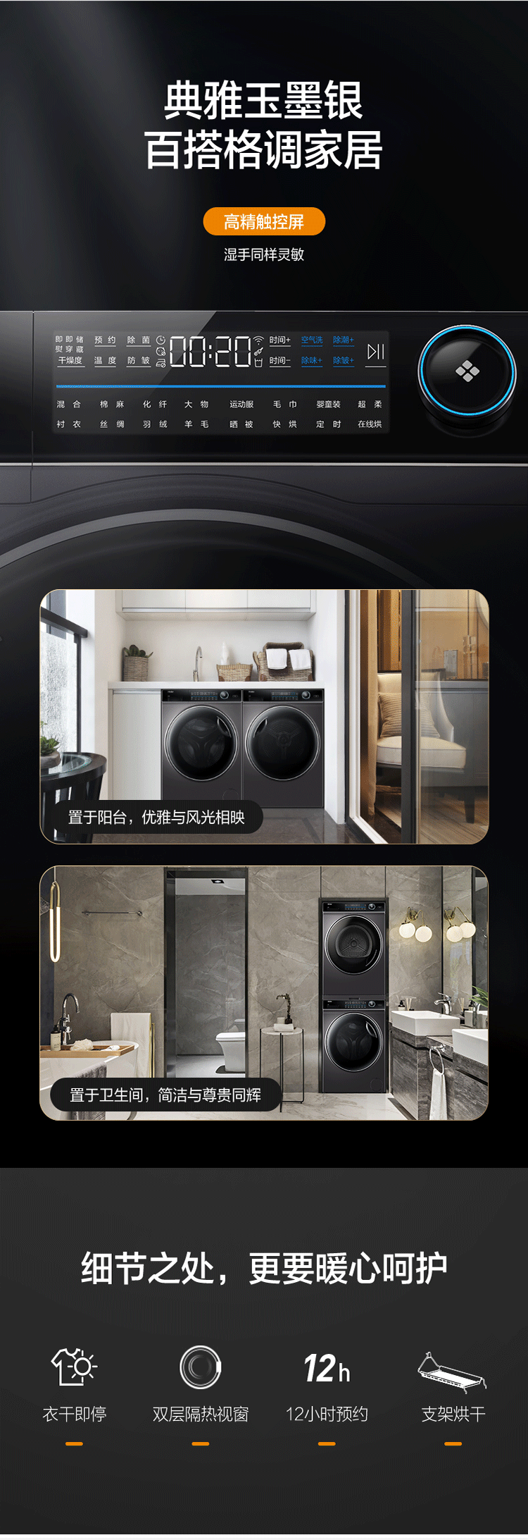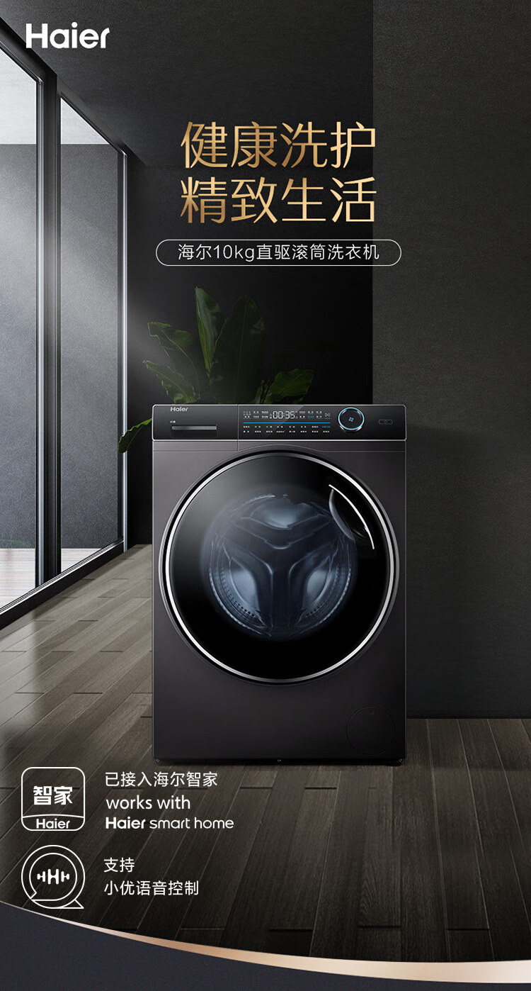 海尔(Haier)10KG滚筒洗衣机烘干套装双擎热泵直驱变频烘干机纤美系列XQG100-BD14176LU1+HBNS100-FQ176U1