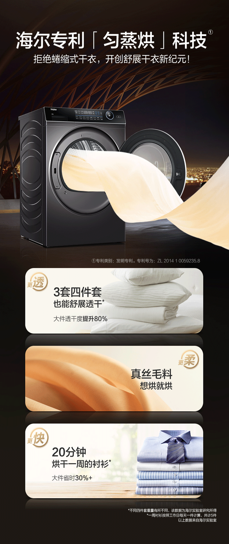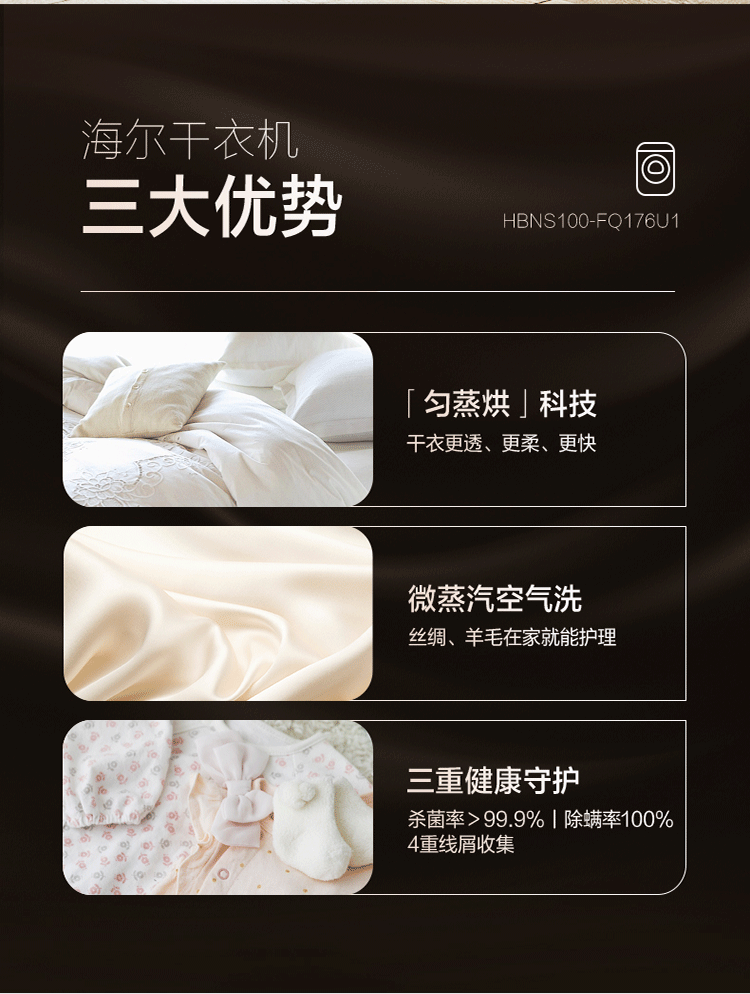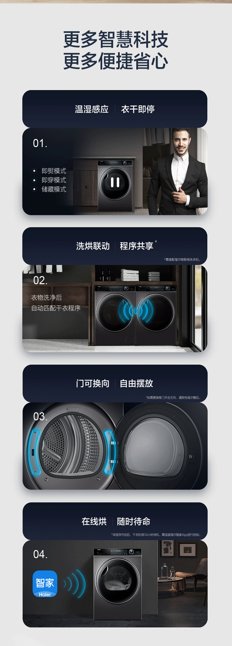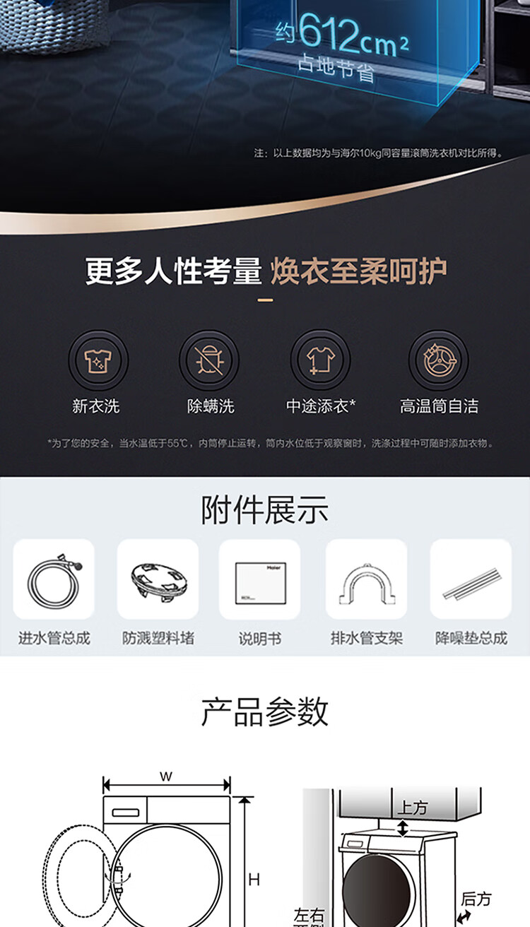 海尔(Haier)10KG滚筒洗衣机烘干套装双擎热泵直驱变频烘干机纤美系列XQG100-BD14176LU1+HBNS100-FQ176U1