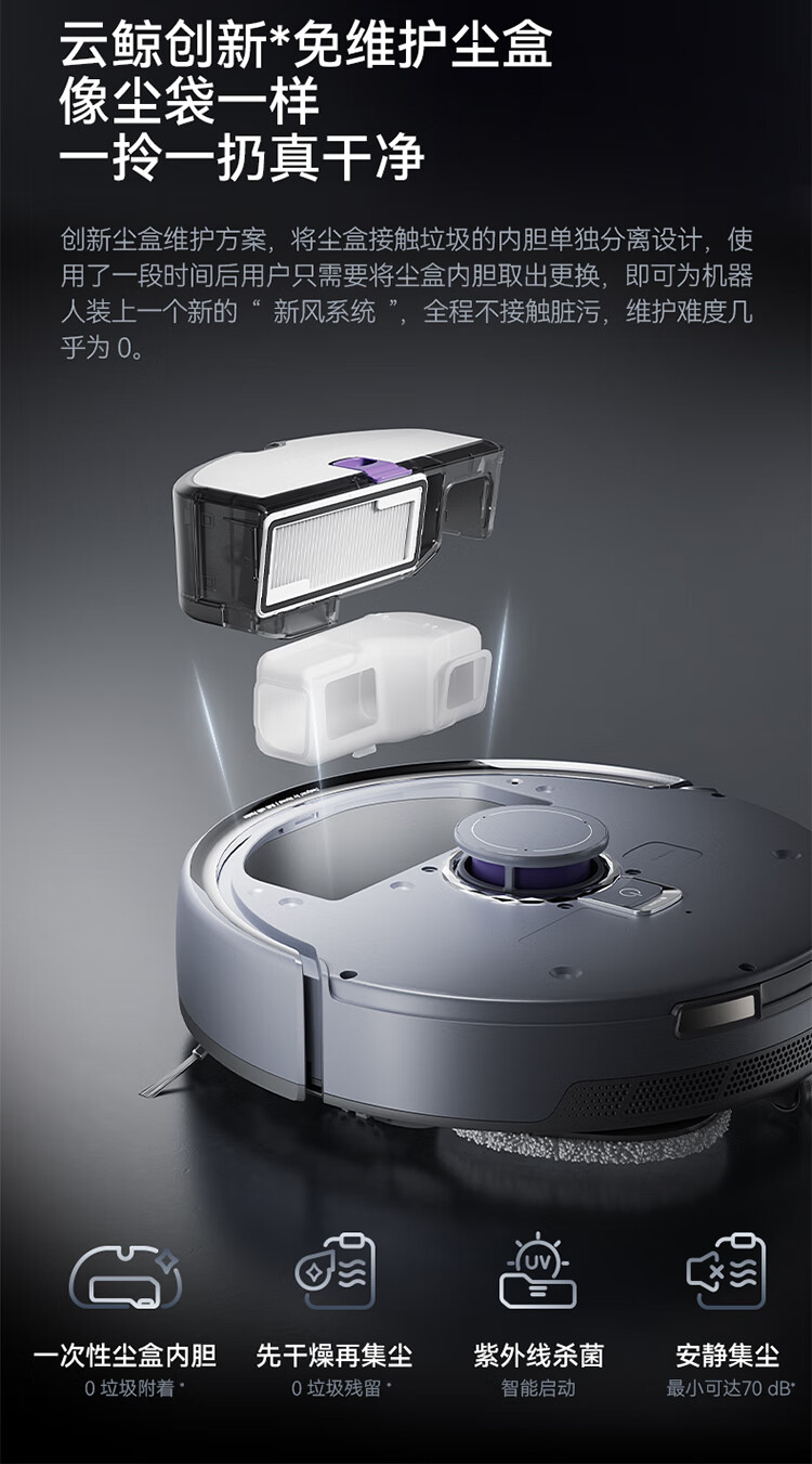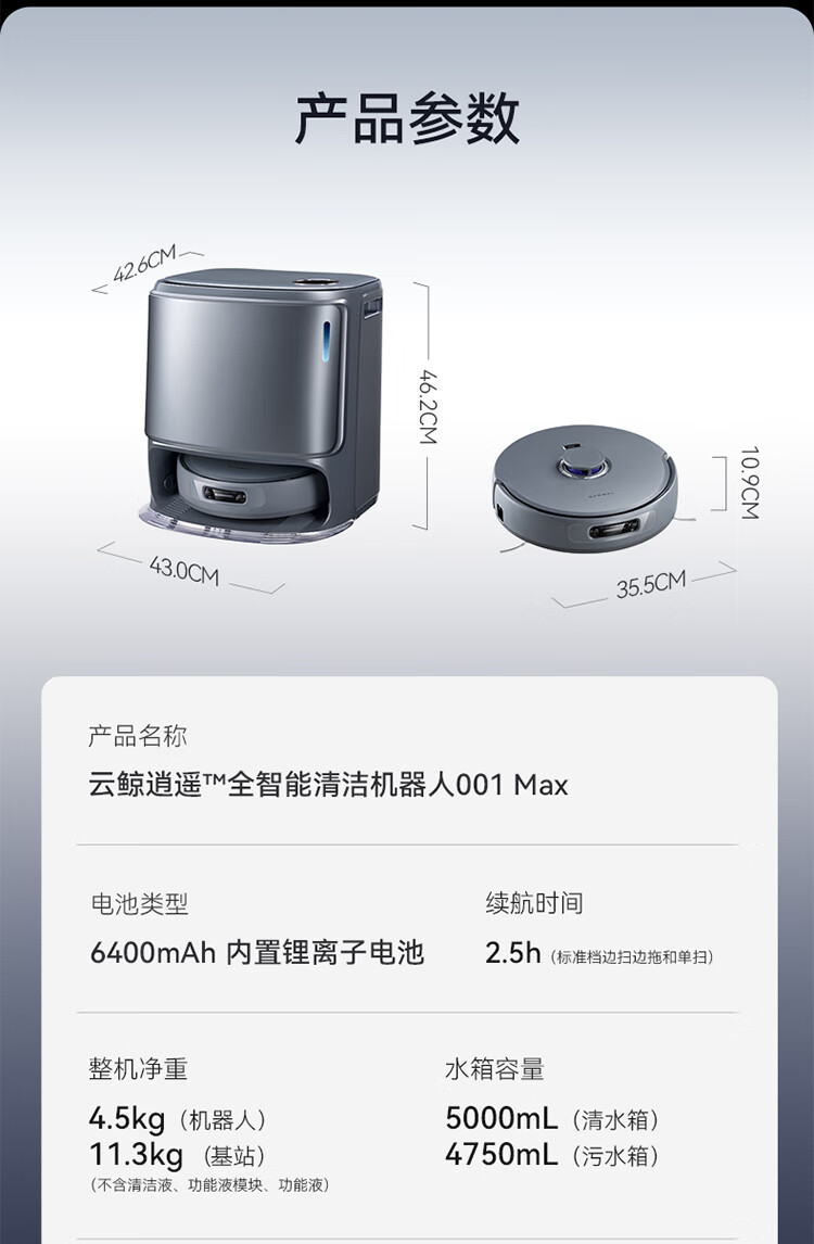 云鲸-扫地机器人-逍遥001MAX-基站集尘版-灰色-上下水版