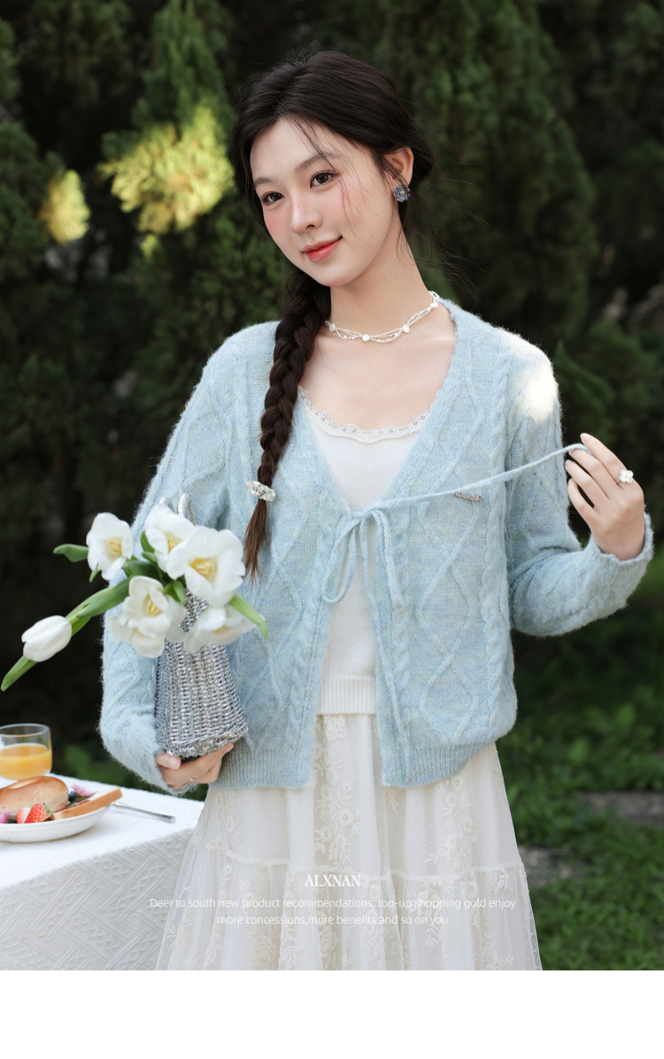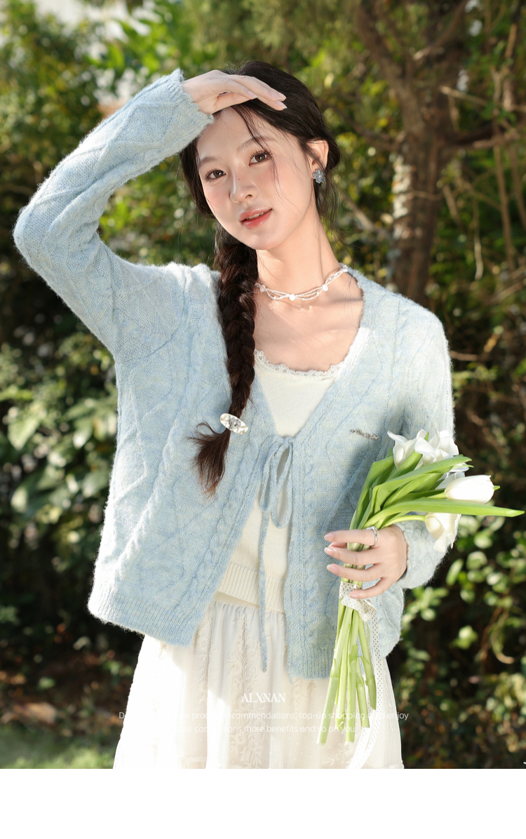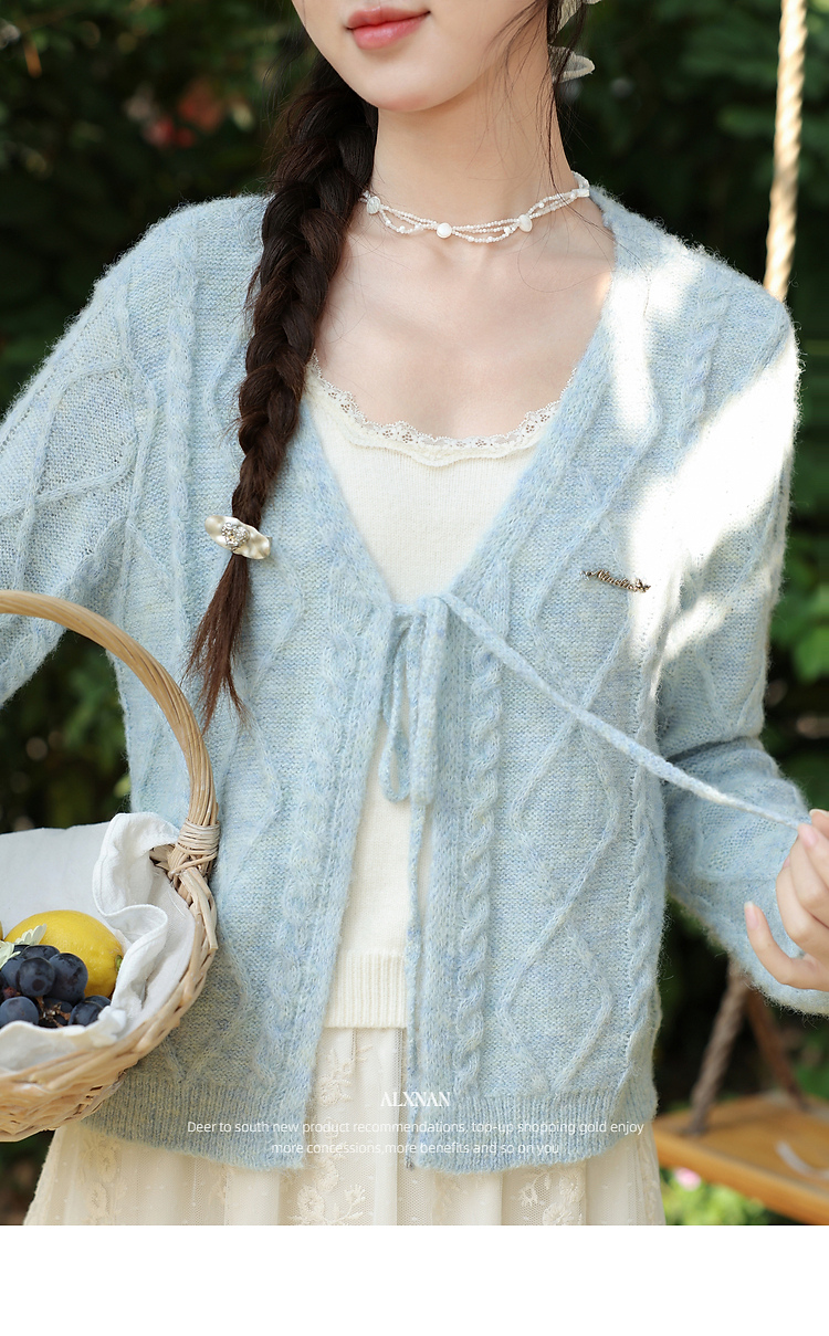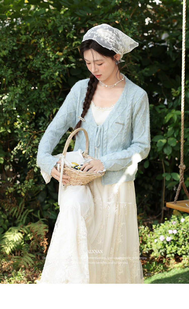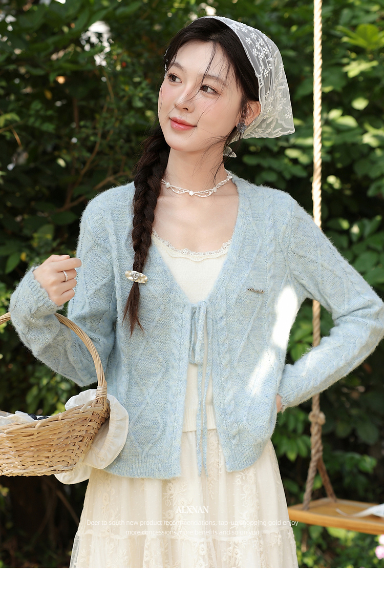 鹿向南「云絮春织」韩系蓝色针织衫女春季独特漂亮巨好看开衫上衣