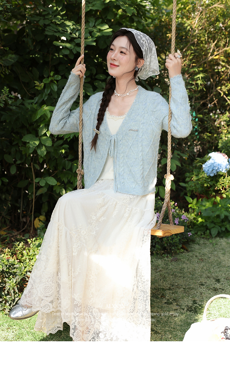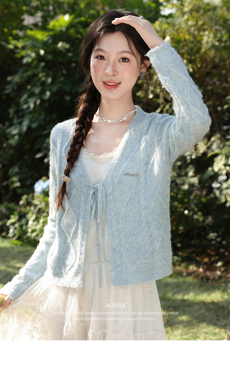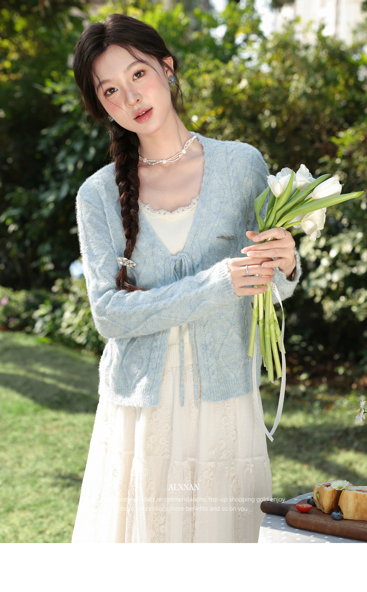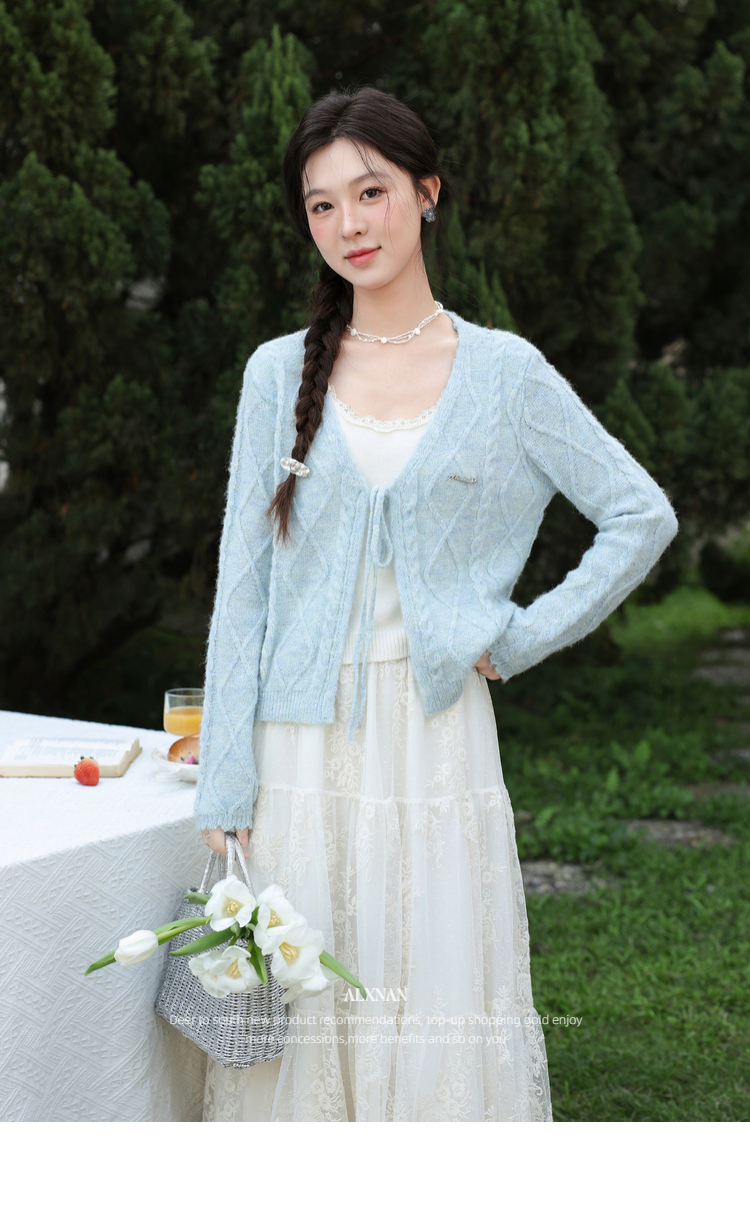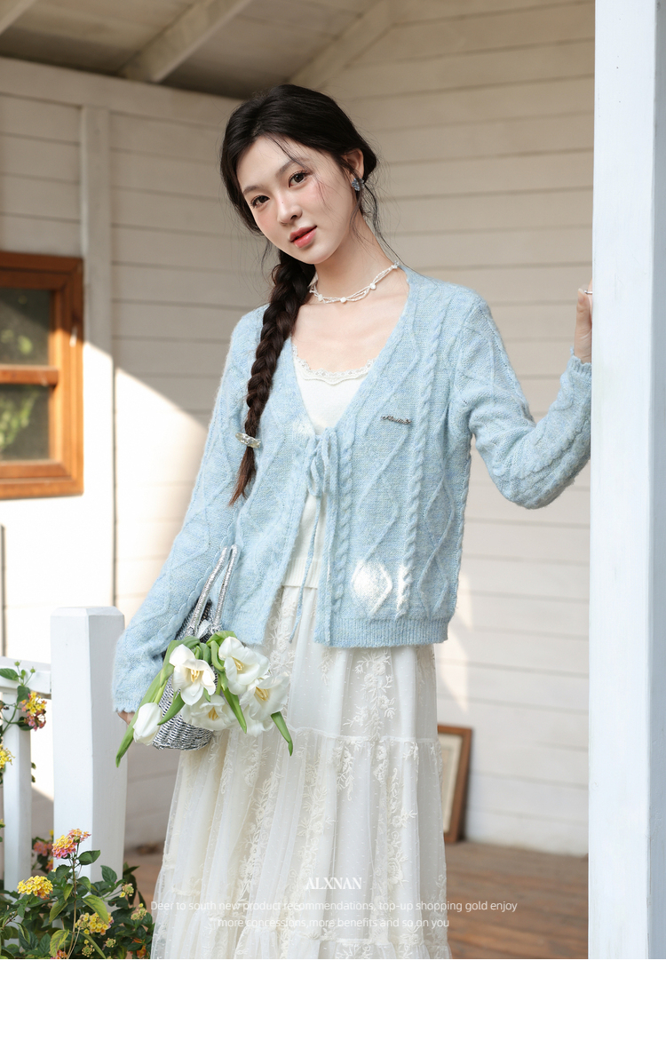 鹿向南「云絮春织」韩系蓝色针织衫女春季独特漂亮巨好看开衫上衣