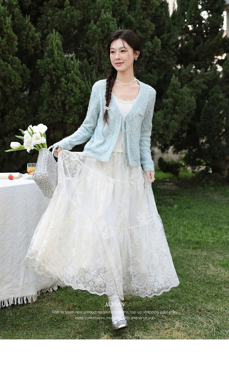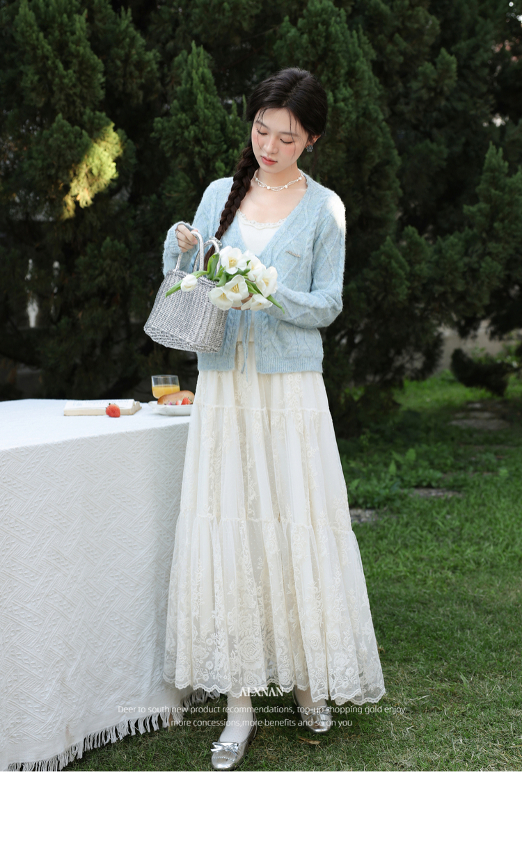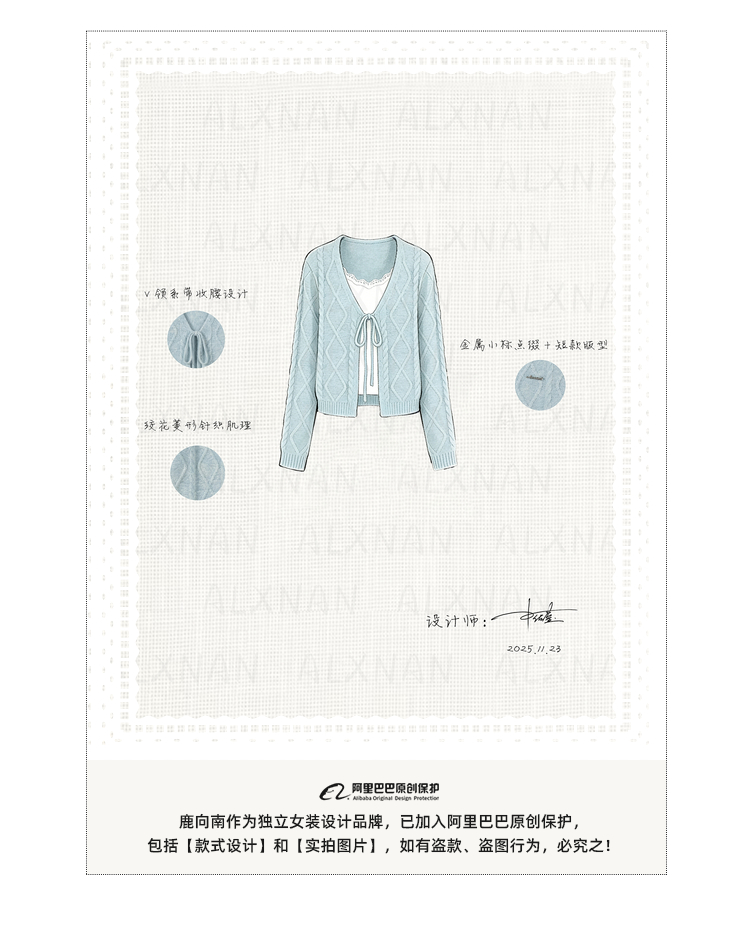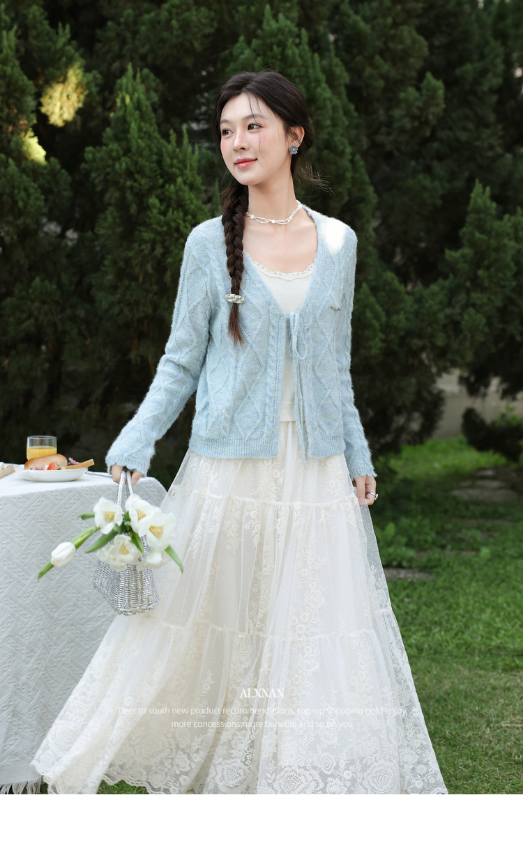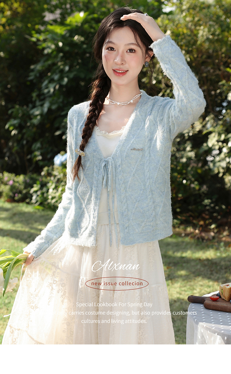 鹿向南「云絮春织」韩系蓝色针织衫女春季独特漂亮巨好看开衫上衣