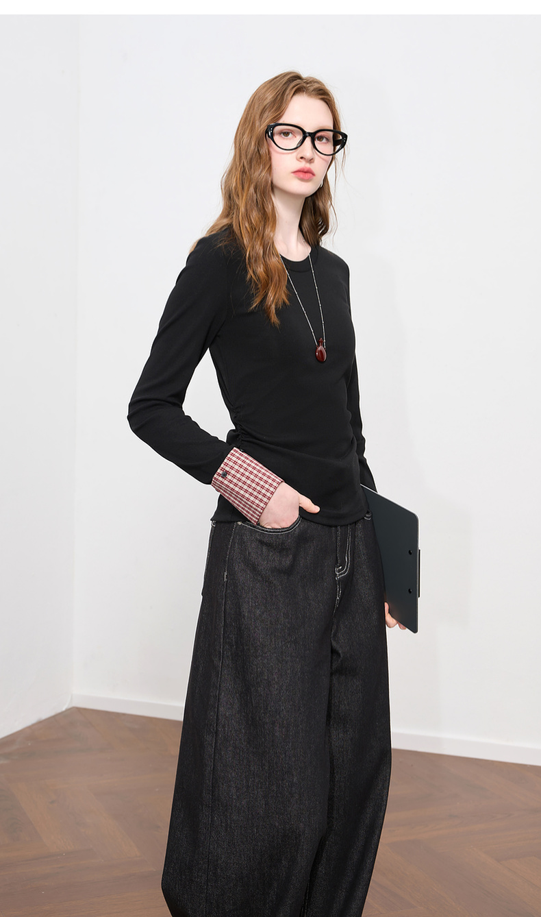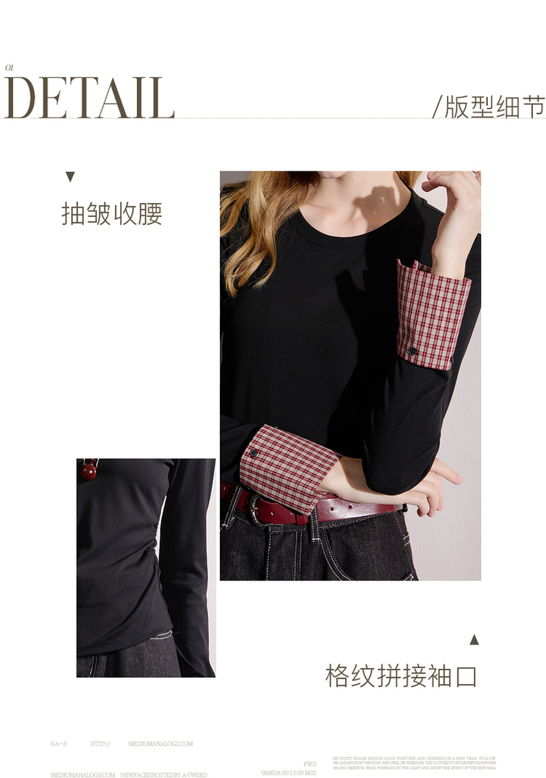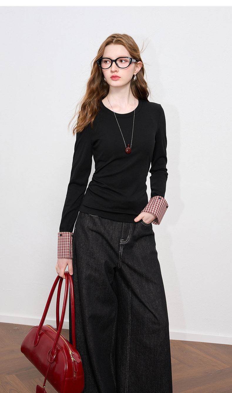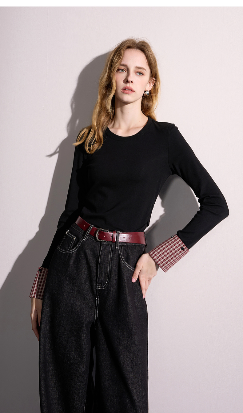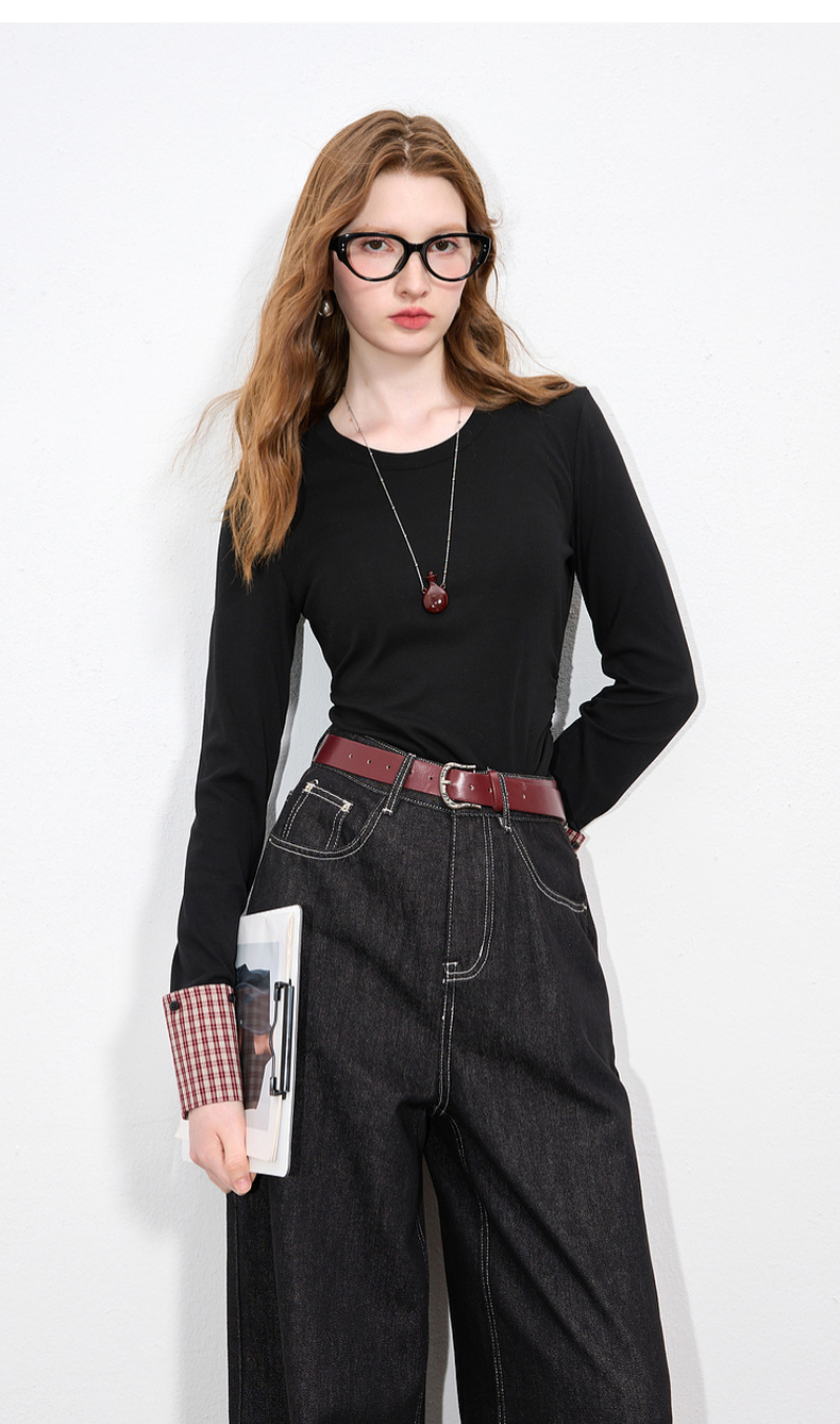 【瘦瘦T】三彩2025秋季新款圆领长袖T恤打底衫上衣正肩修身M