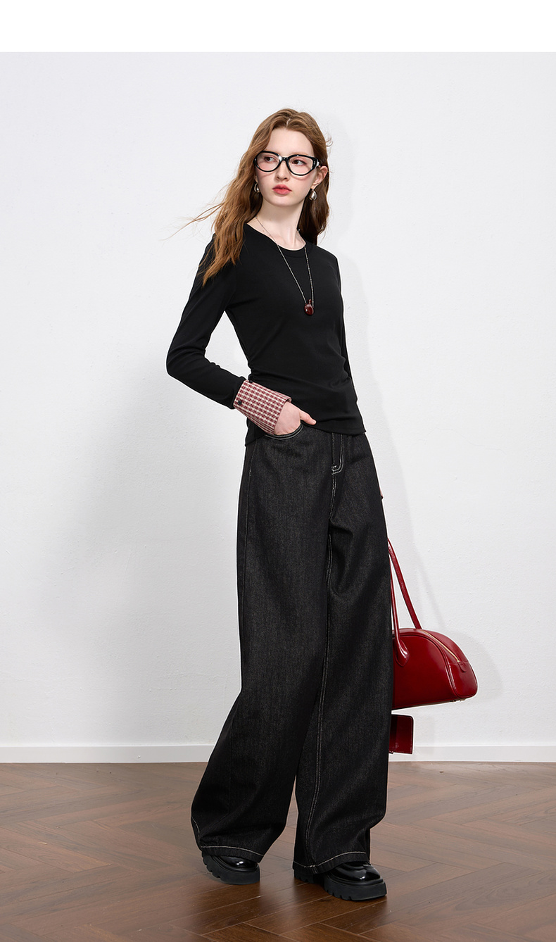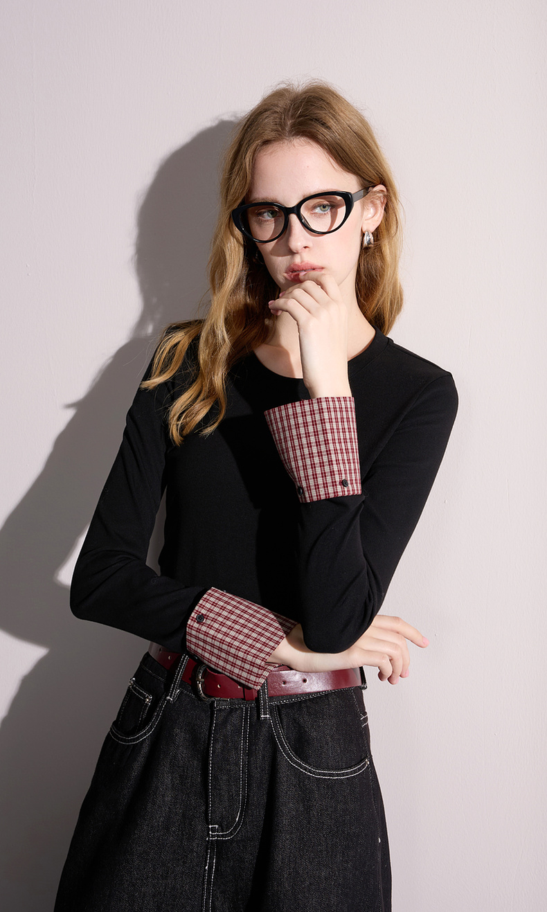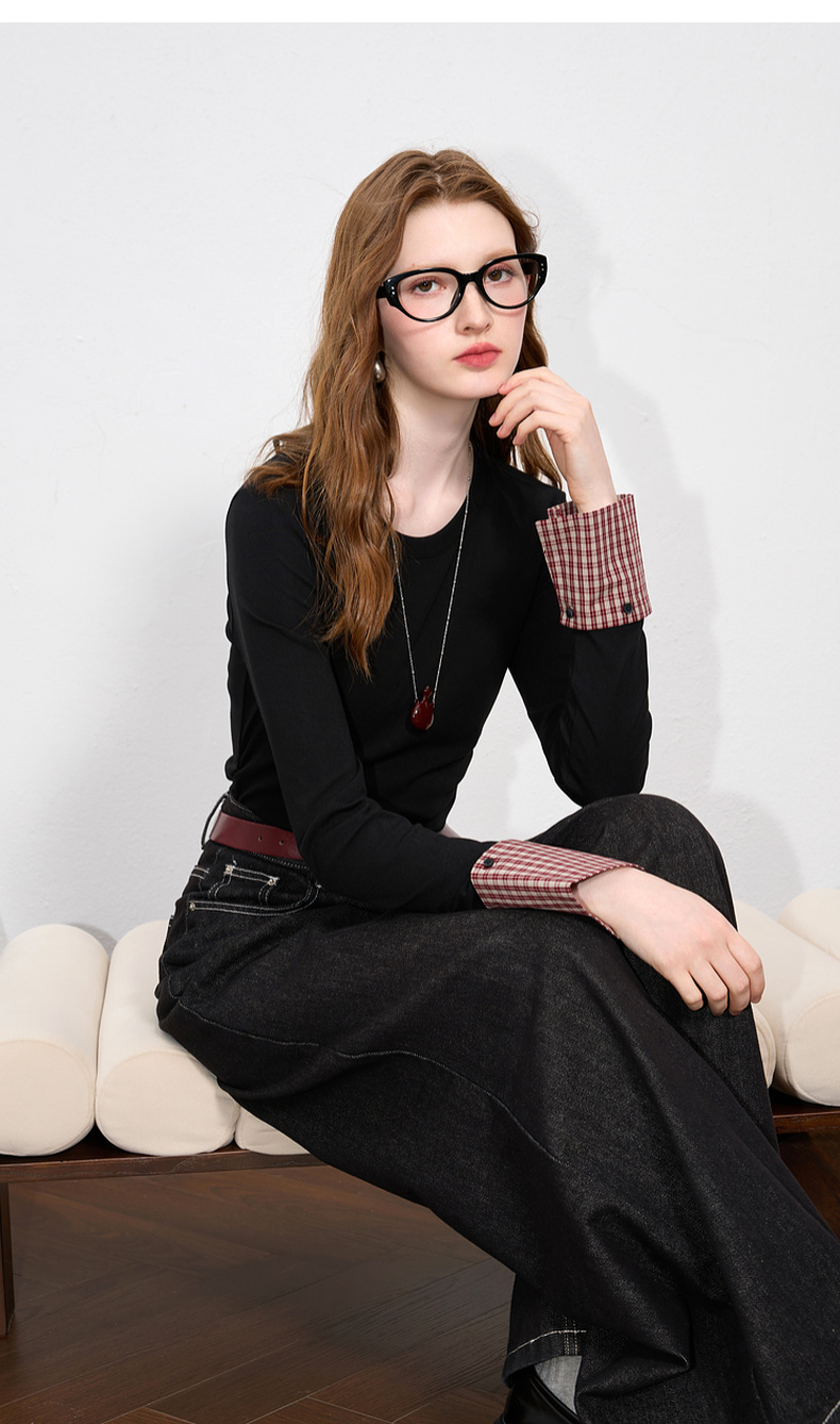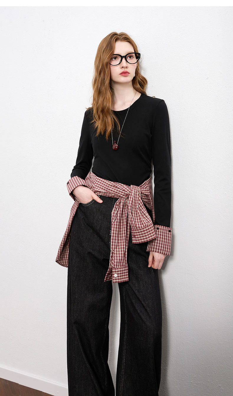【瘦瘦T】三彩2025秋季新款圆领长袖T恤打底衫上衣正肩修身M