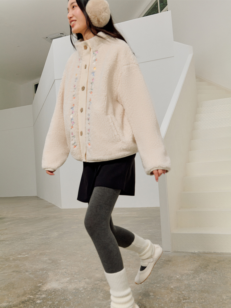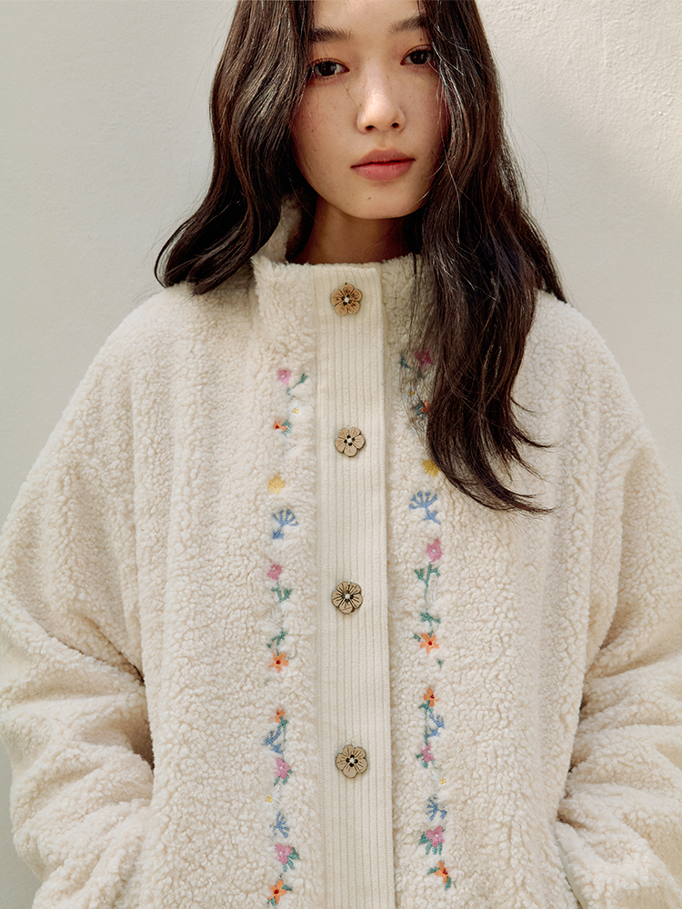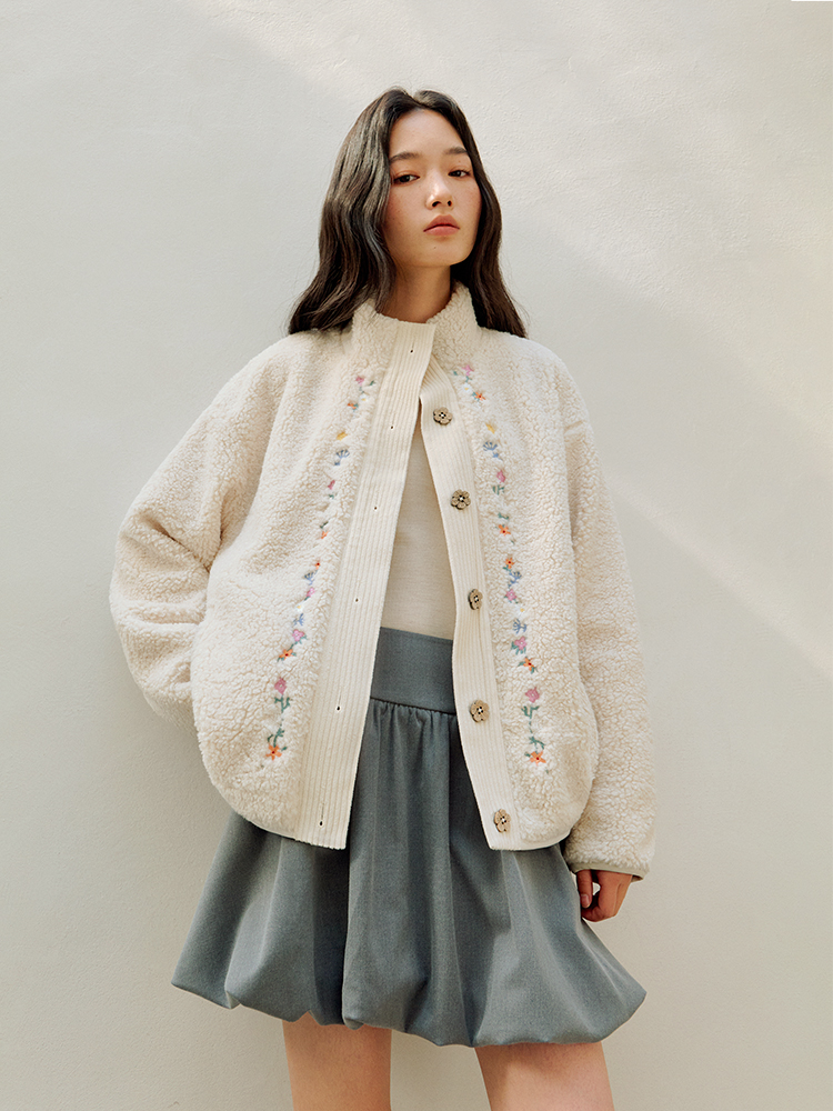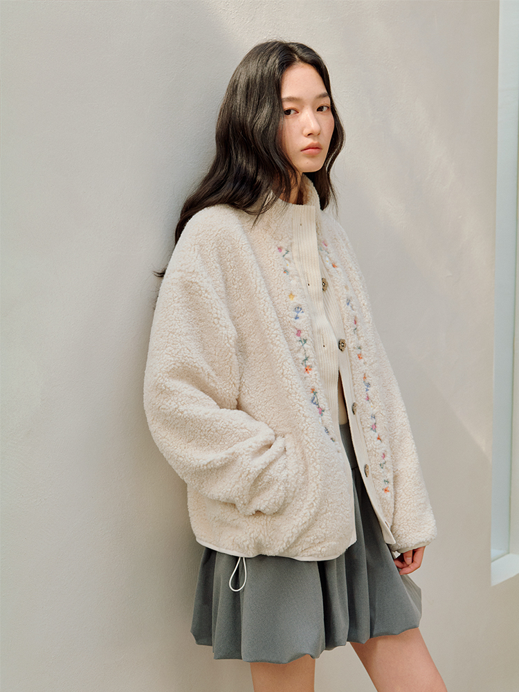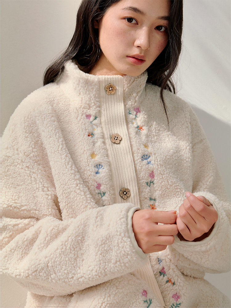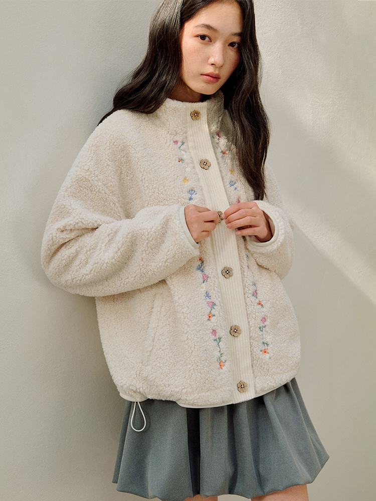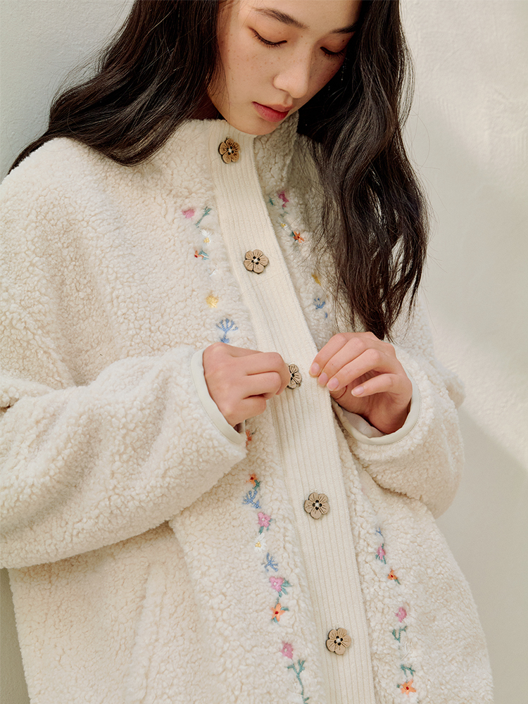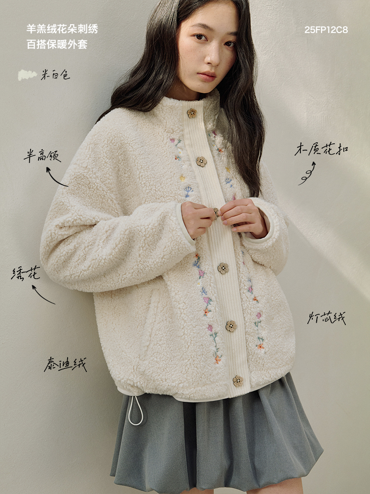ForPoem 25/FW 原创设计羊羔绒花朵刺绣百搭保暖圈圈羊羔毛外套