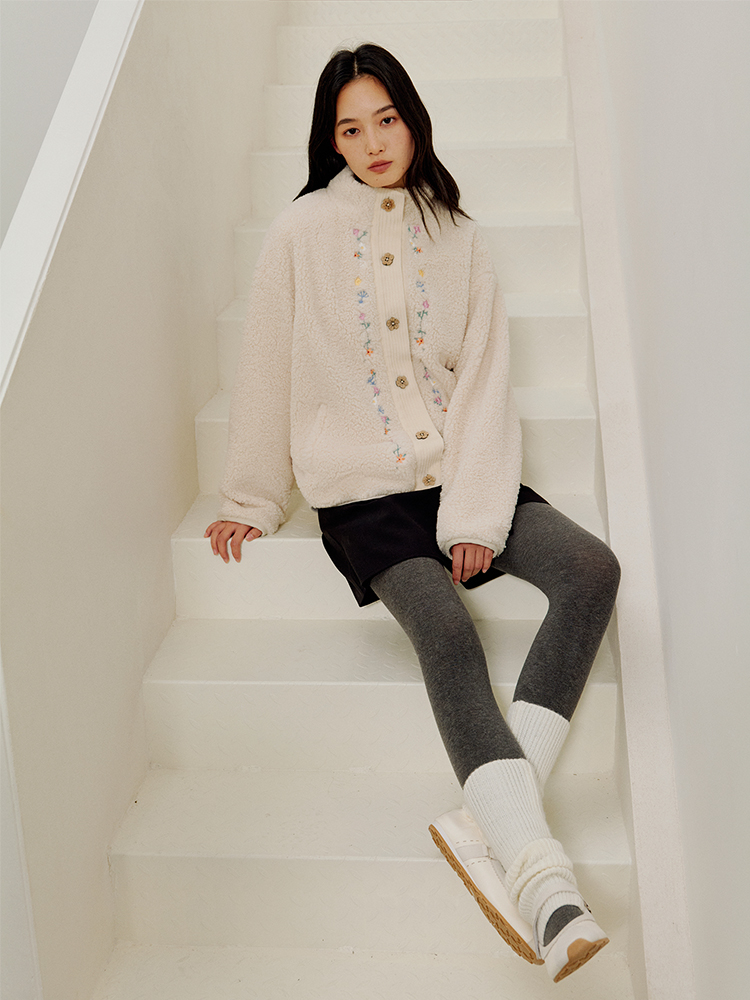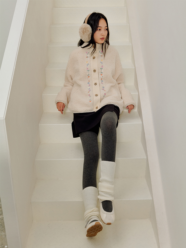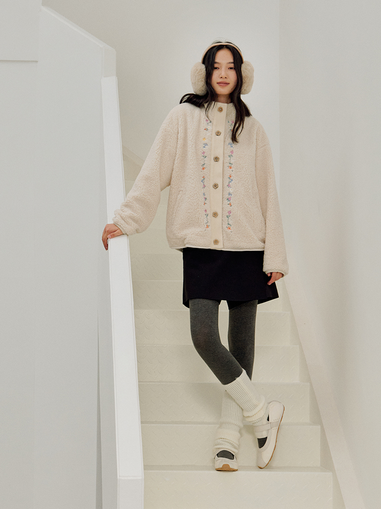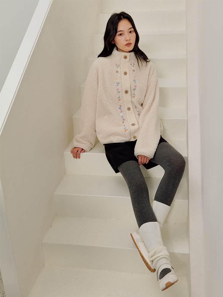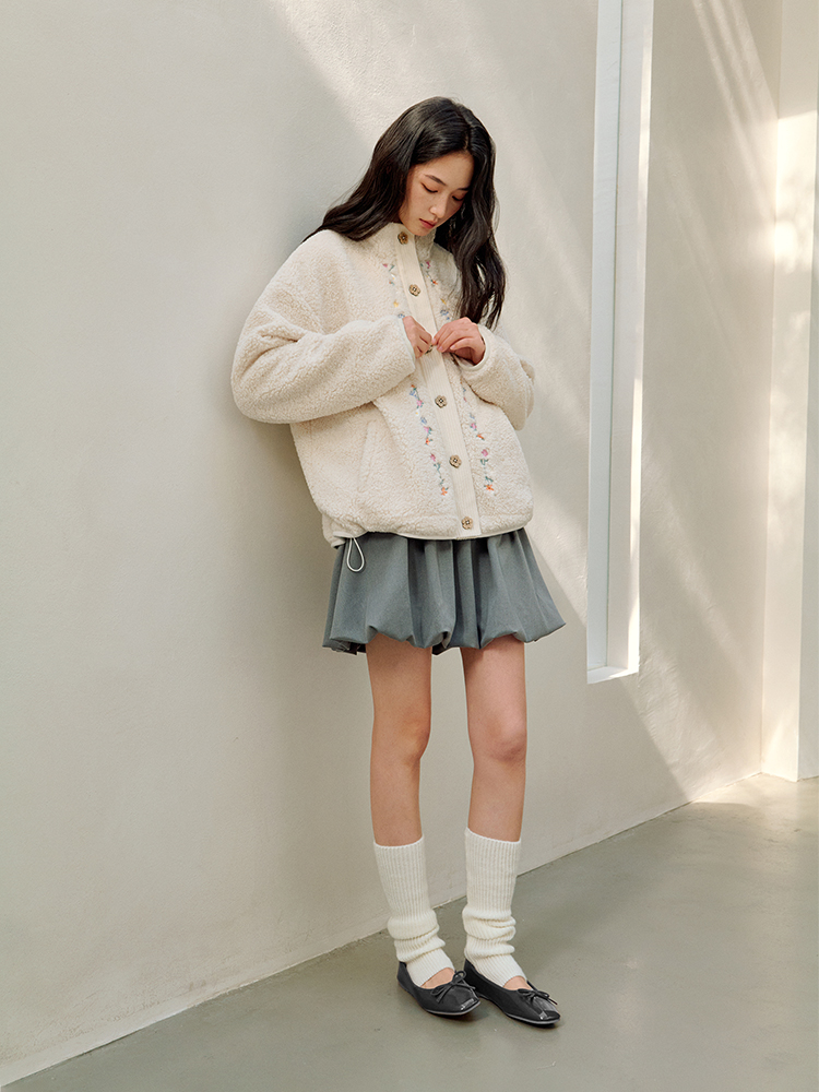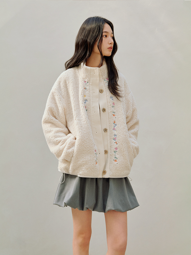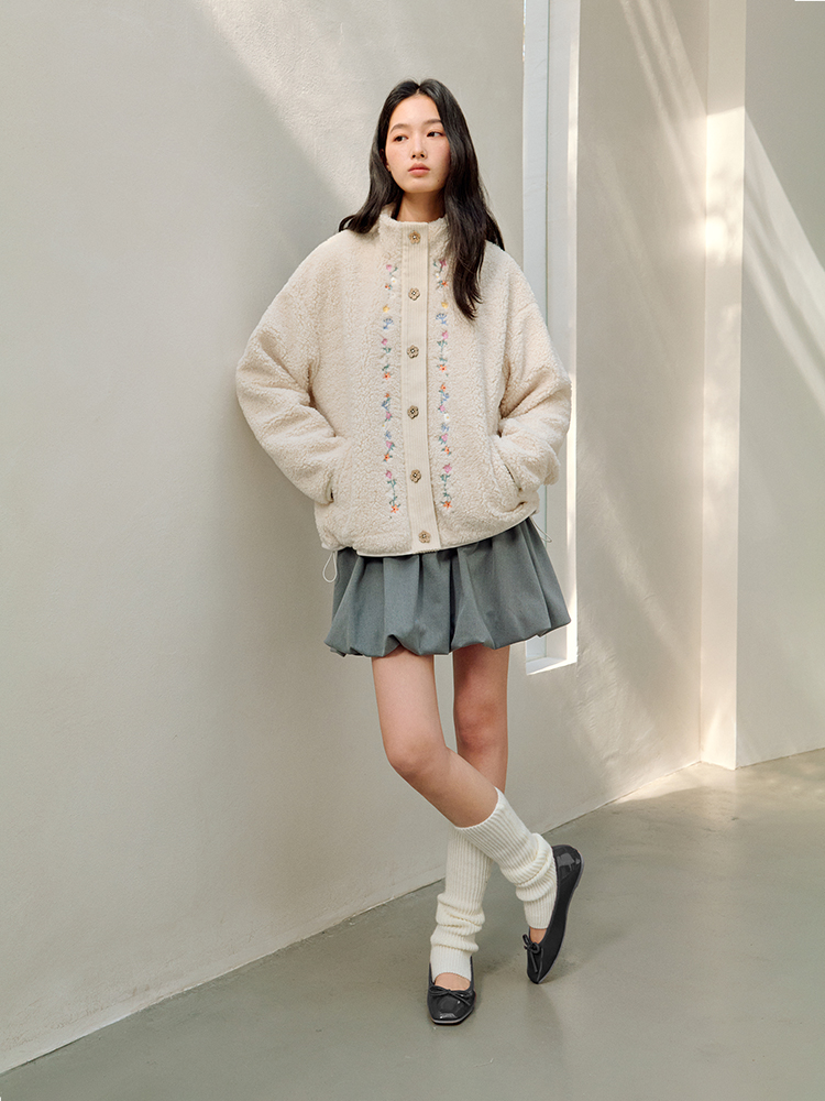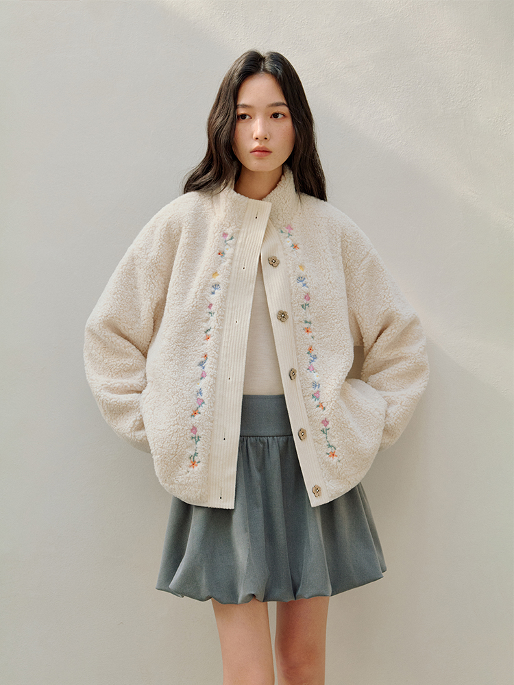 ForPoem 25/FW 原创设计羊羔绒花朵刺绣百搭保暖圈圈羊羔毛外套