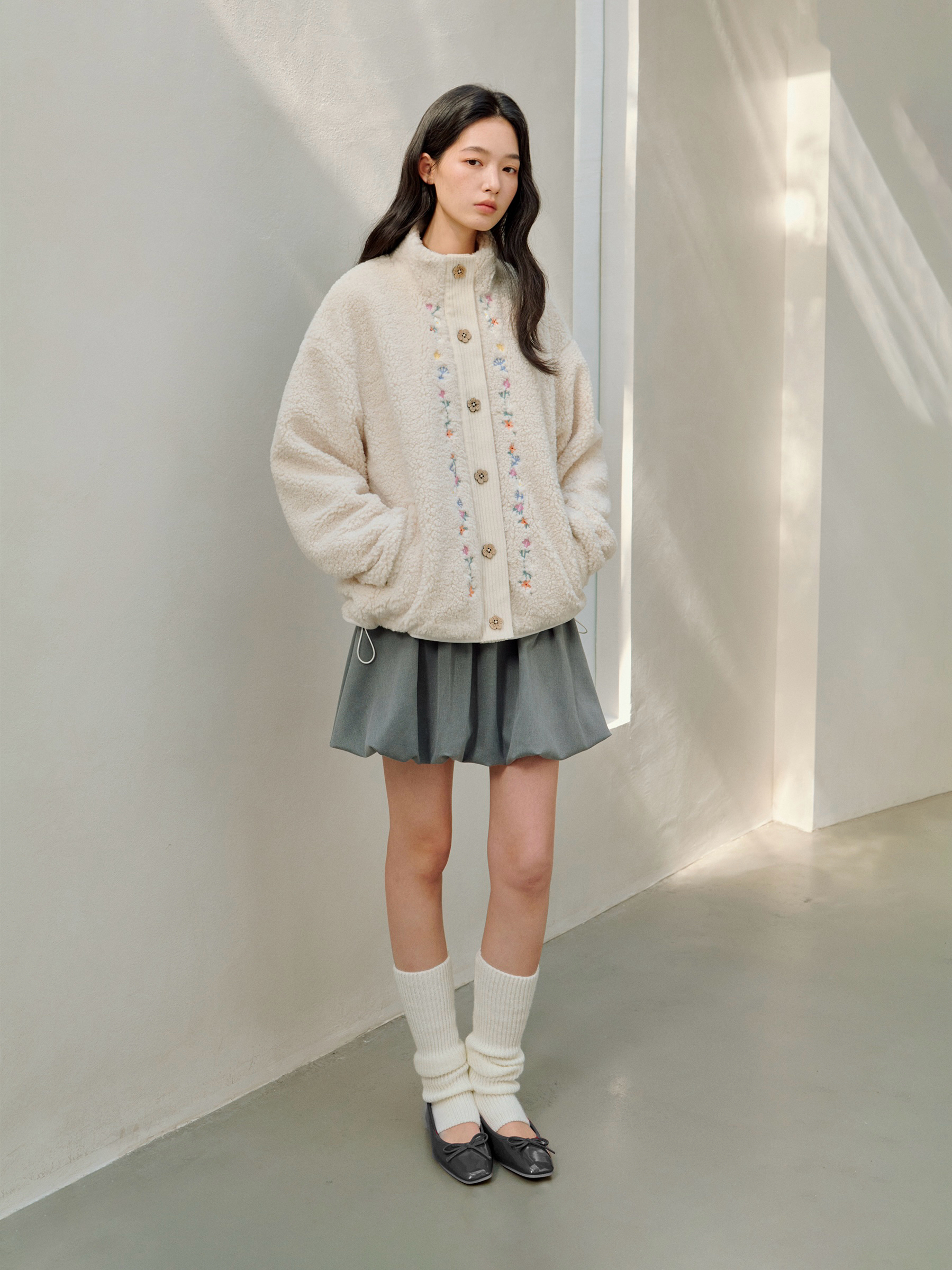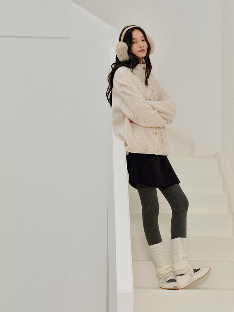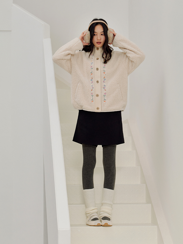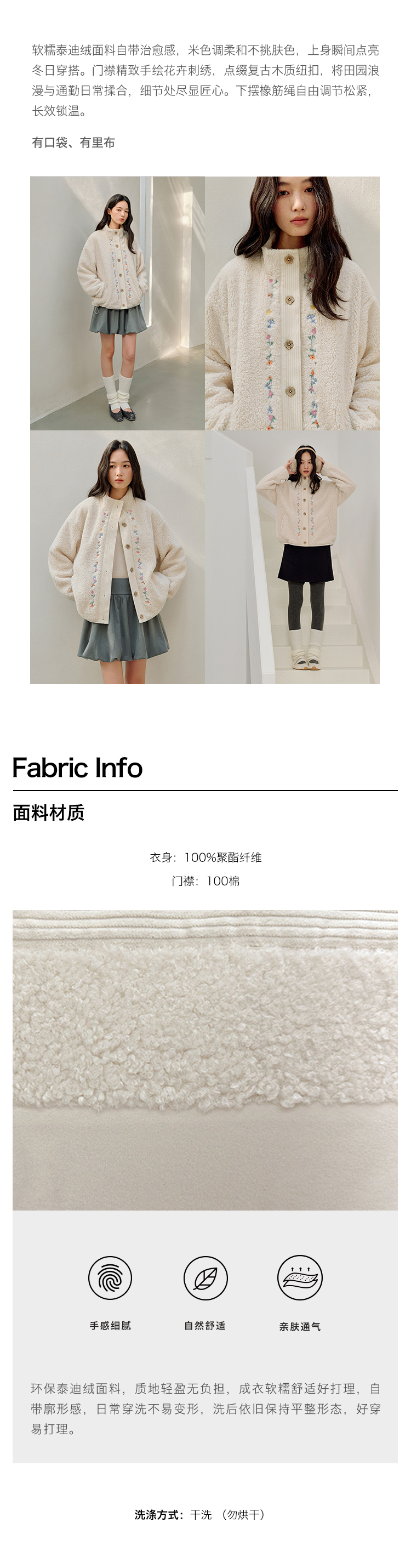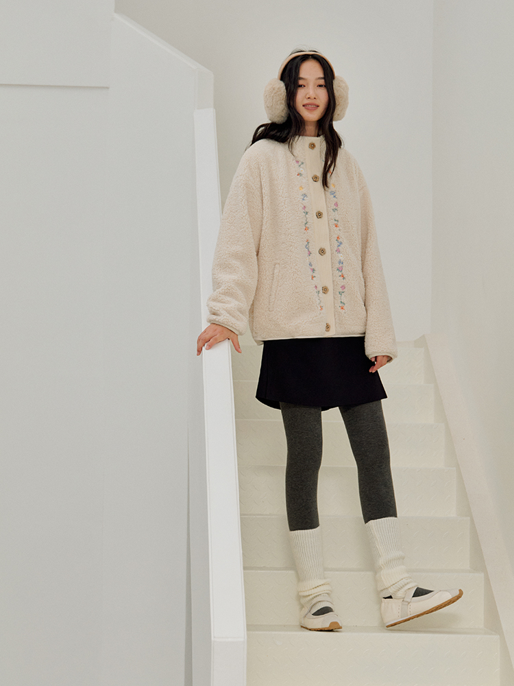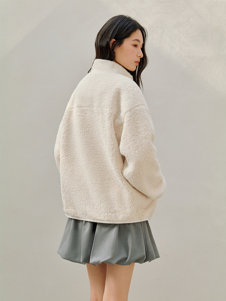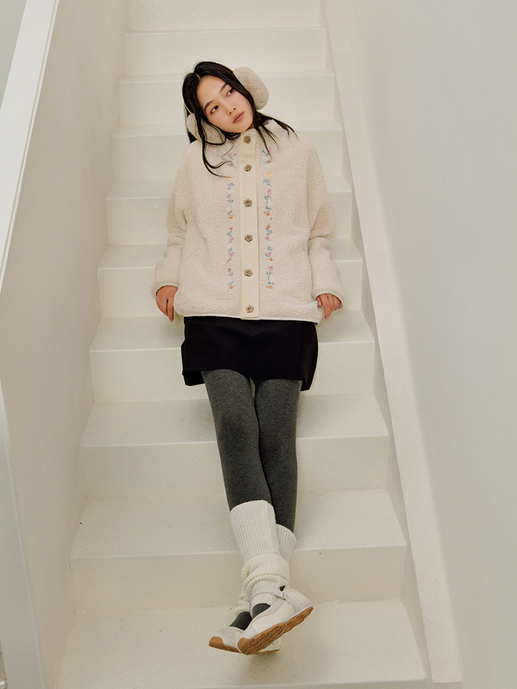 ForPoem 25/FW 原创设计羊羔绒花朵刺绣百搭保暖圈圈羊羔毛外套