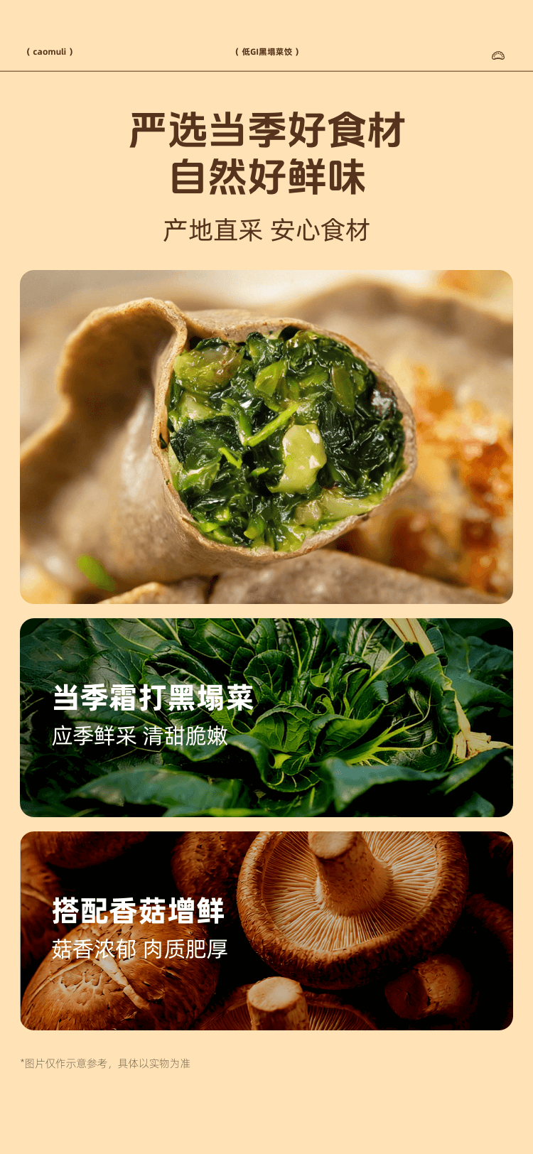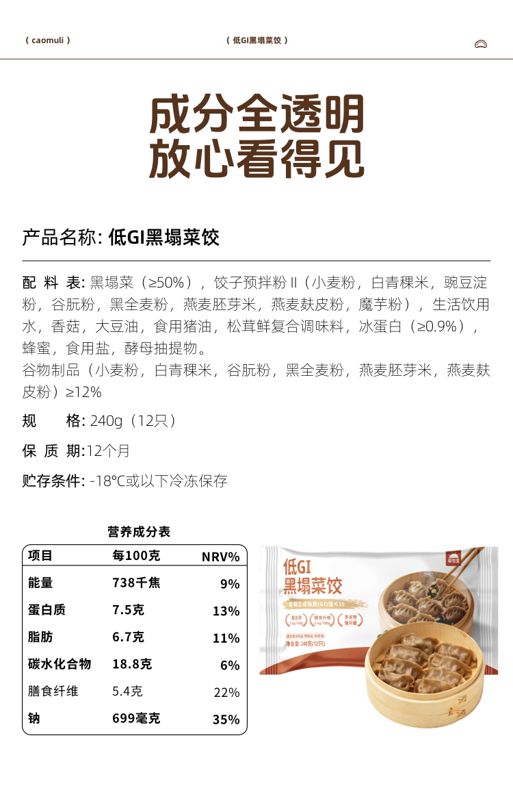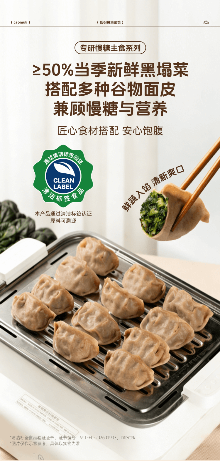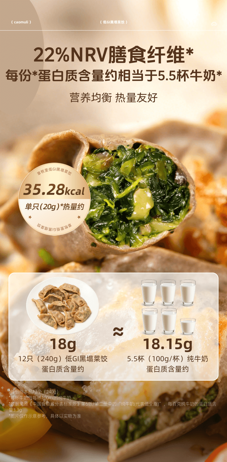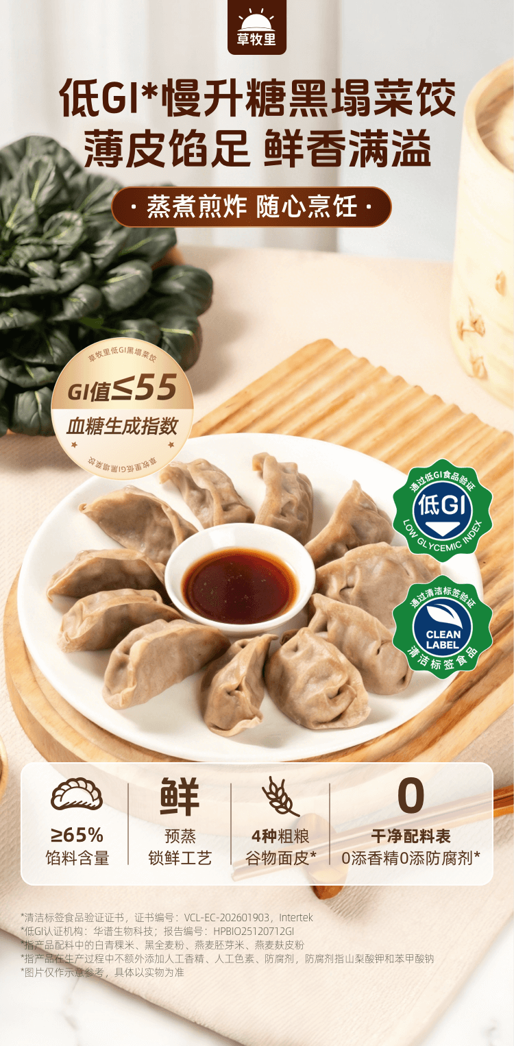 【匠心食材搭配】草牧里 低GI黑塌菜饺 12只/袋 蒸煮煎炸随心烹饪