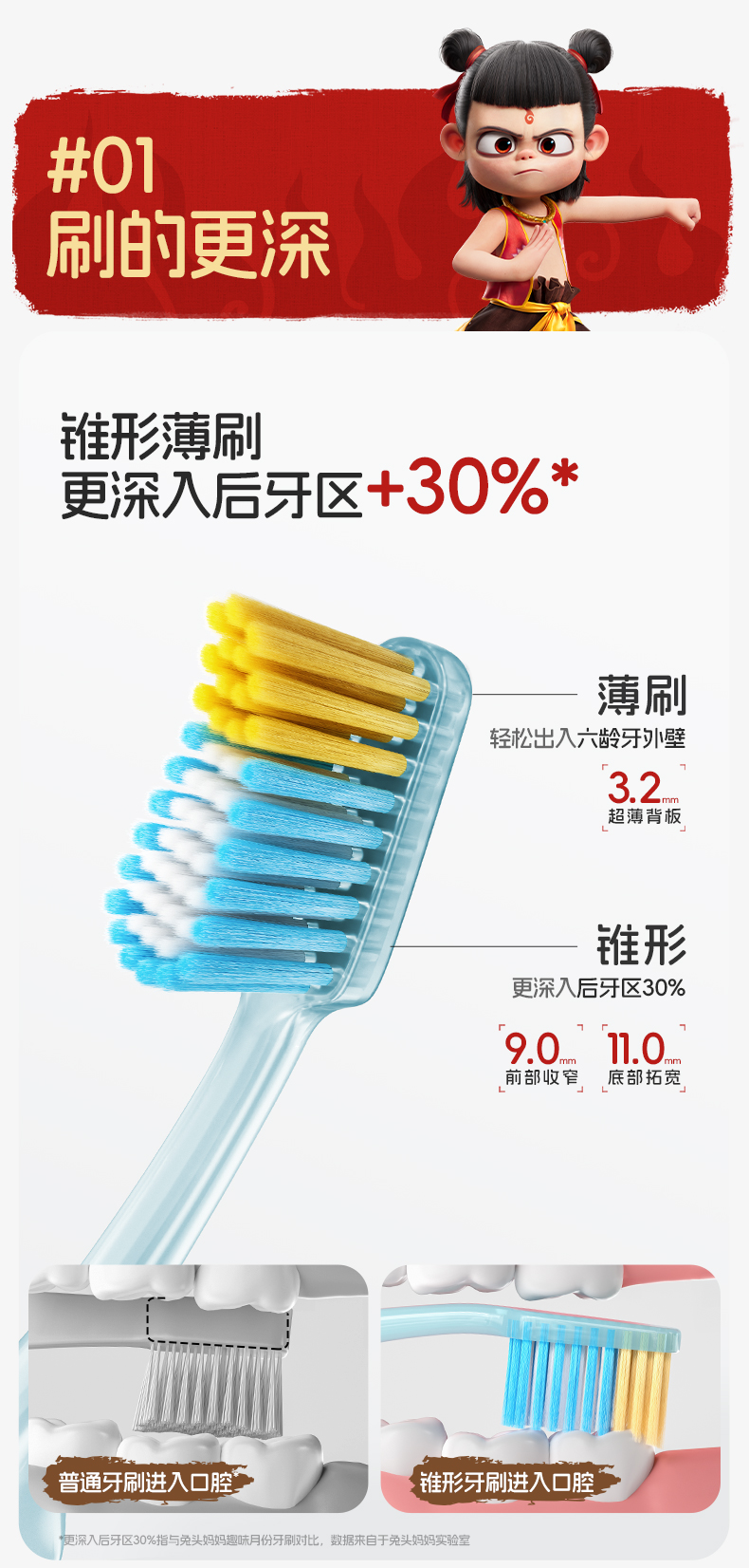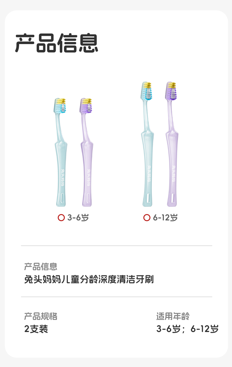 【哪吒×兔头妈妈 联名款 】儿童分龄深度清洁牙刷 3-6岁 6-12岁 2支装