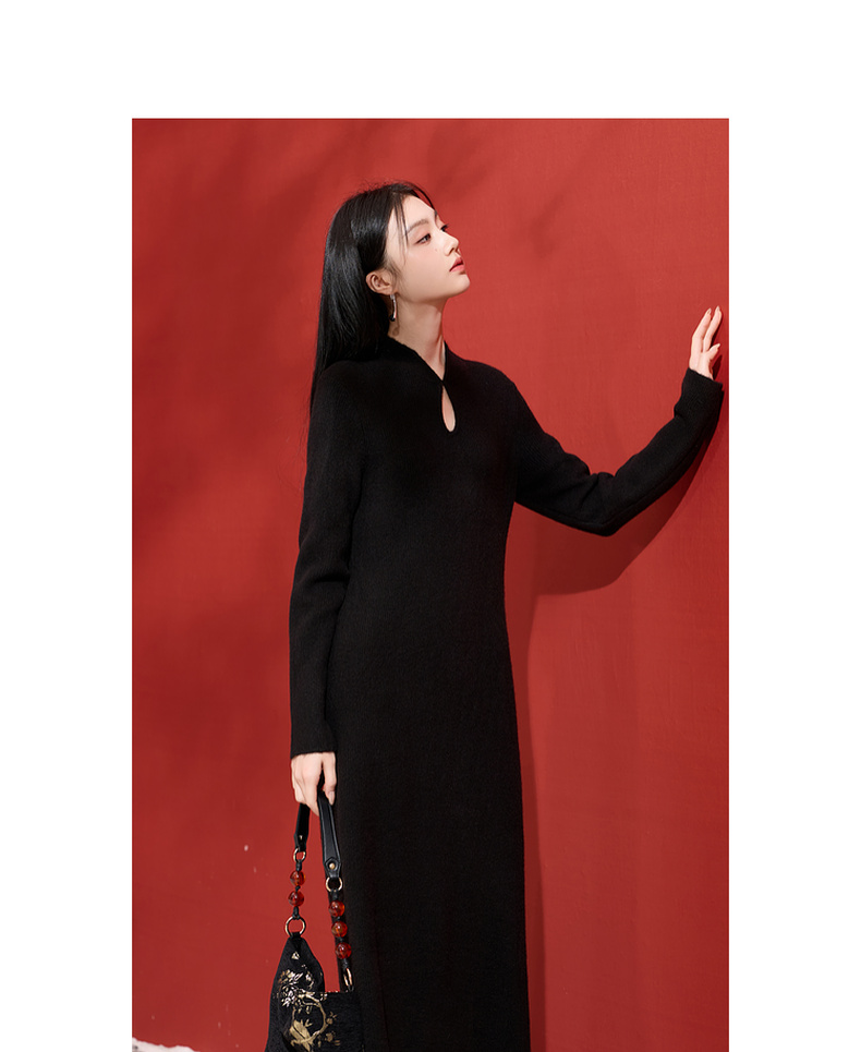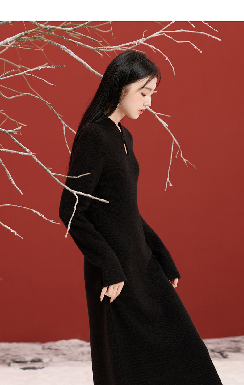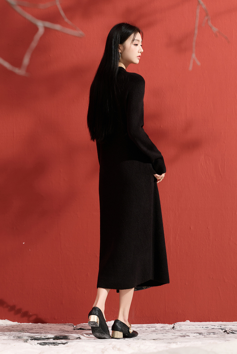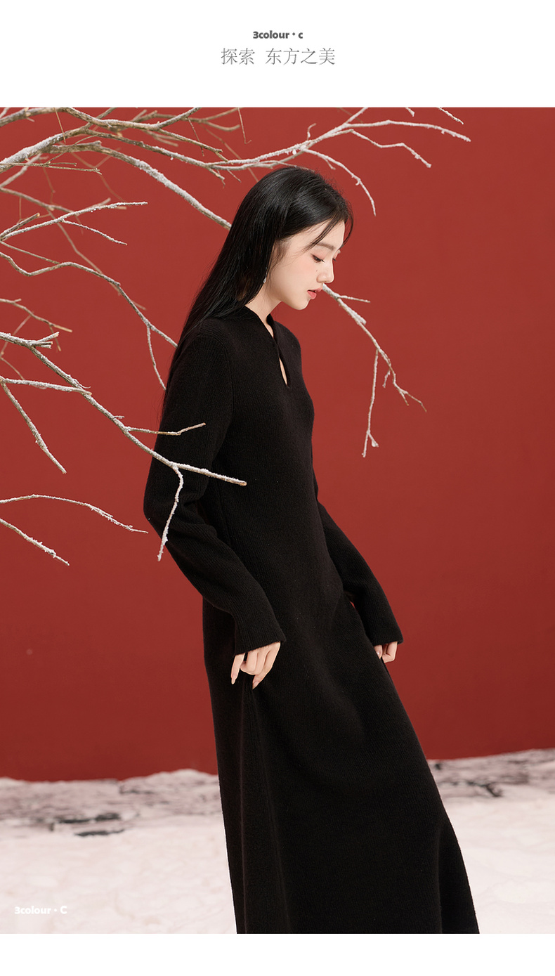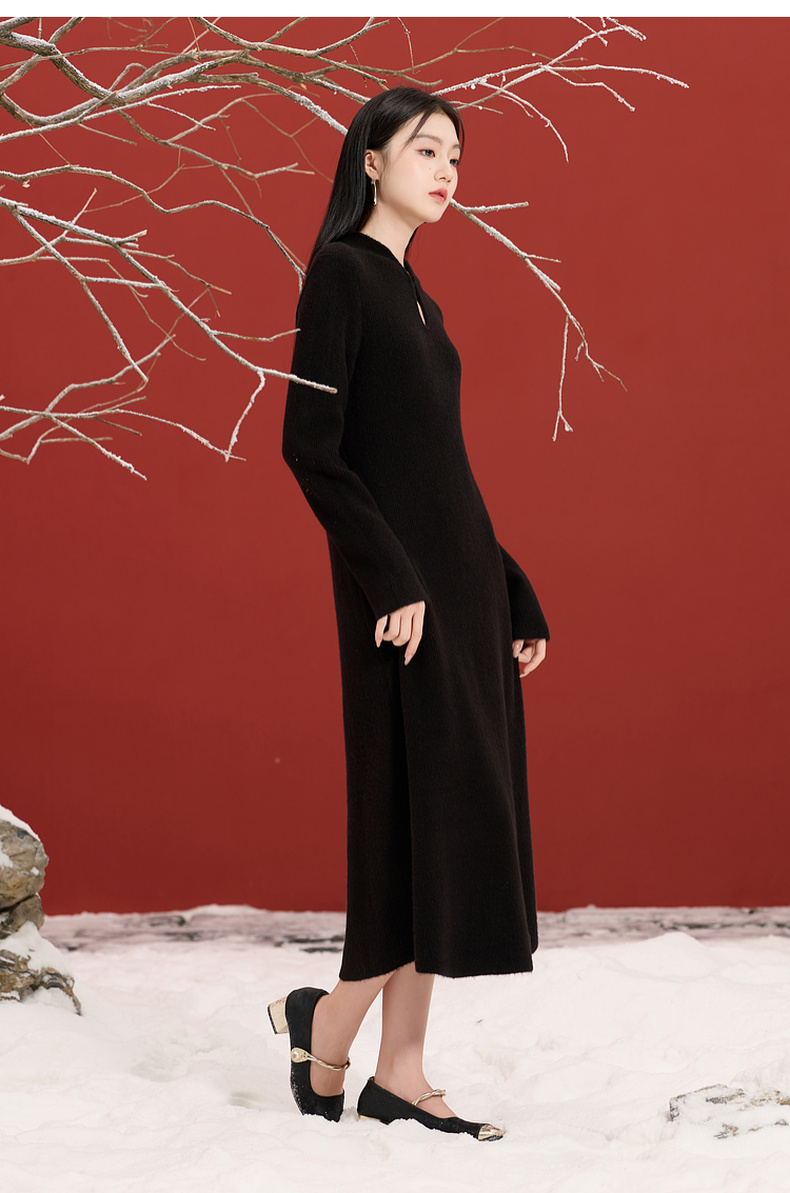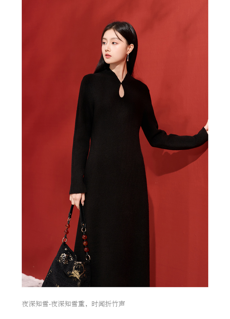 三彩【夜深知雪】2025冬季新款针织裙连衣裙A字裙长裙C