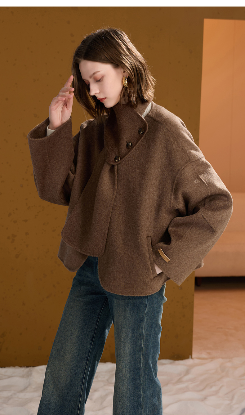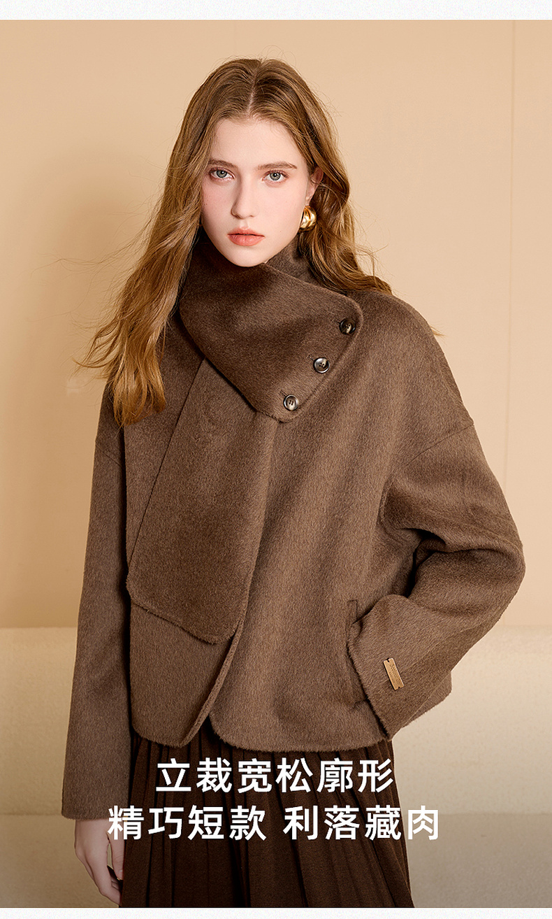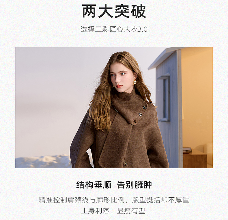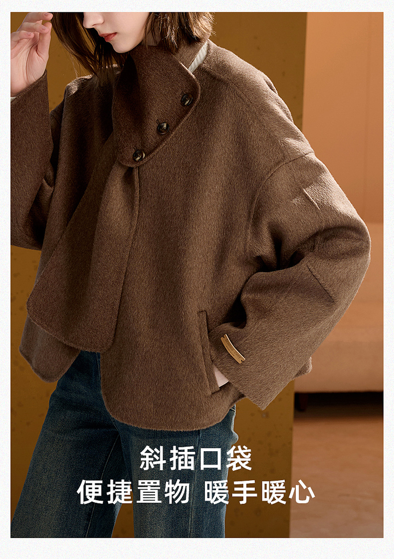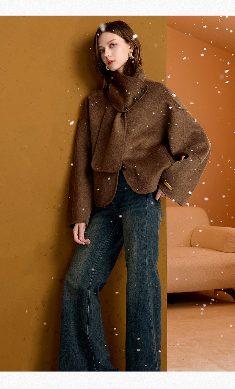 【100绵羊毛】三彩2025冬季新款围巾双面呢大衣短款毛呢外套M