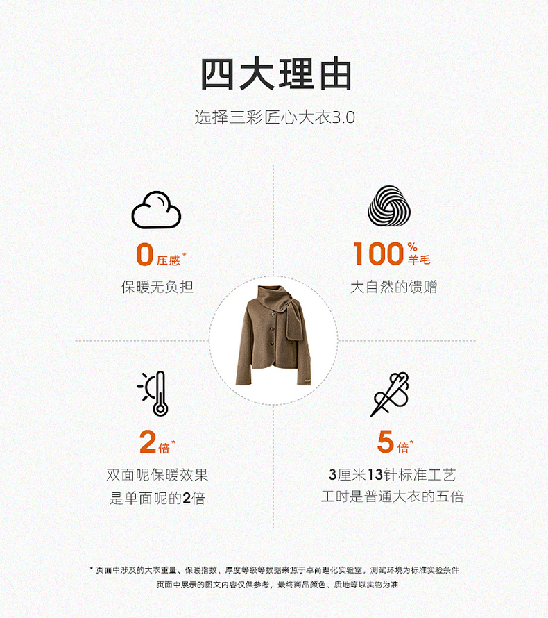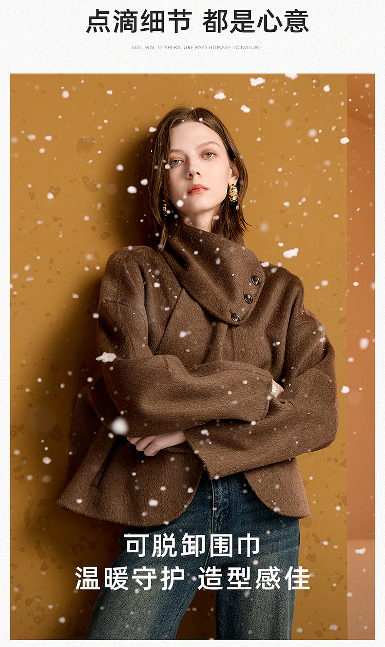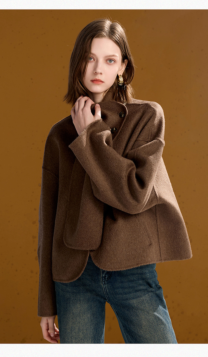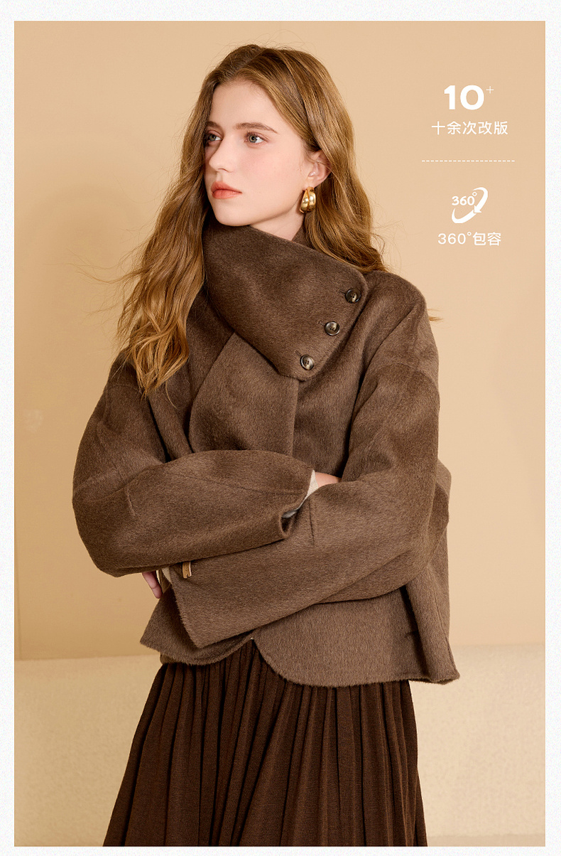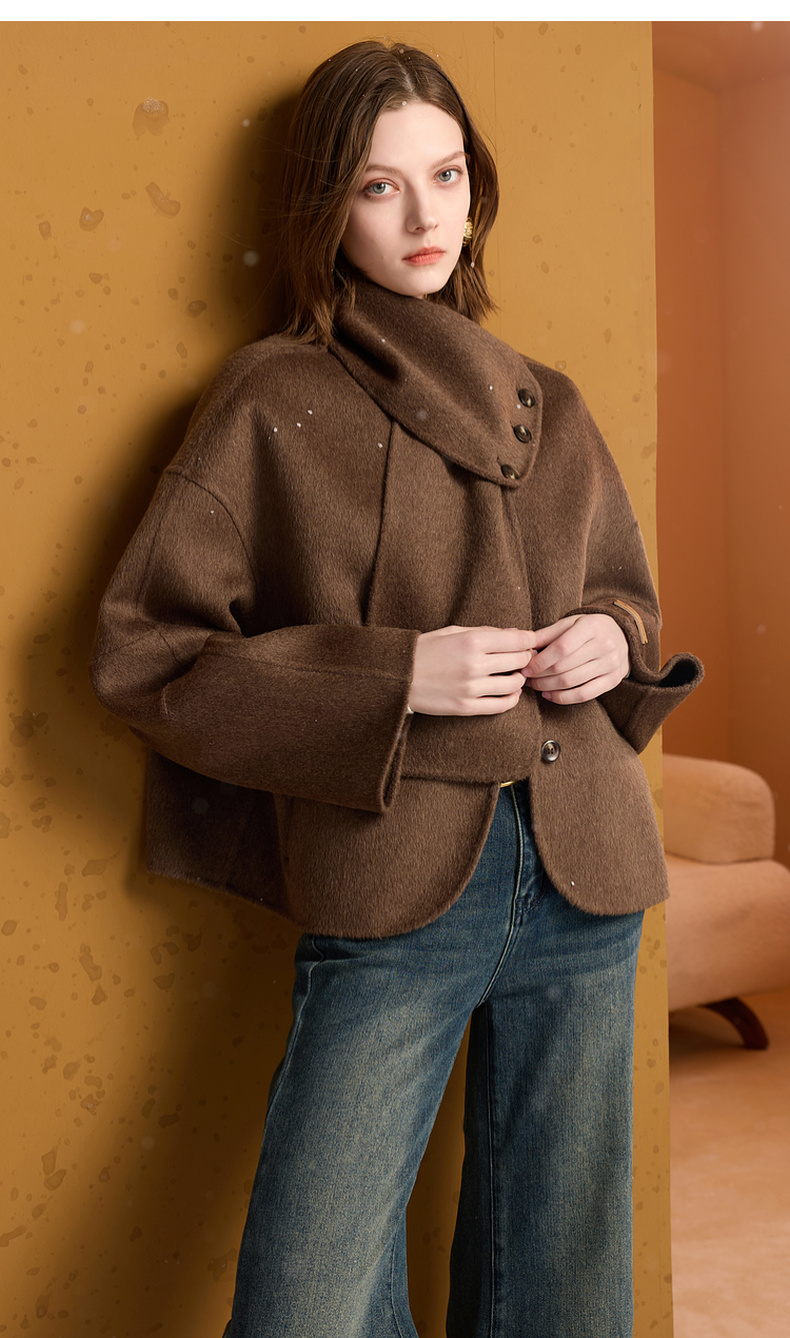 【100绵羊毛】三彩2025冬季新款围巾双面呢大衣短款毛呢外套M