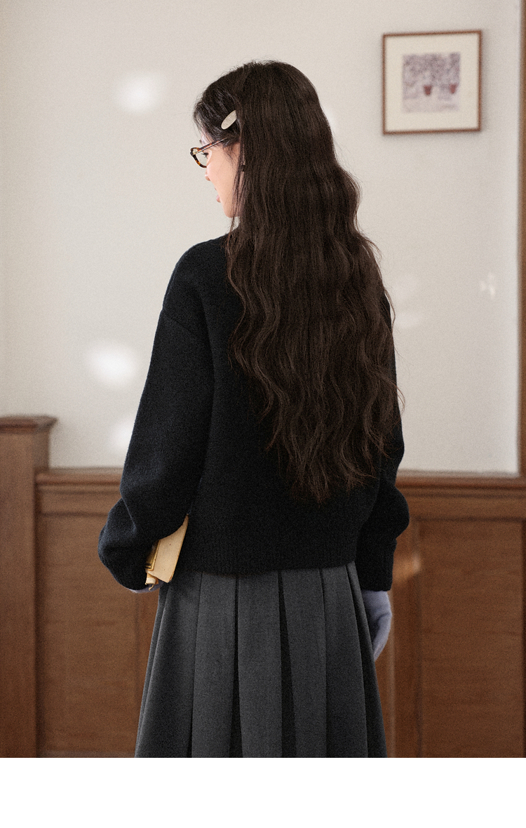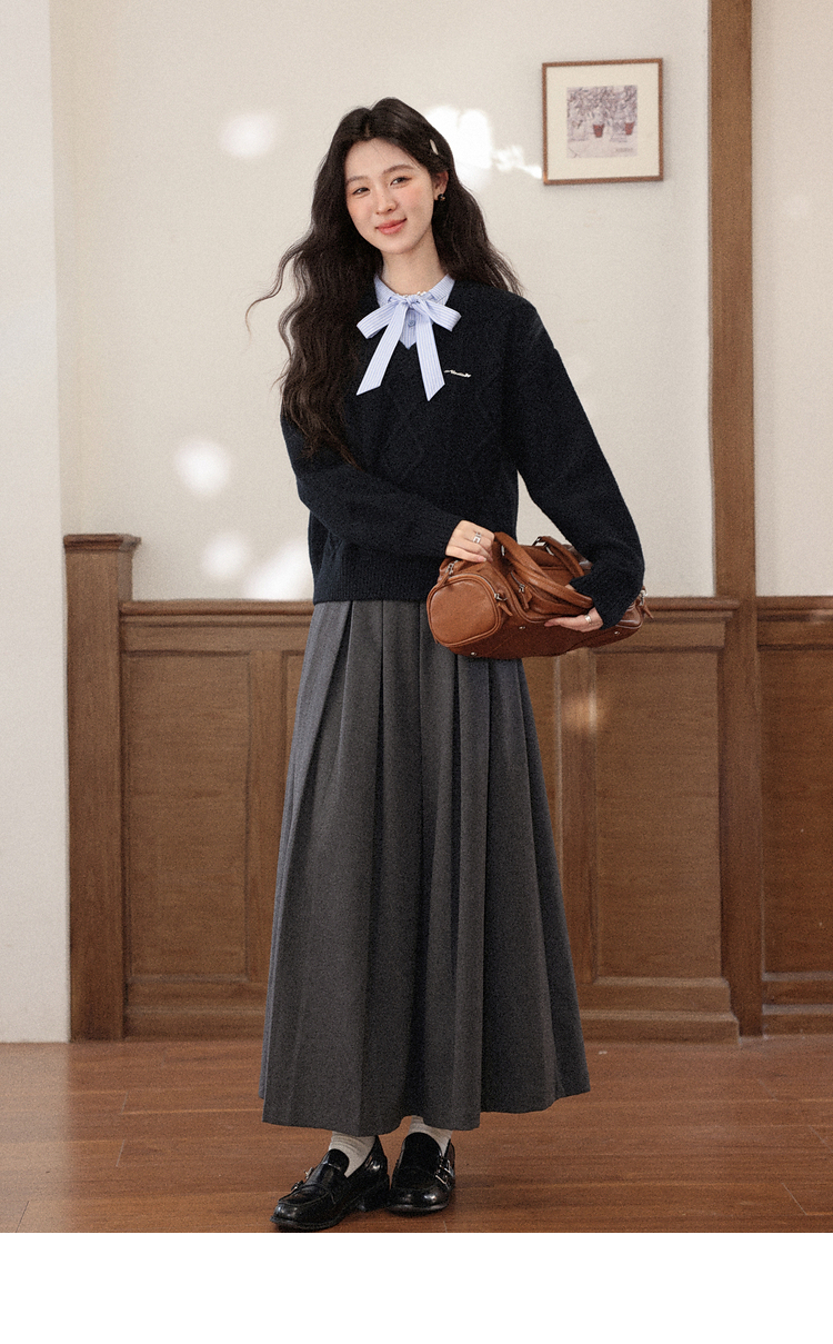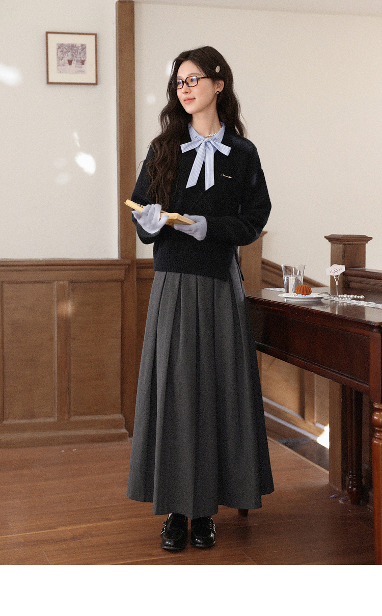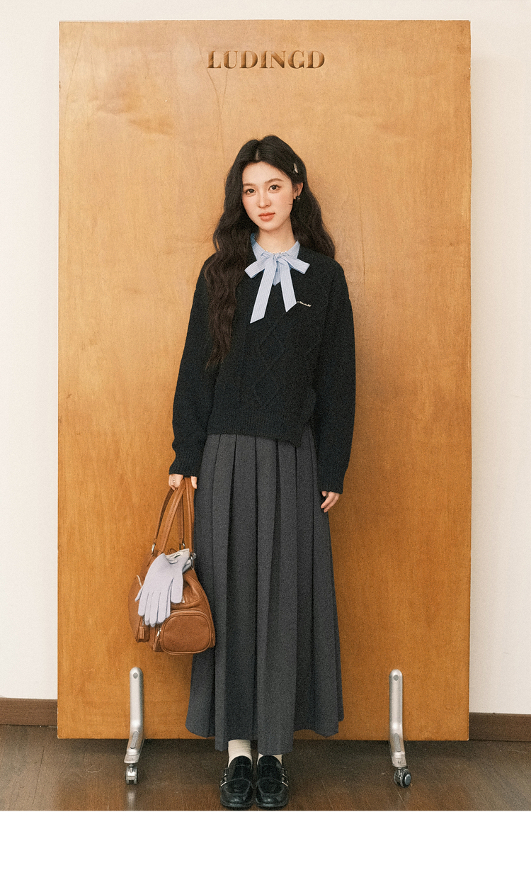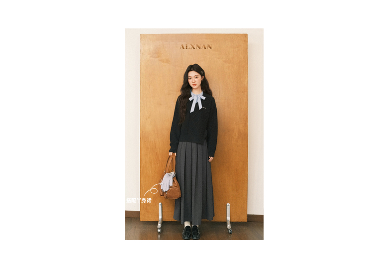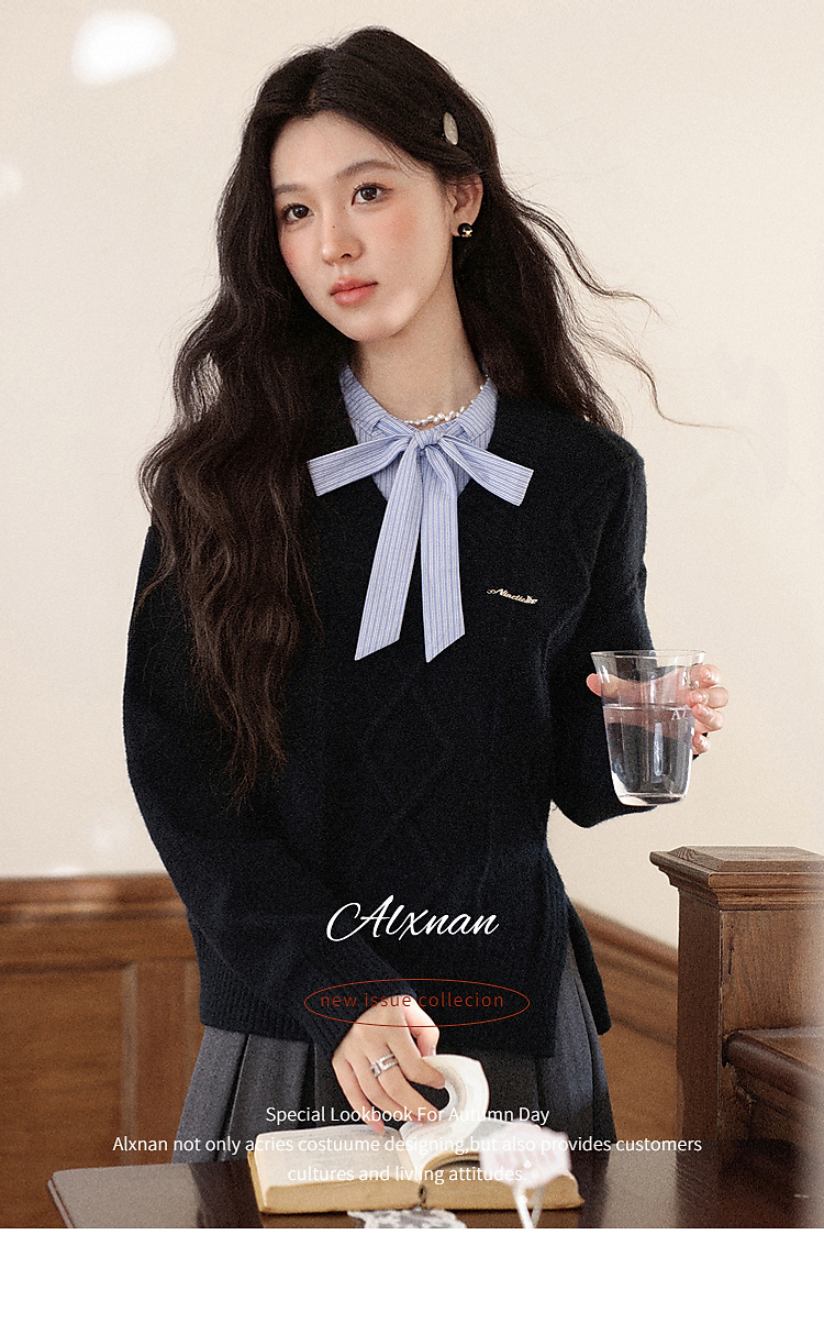 鹿向南「深蓝絮语」学院风假两件蝴蝶结黑色衬衫毛衣减龄上衣女秋