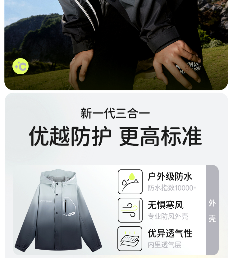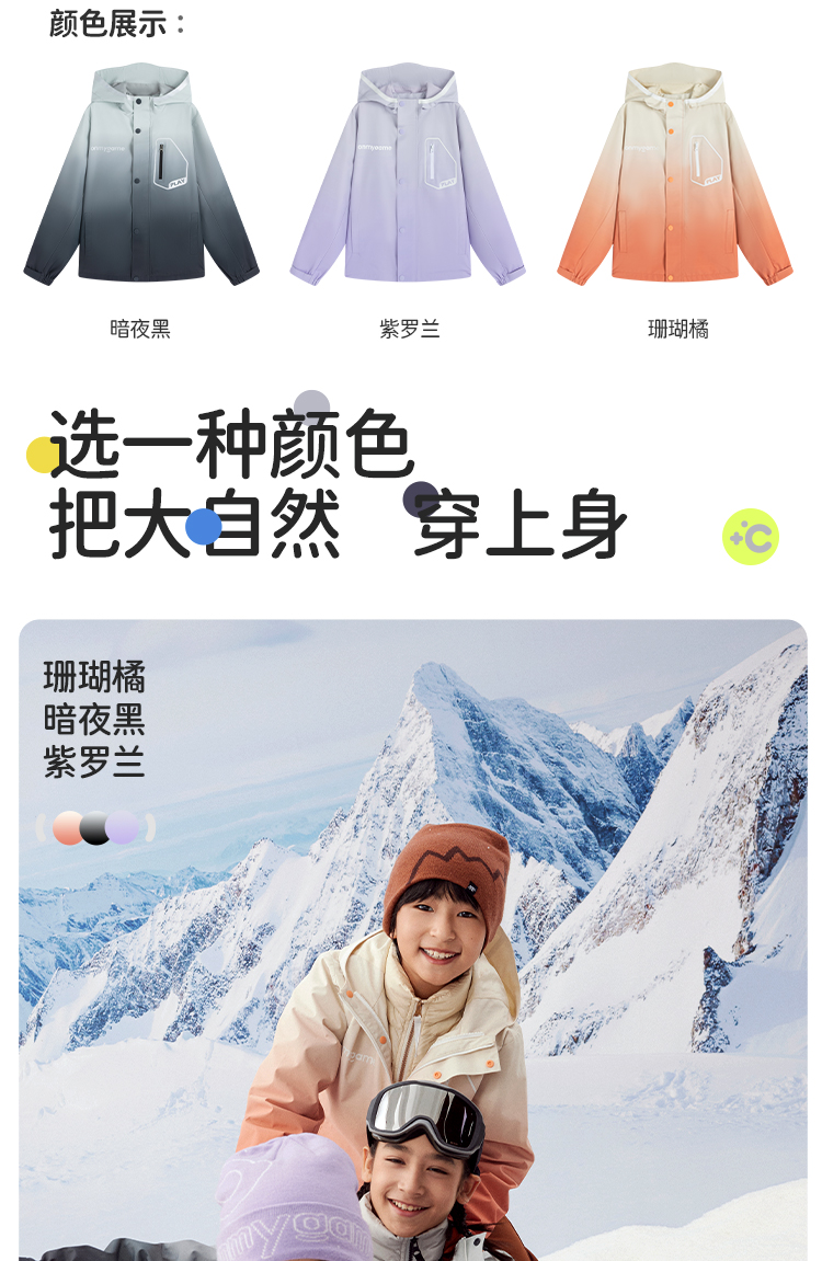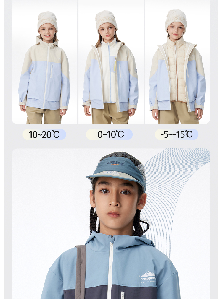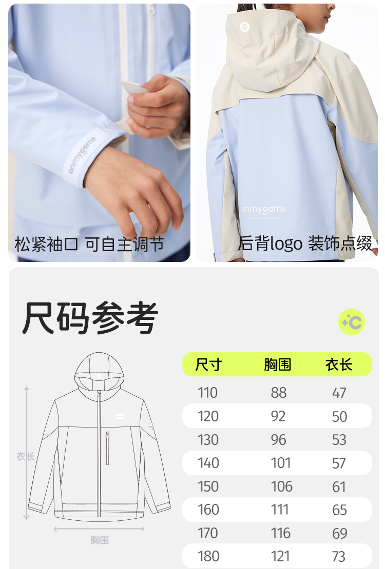 onmygame【轻暖系列】儿童三防羽绒服秋冬男女童保暖运动外套连帽 K-CMYRF10180