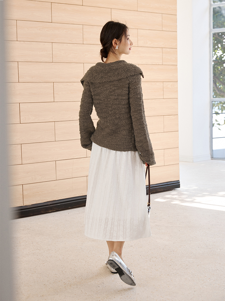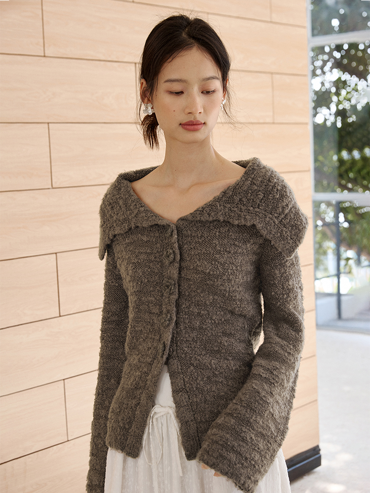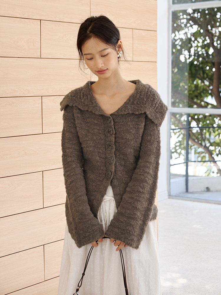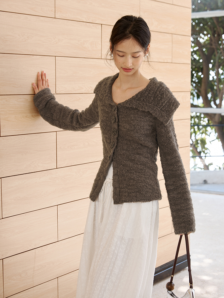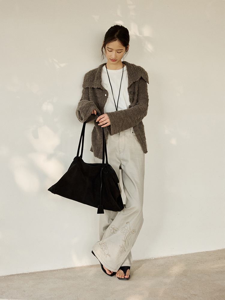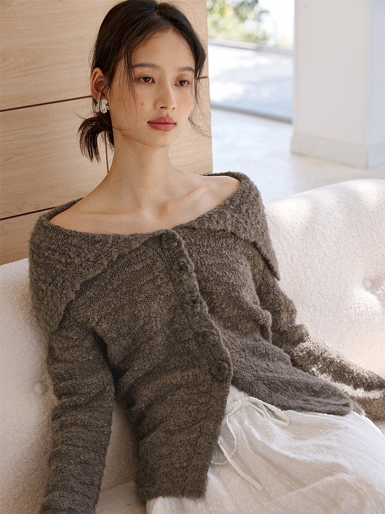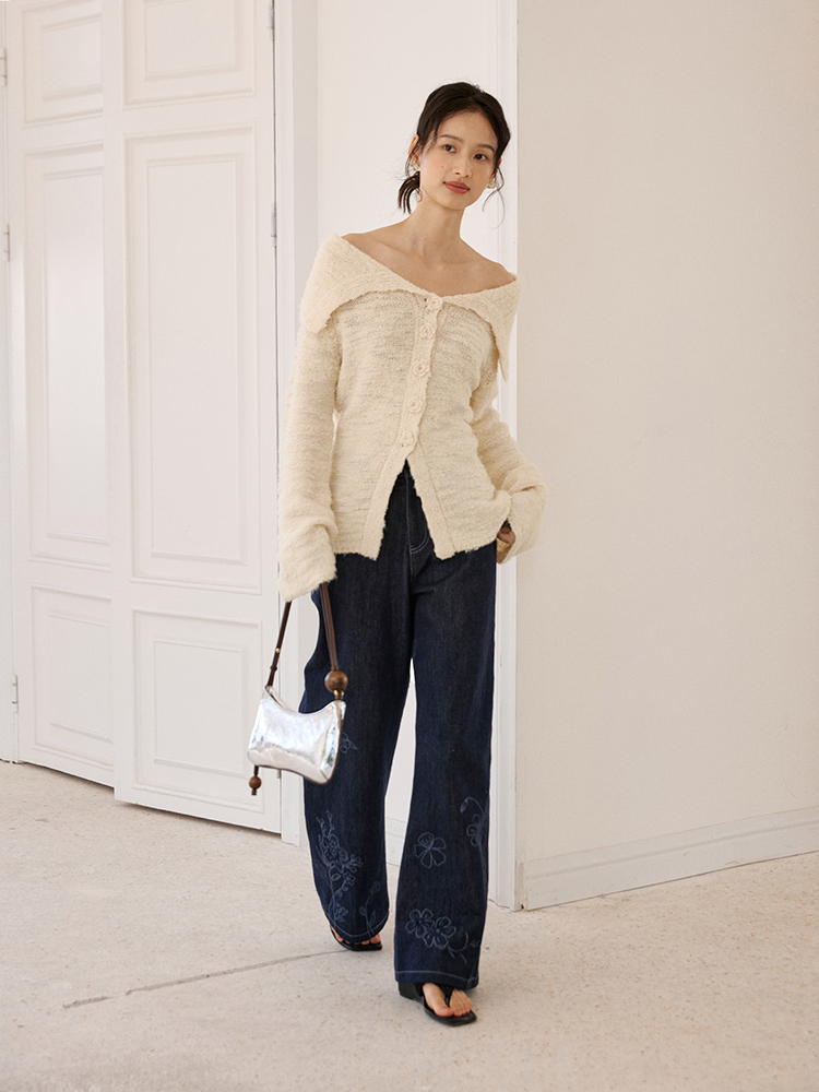 ForPoem 现货 25/SS原创设计大翻领立体花羊毛肌理针织上衣