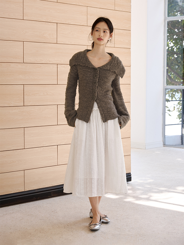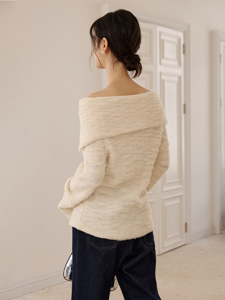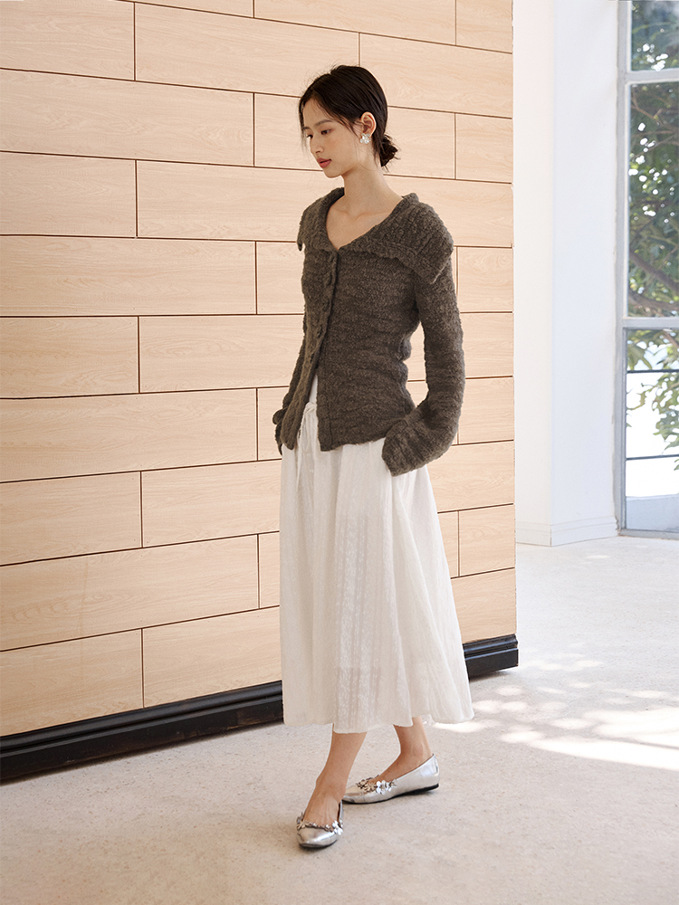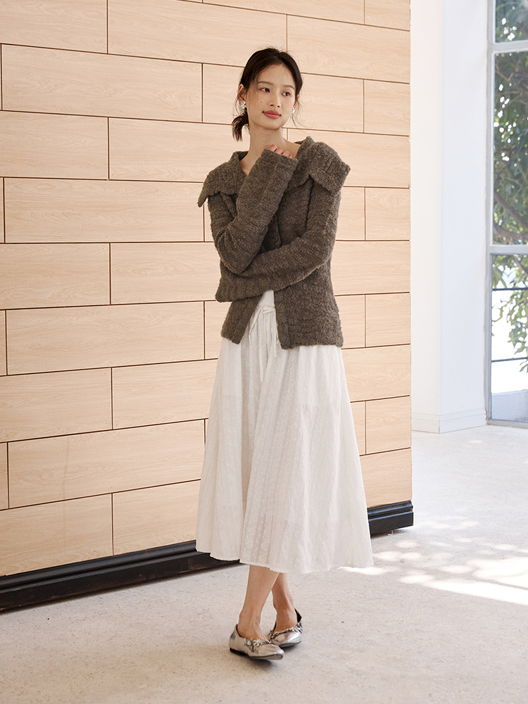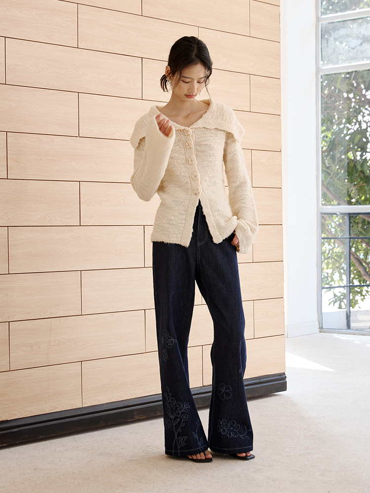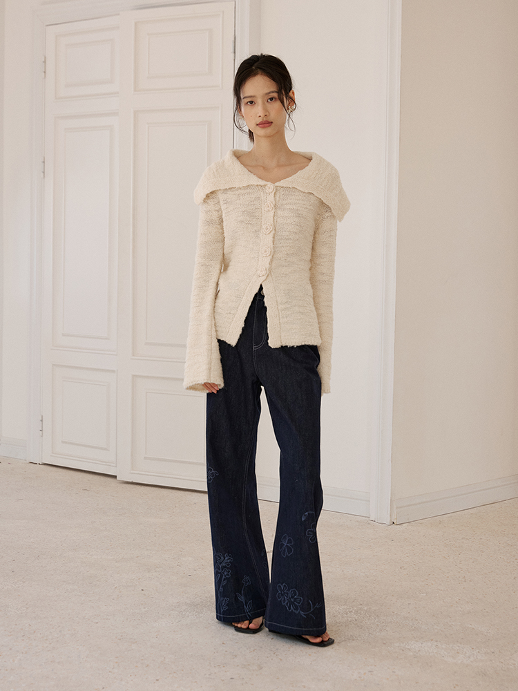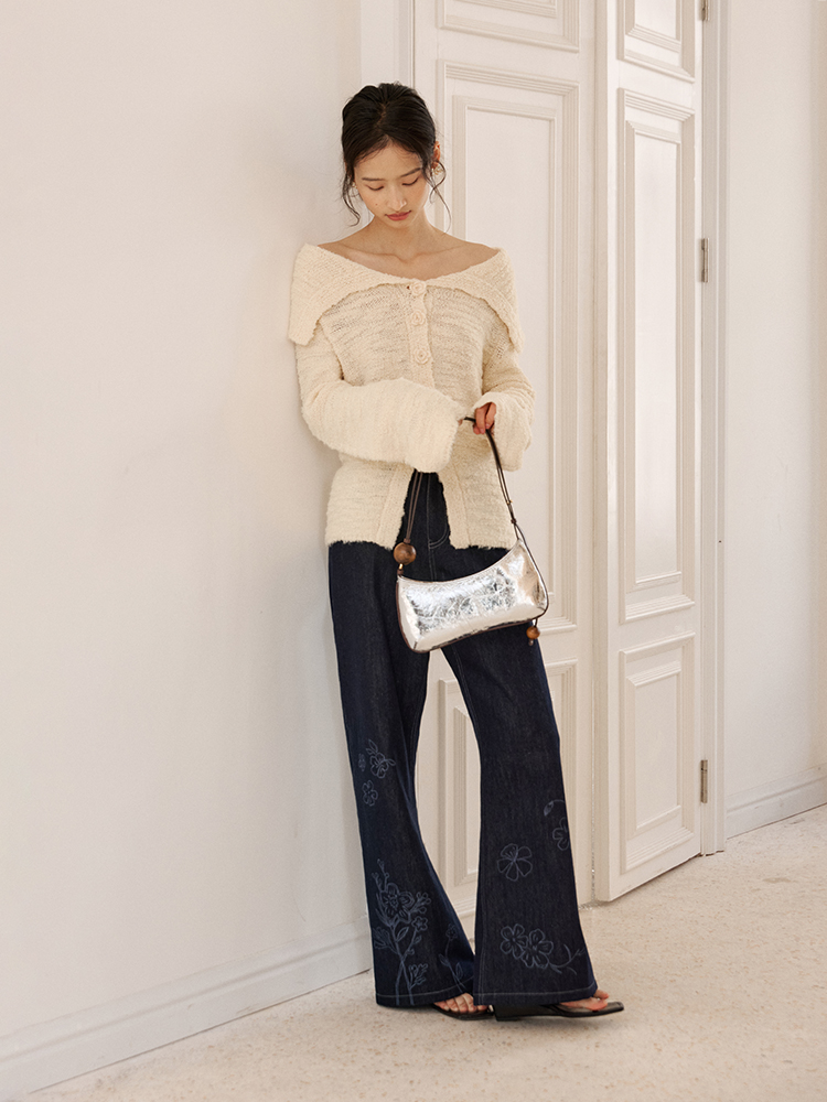 ForPoem 现货 25/SS原创设计大翻领立体花羊毛肌理针织上衣