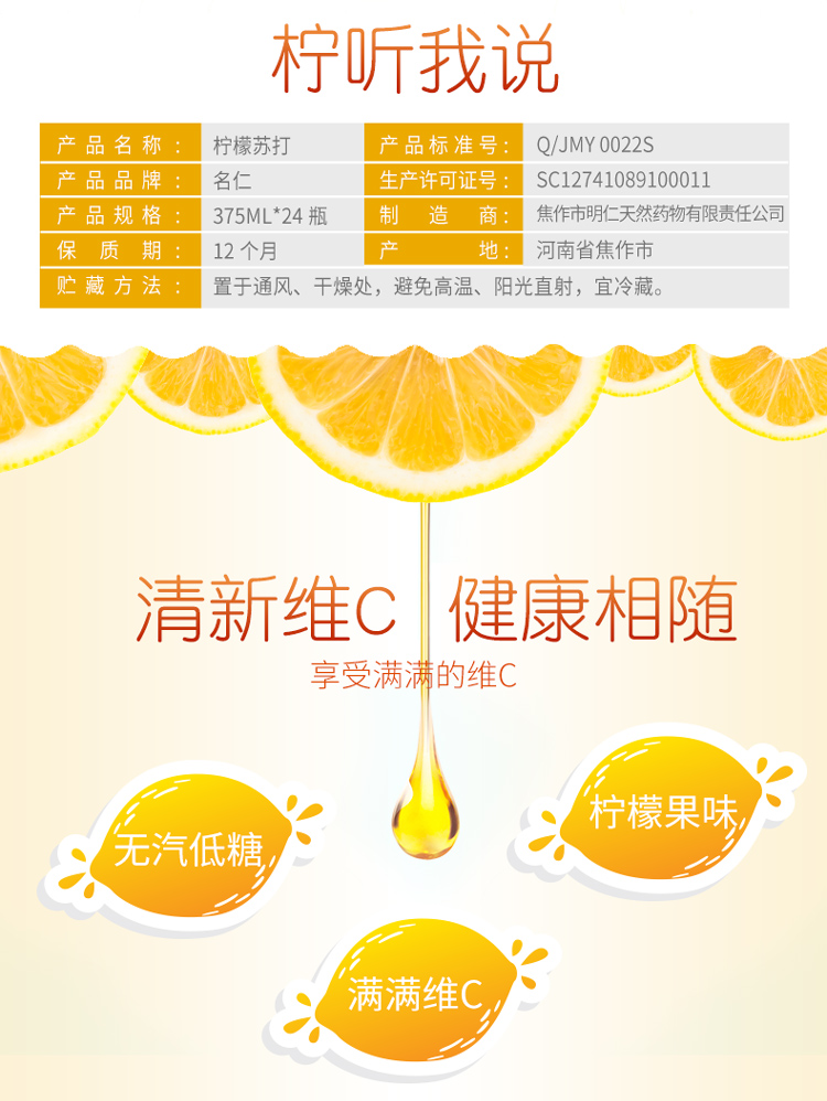 名仁苏打水饮料柠檬味375ml*24