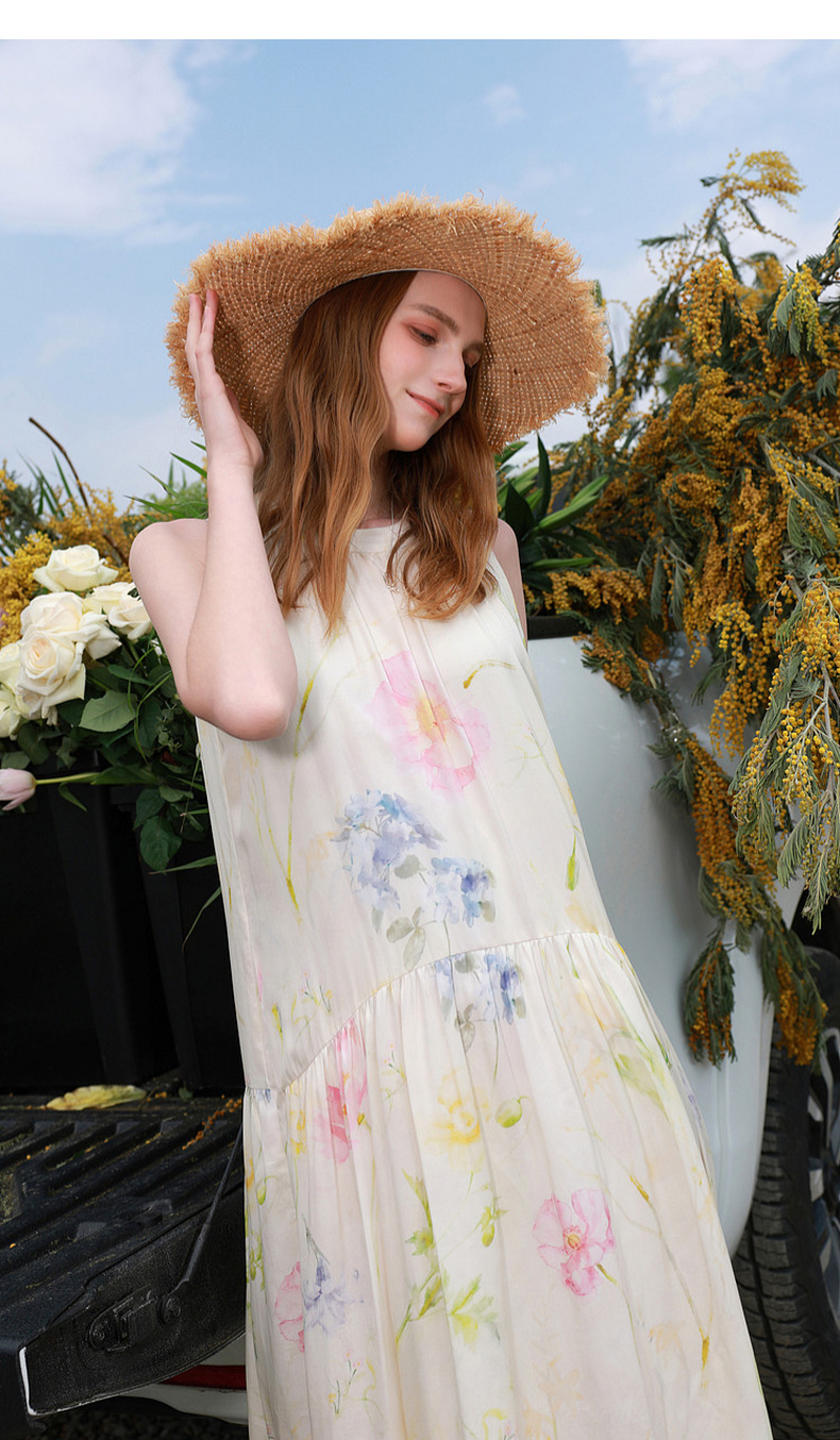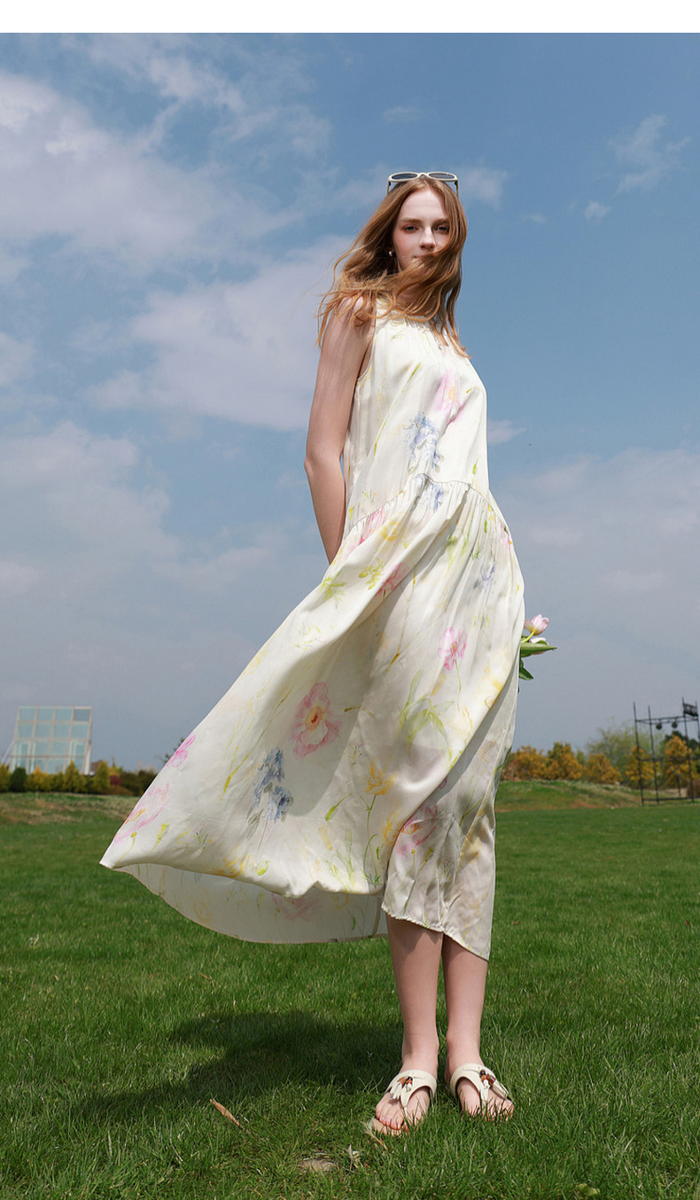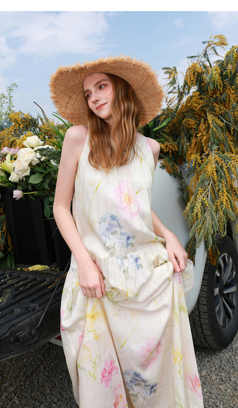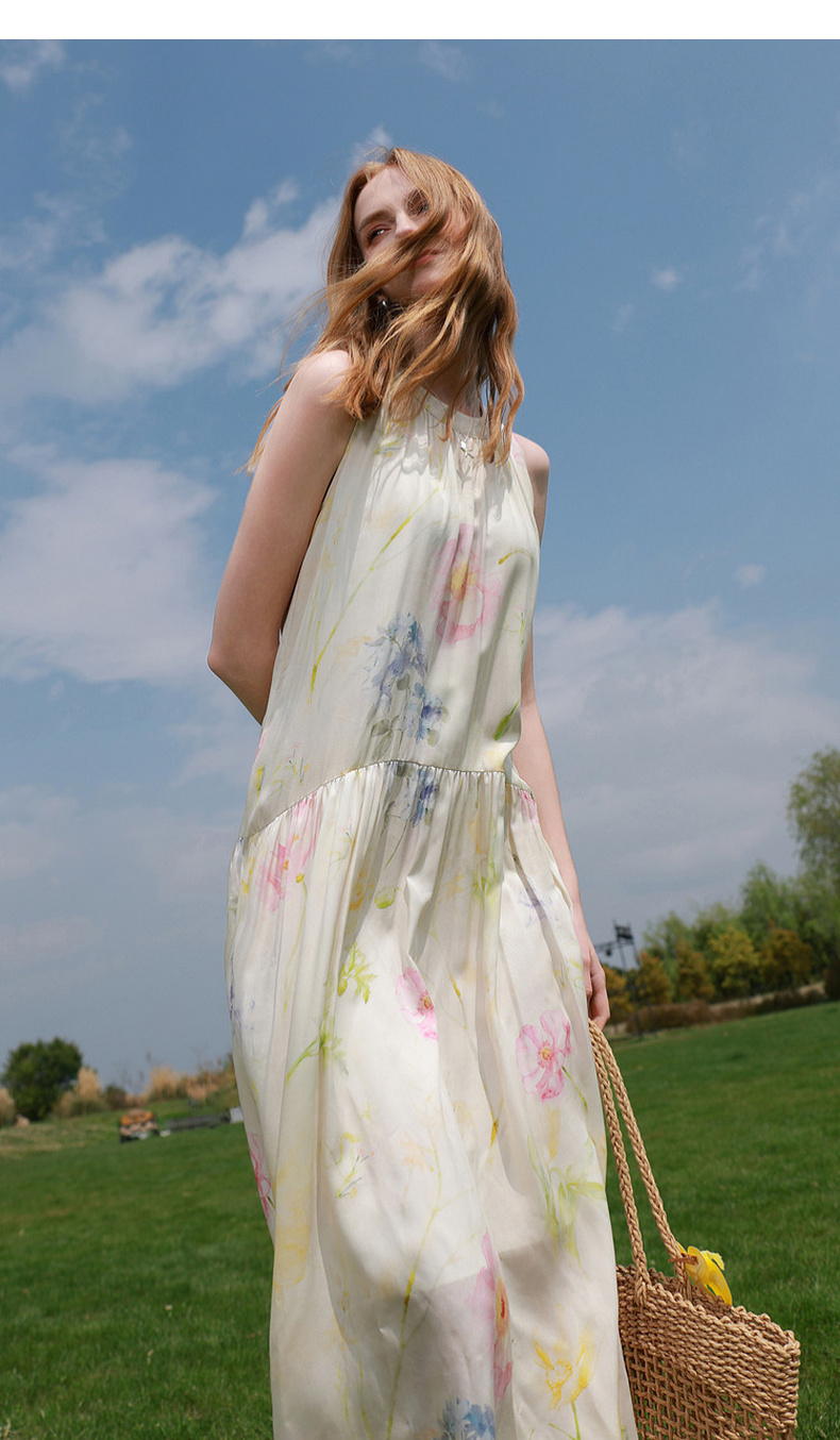 【100莱赛尔】三彩2026夏季新款挂脖连衣裙无袖宽松长裙度假M