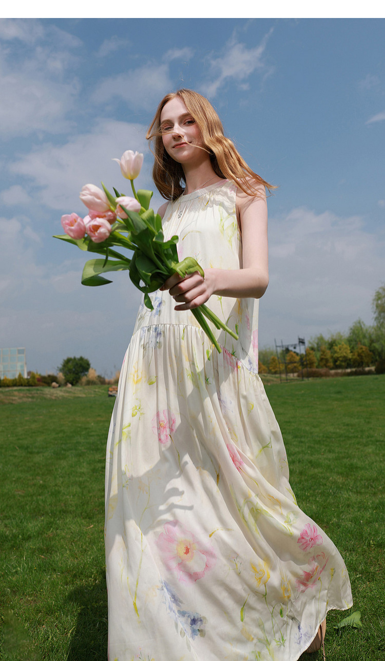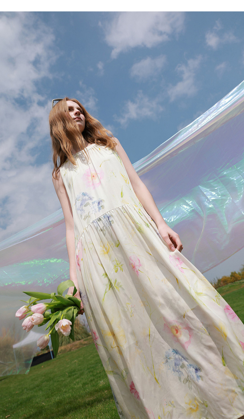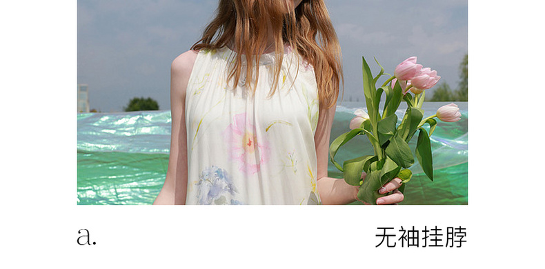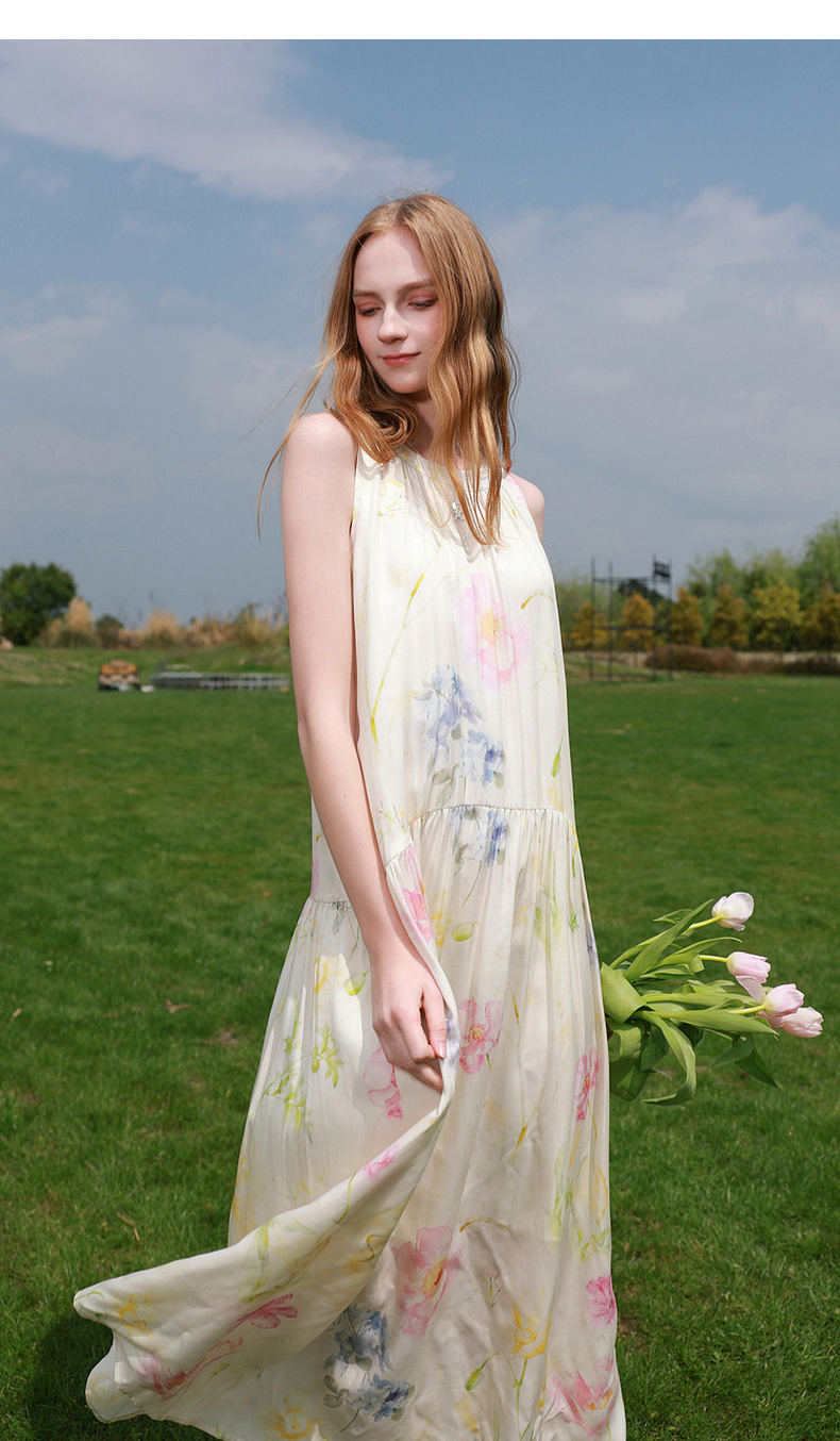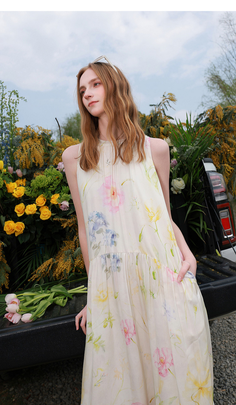 【100莱赛尔】三彩2026夏季新款挂脖连衣裙无袖宽松长裙度假M