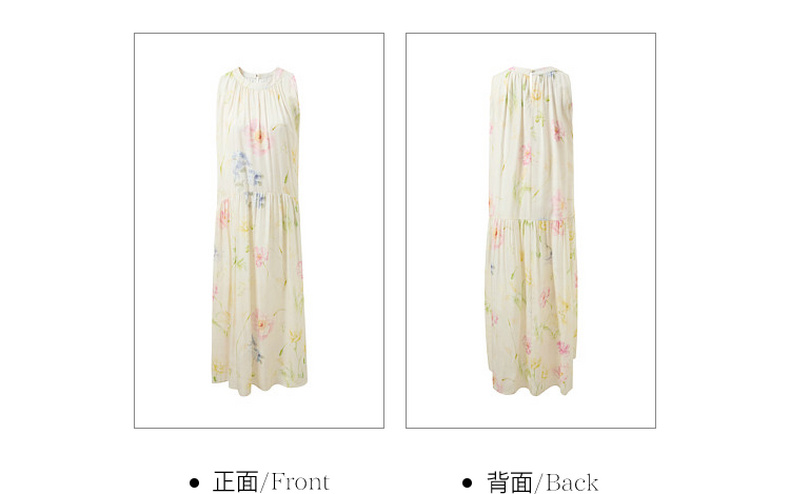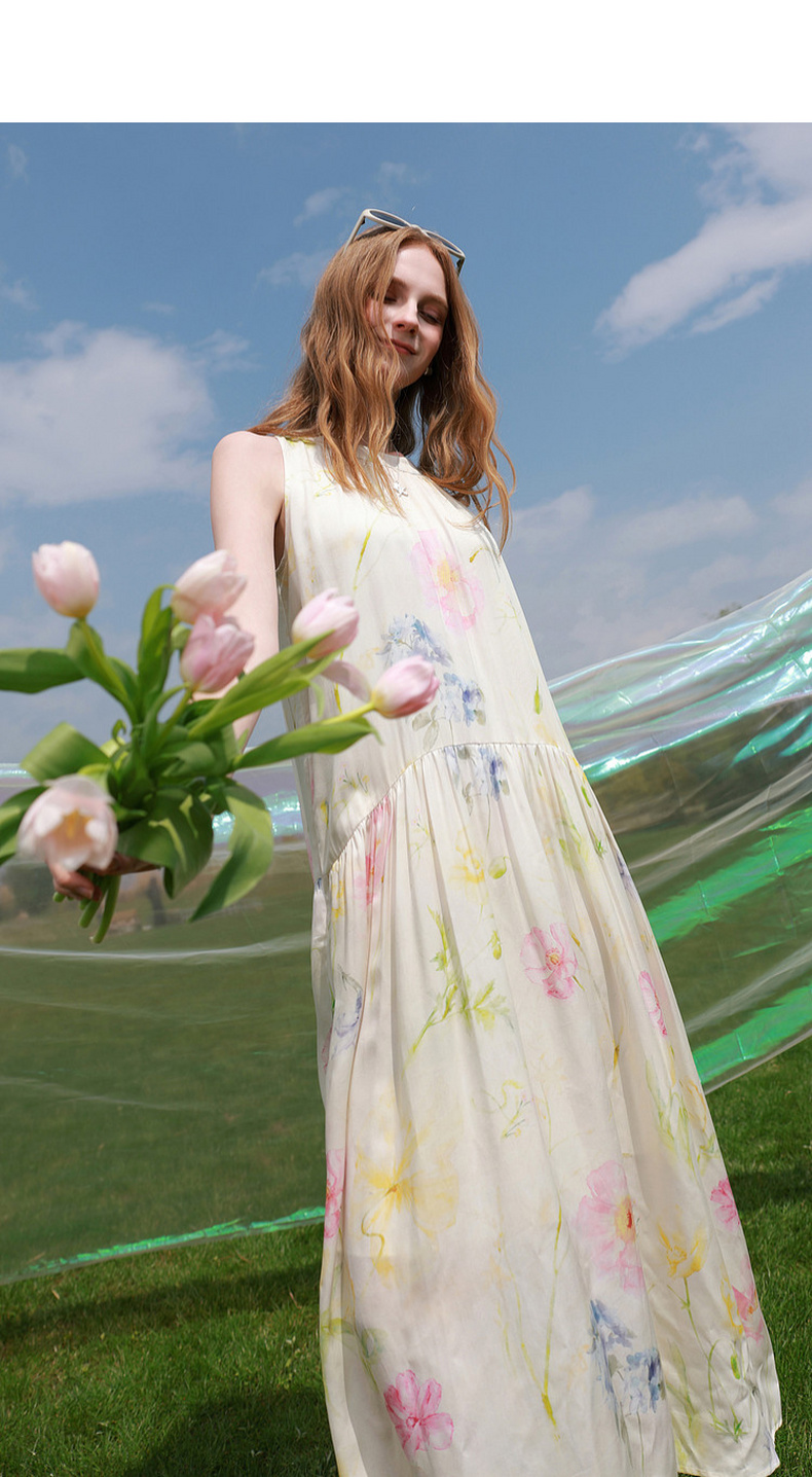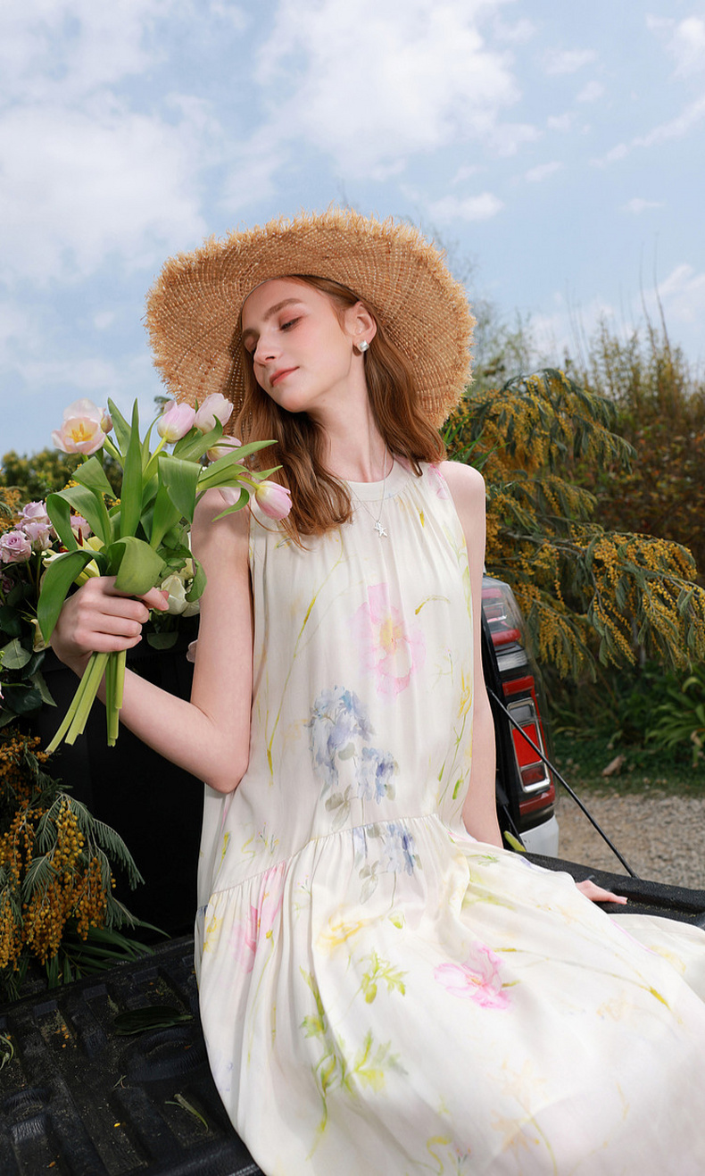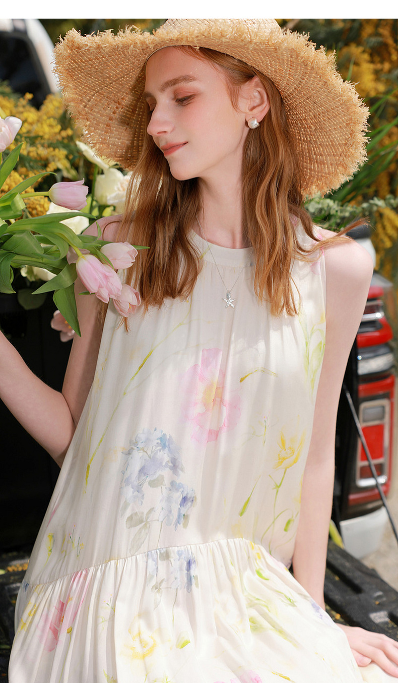 【100莱赛尔】三彩2026夏季新款挂脖连衣裙无袖宽松长裙度假M