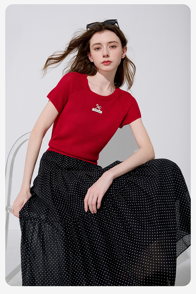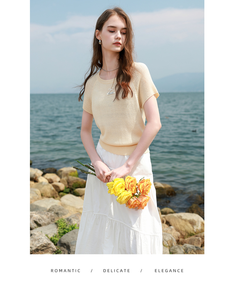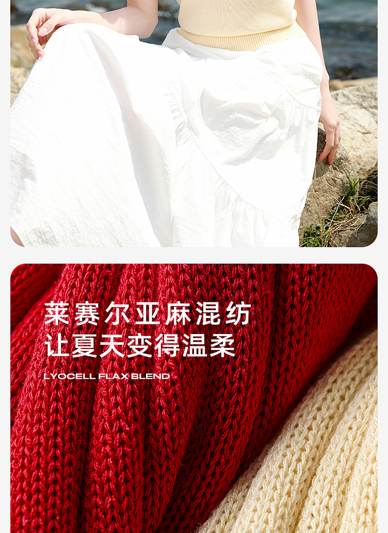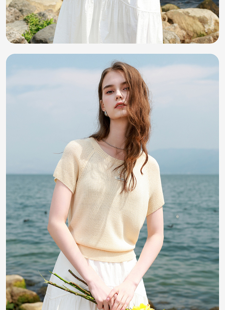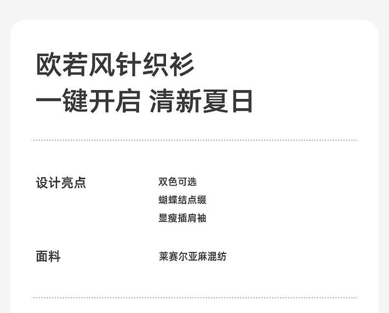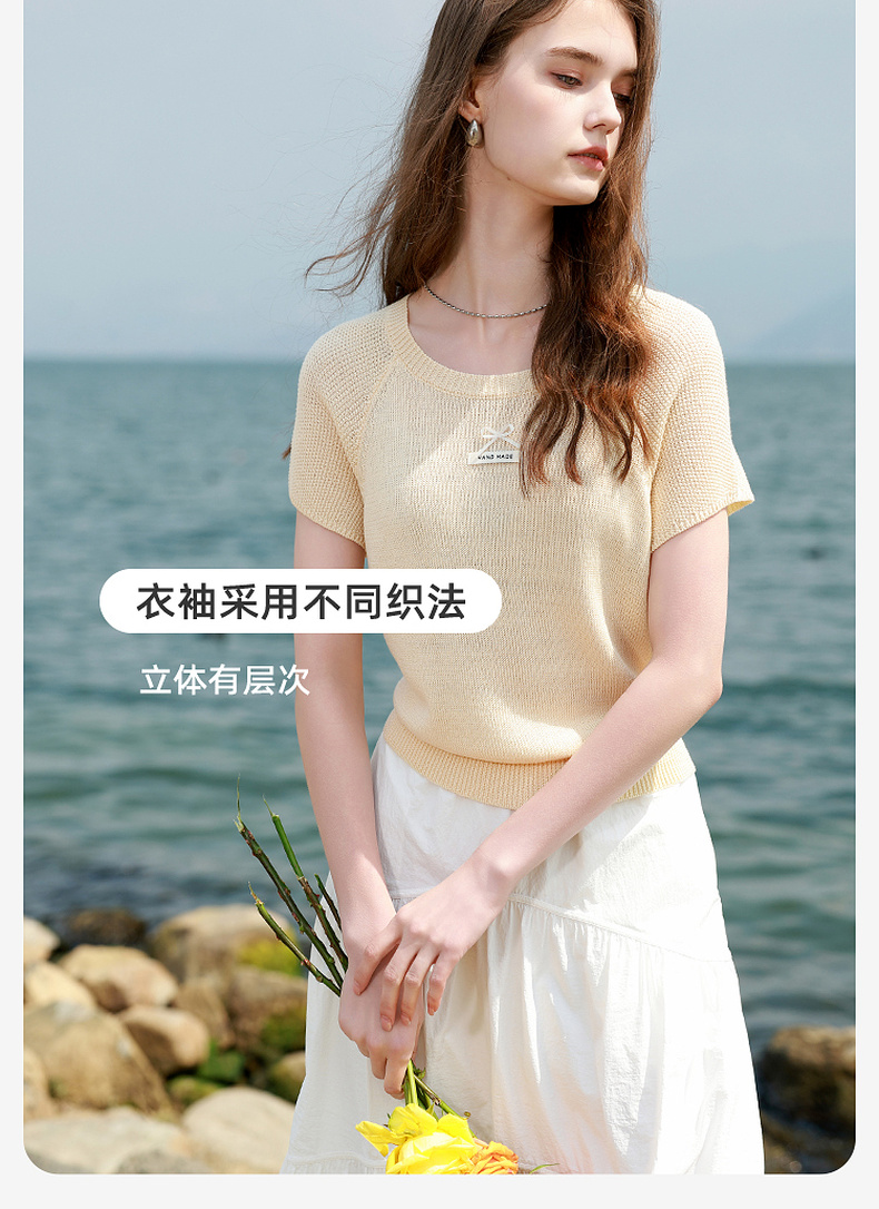 【莱赛尔+亚麻】三彩2025夏季新款蝴蝶结针织衫插肩袖毛衫薄款圆领套头衫简约M
