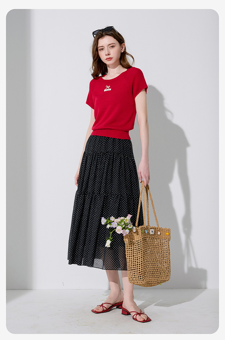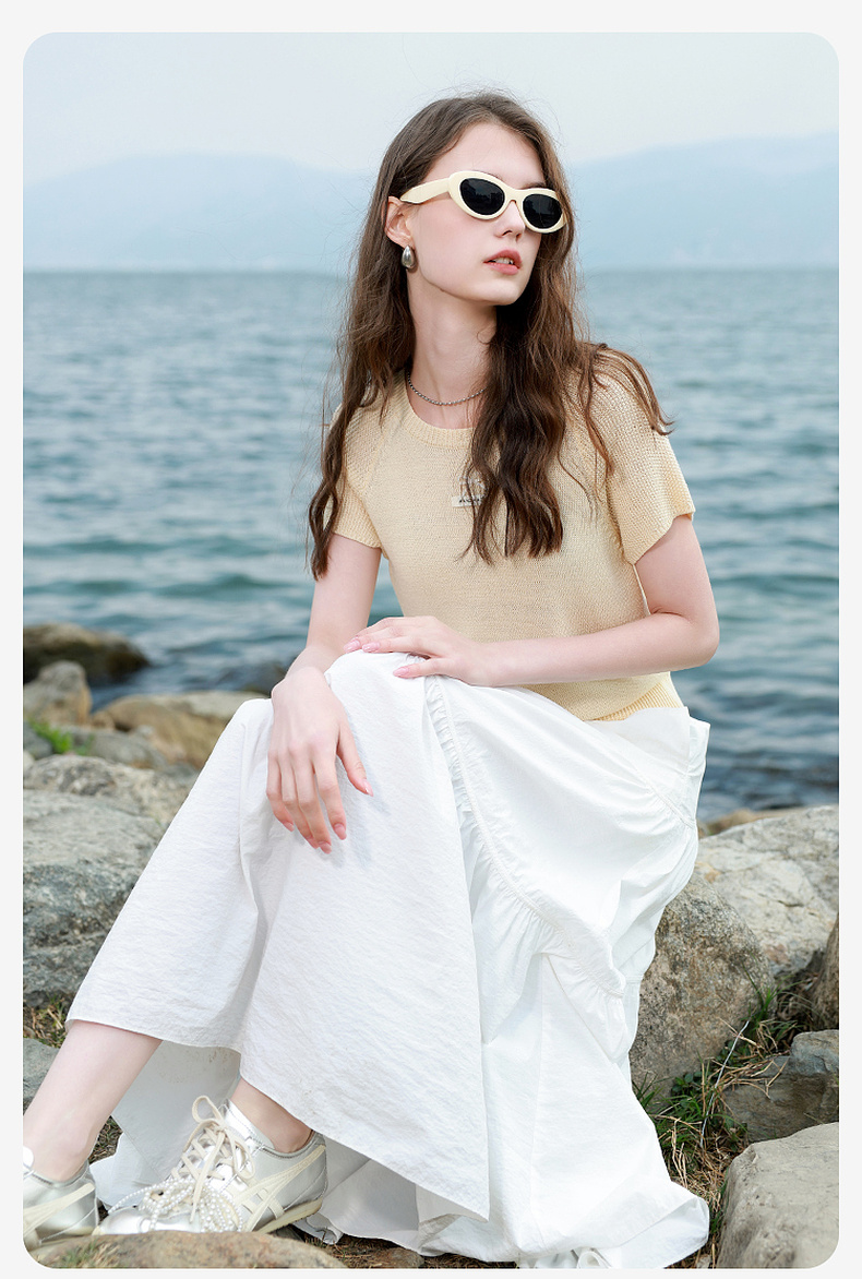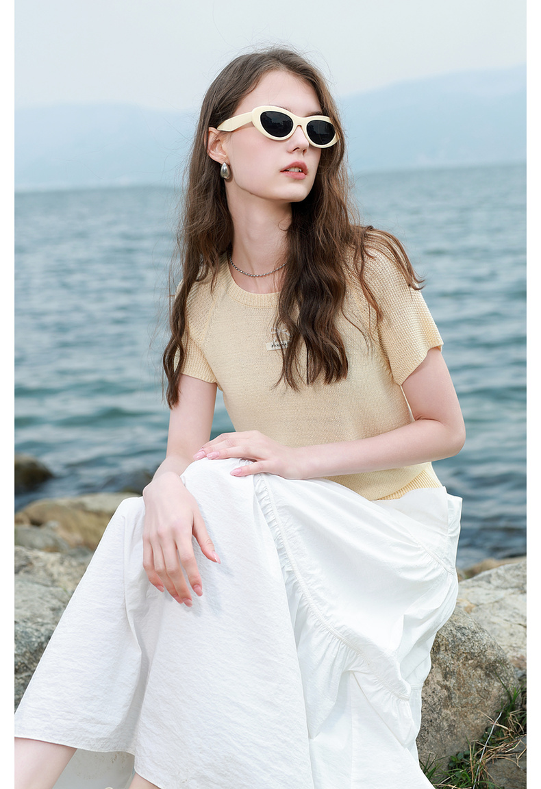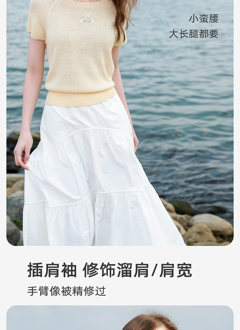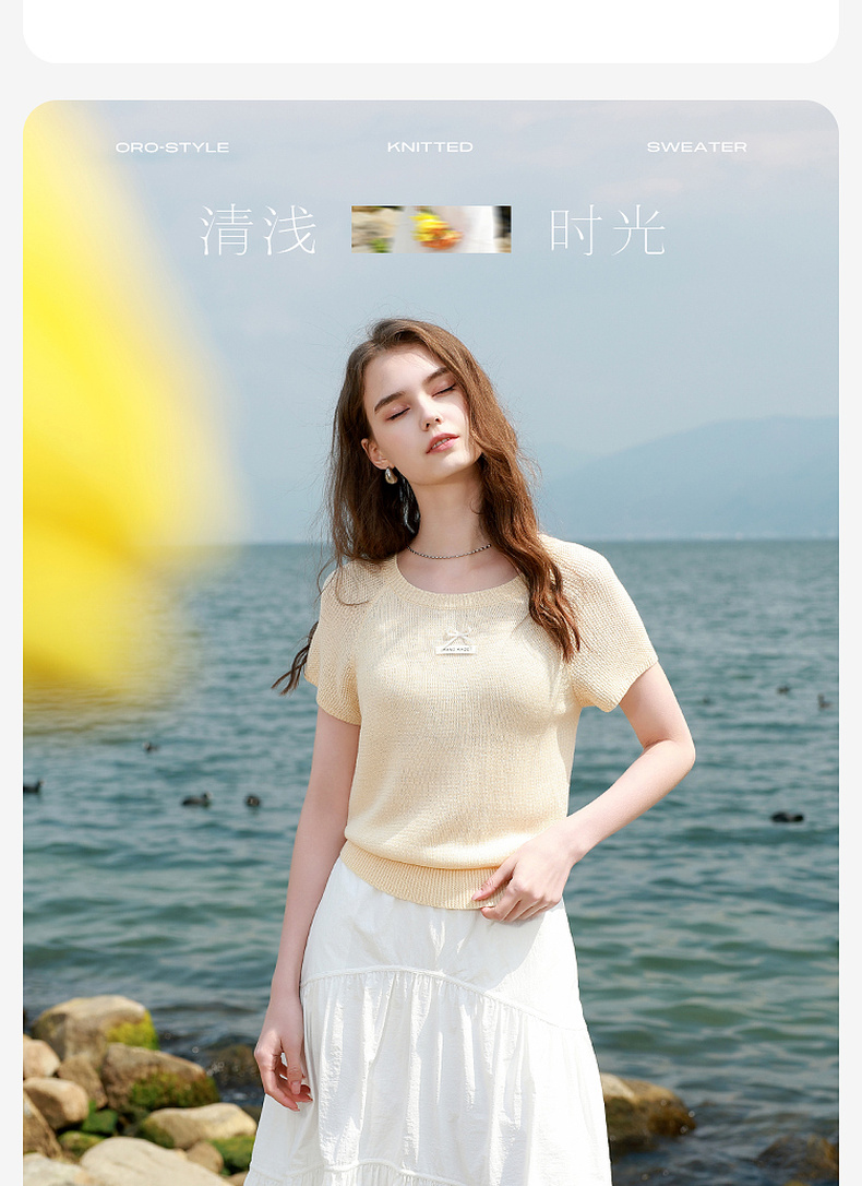 【莱赛尔+亚麻】三彩2025夏季新款蝴蝶结针织衫插肩袖毛衫薄款圆领套头衫简约M
