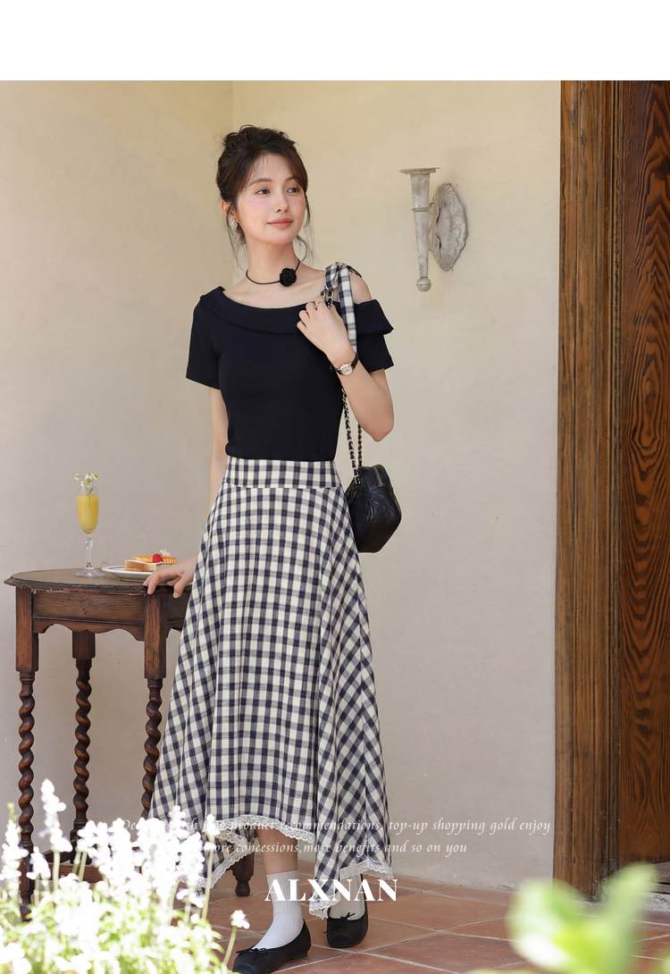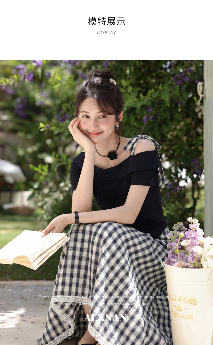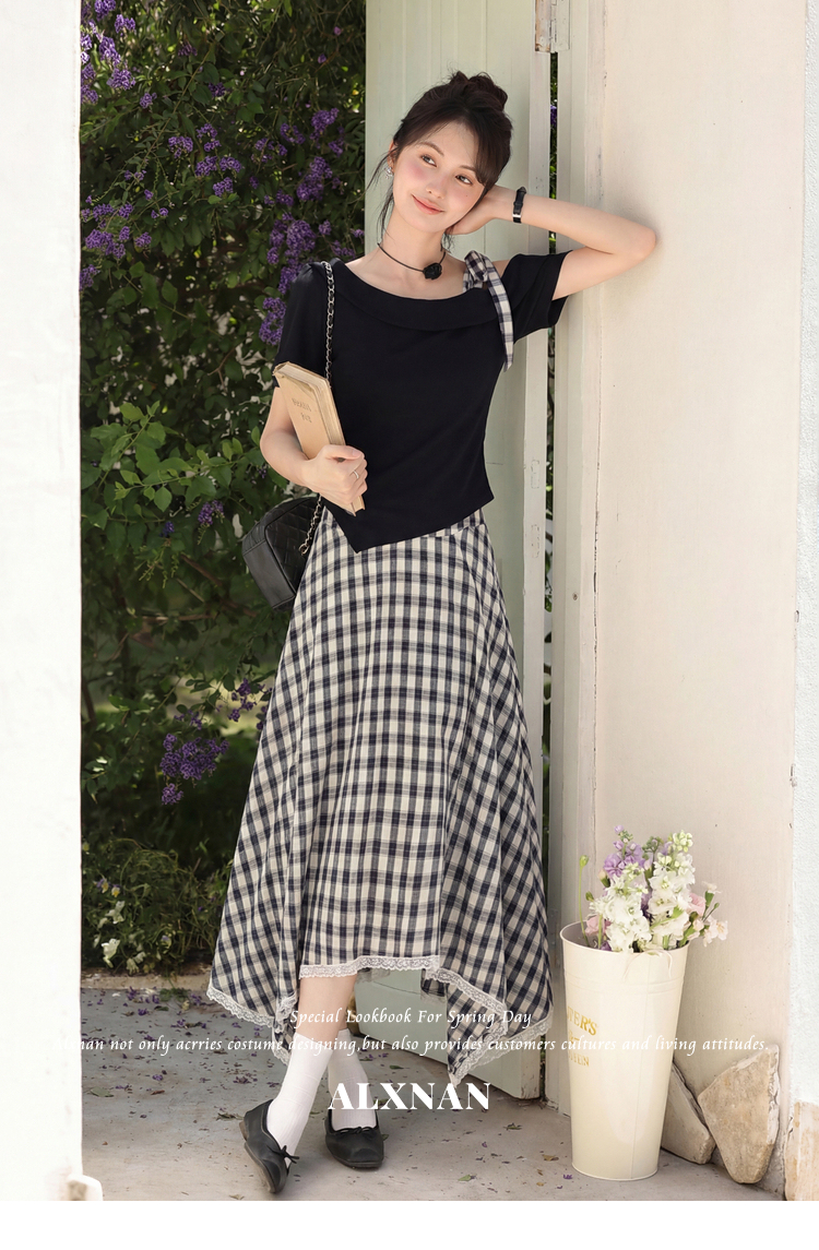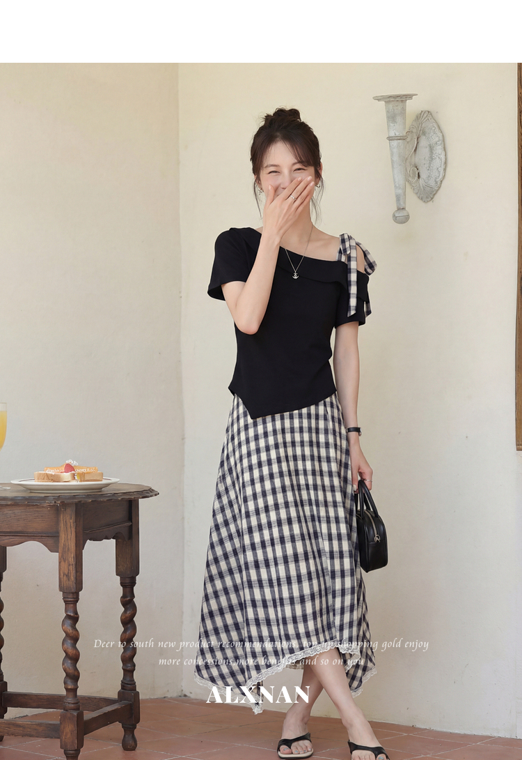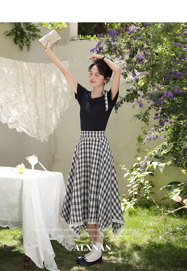 鹿向南【0405/20:00新品前1小时7折限100件】藏蓝色T恤半身裙套装