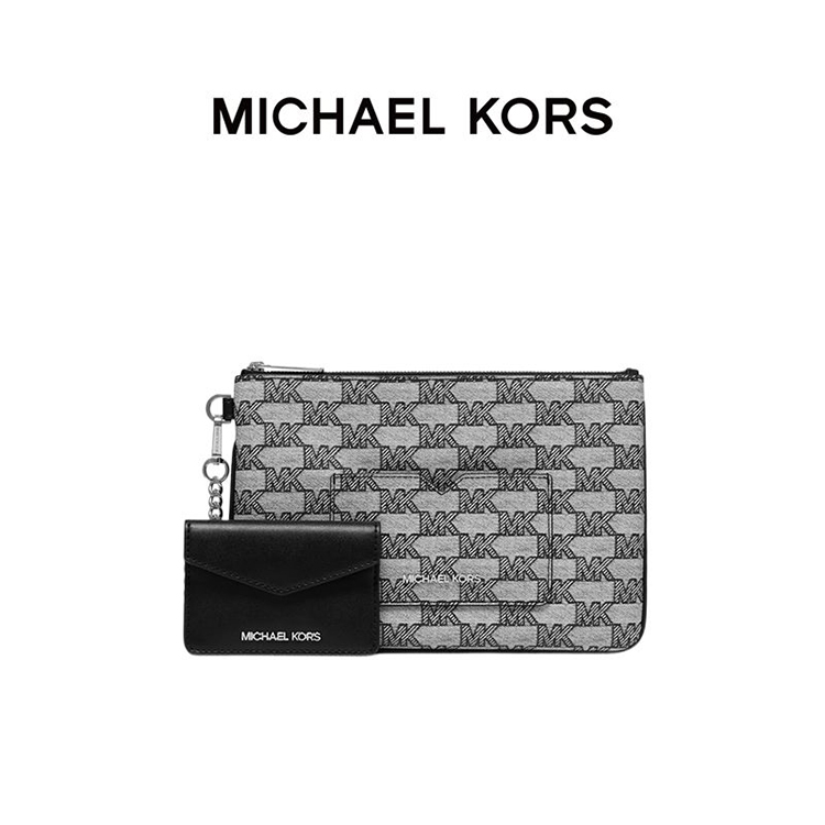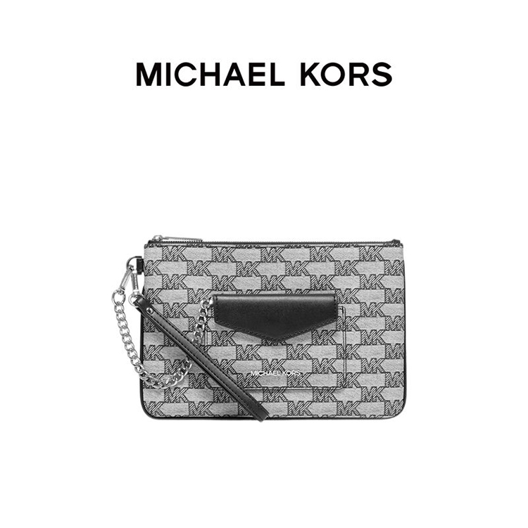 【品牌】 MK Jet Set Item 大号印花金属链条手拿包黑色