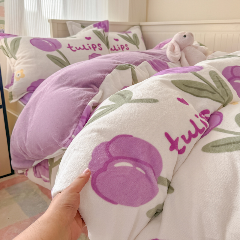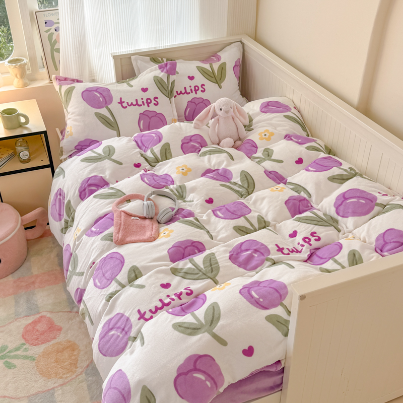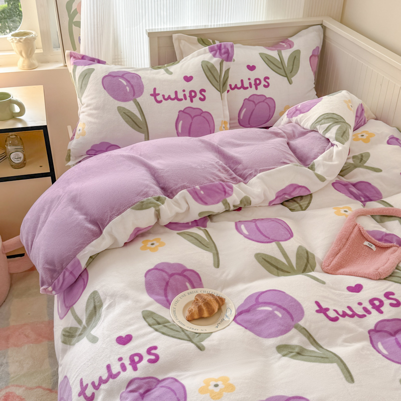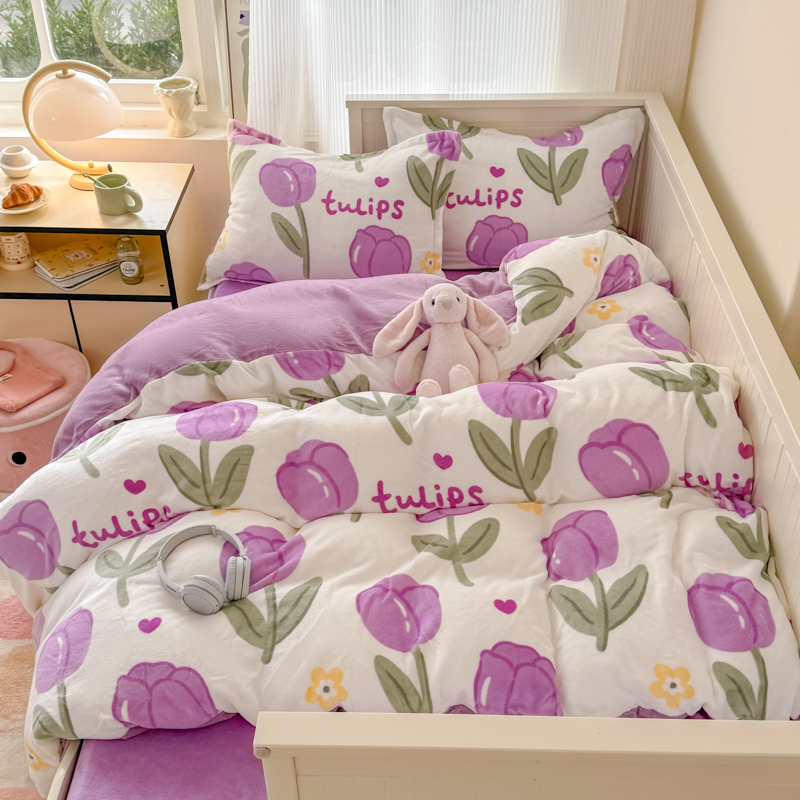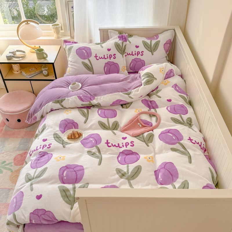 冬季牛奶绒宿舍三件套