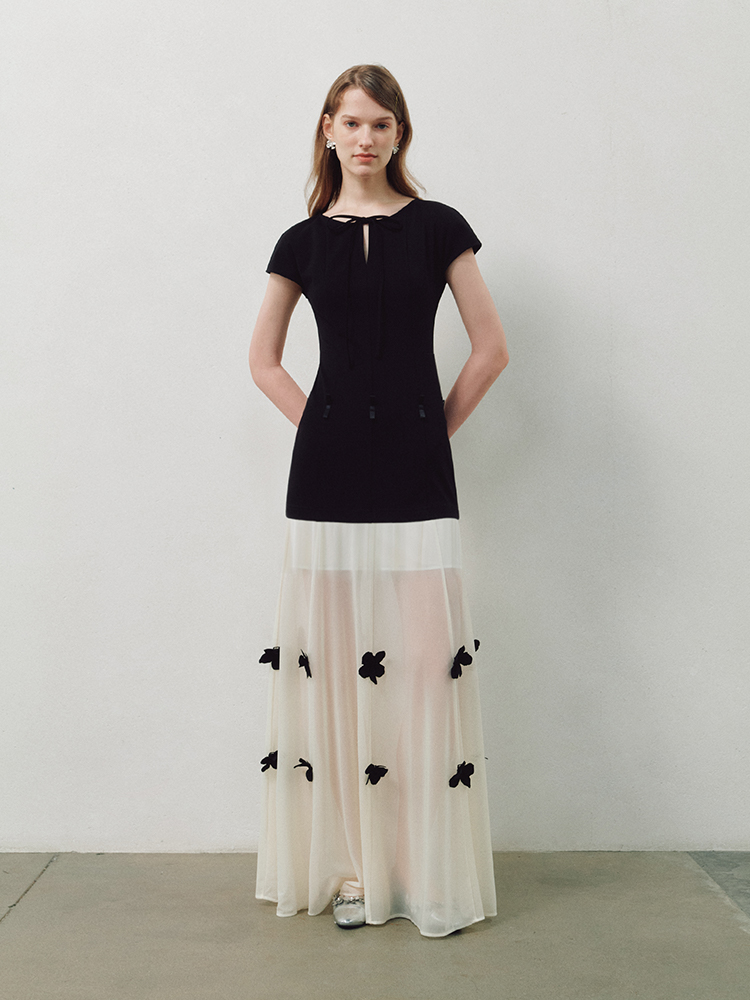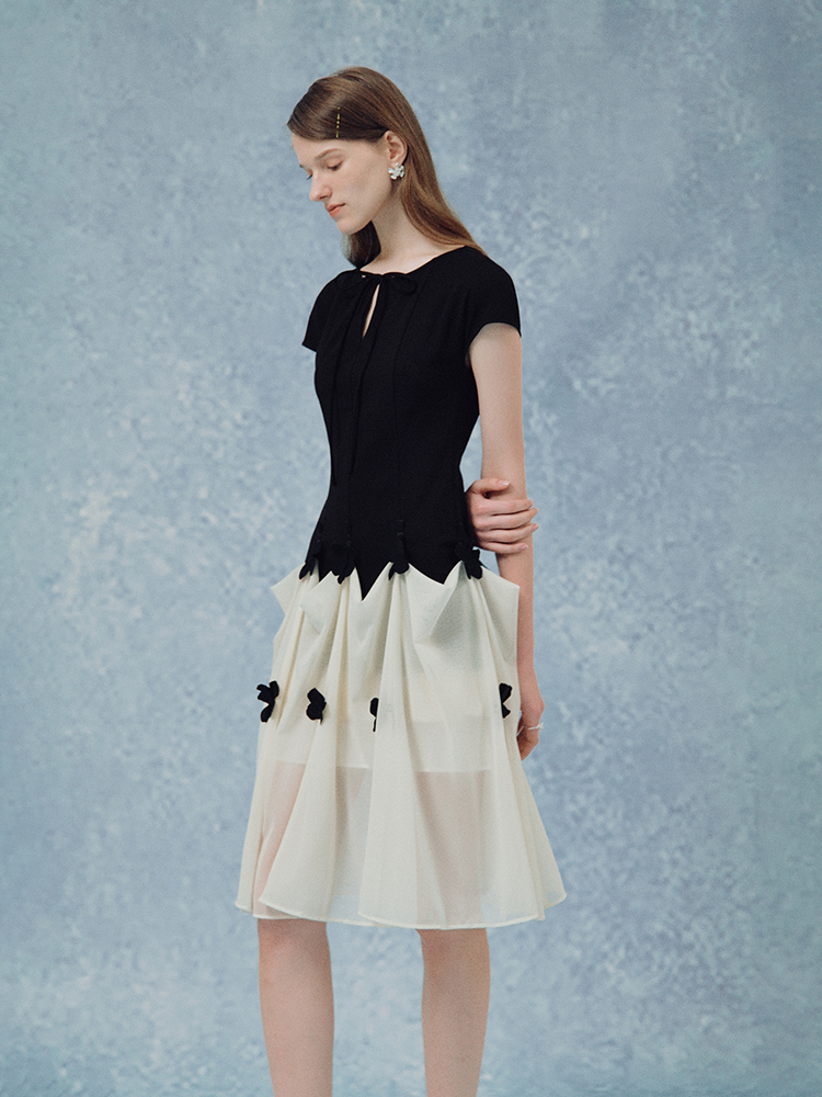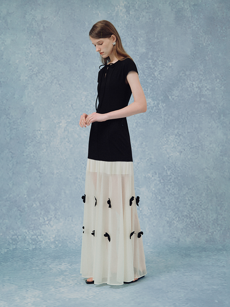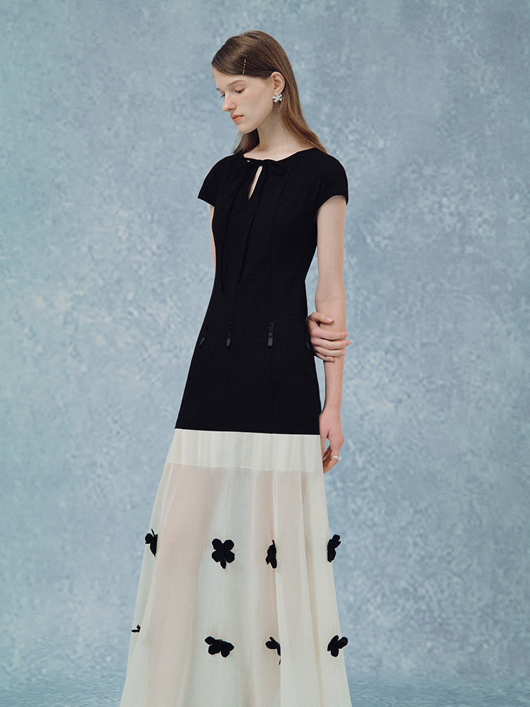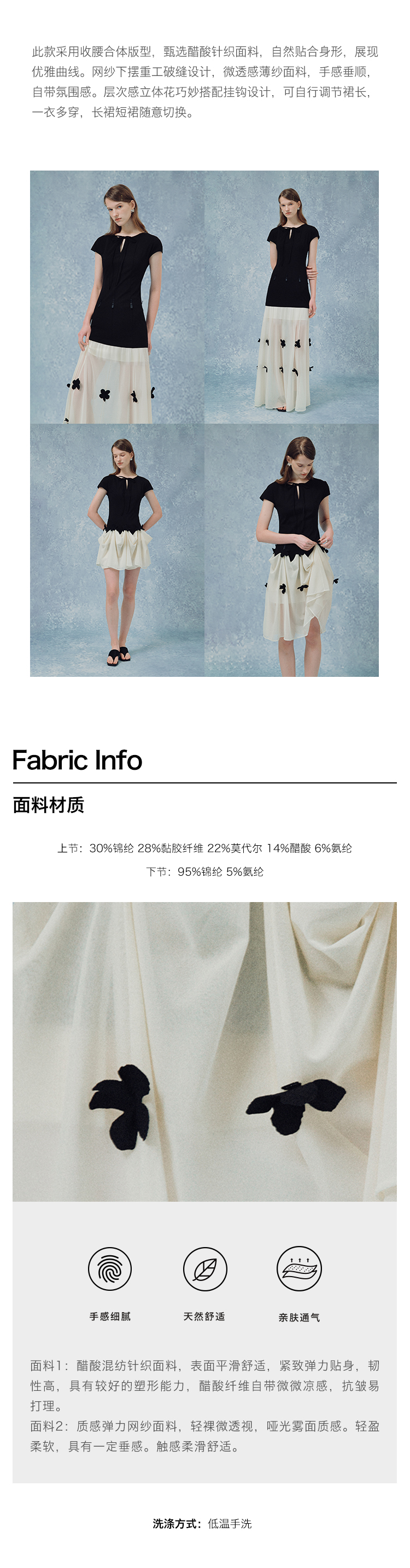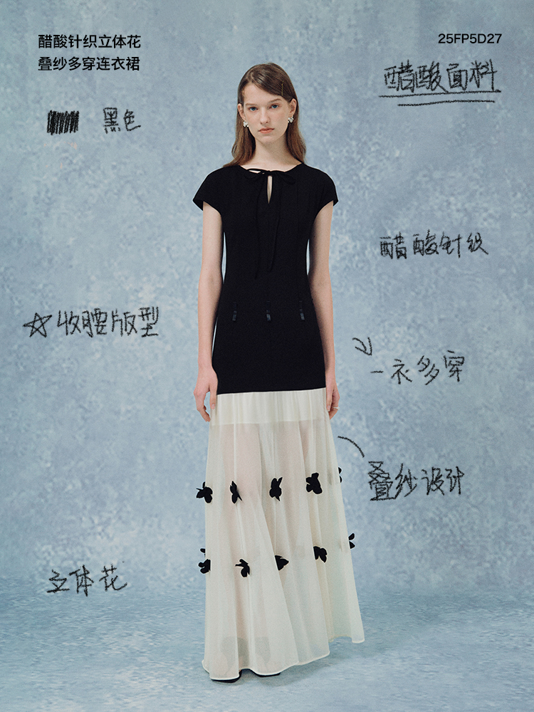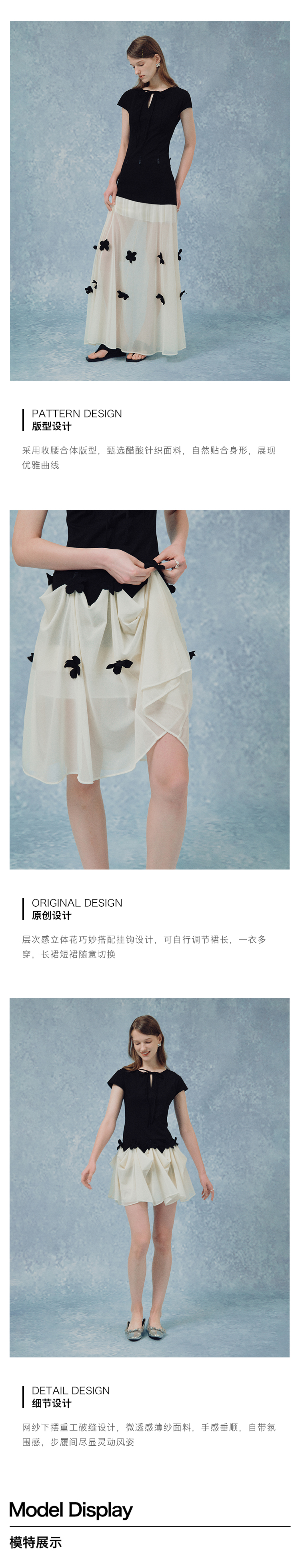 ForPoem 现货 25/SS原创设计醋酸网纱立体花多穿法重工长款短款连衣裙