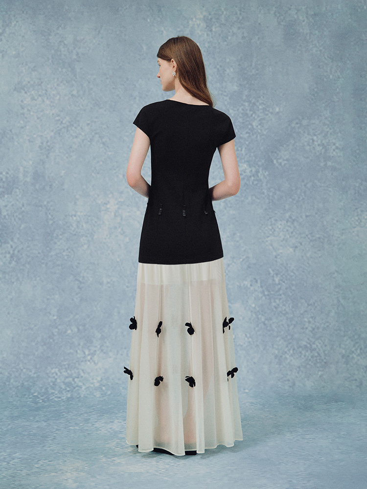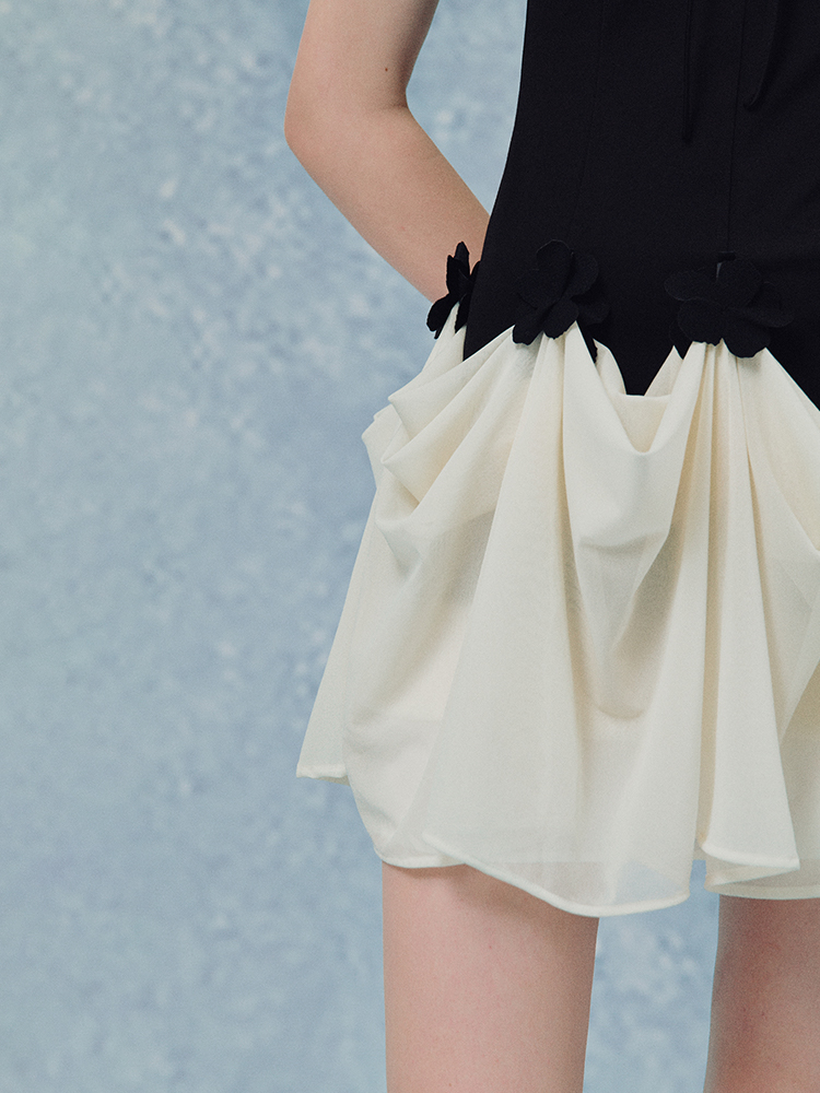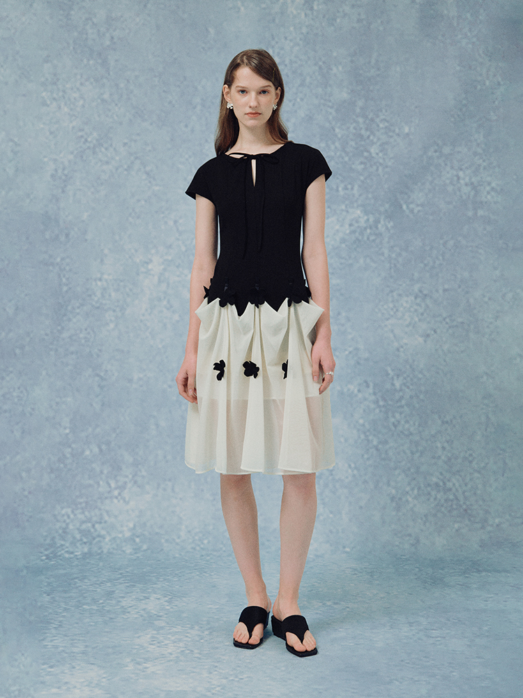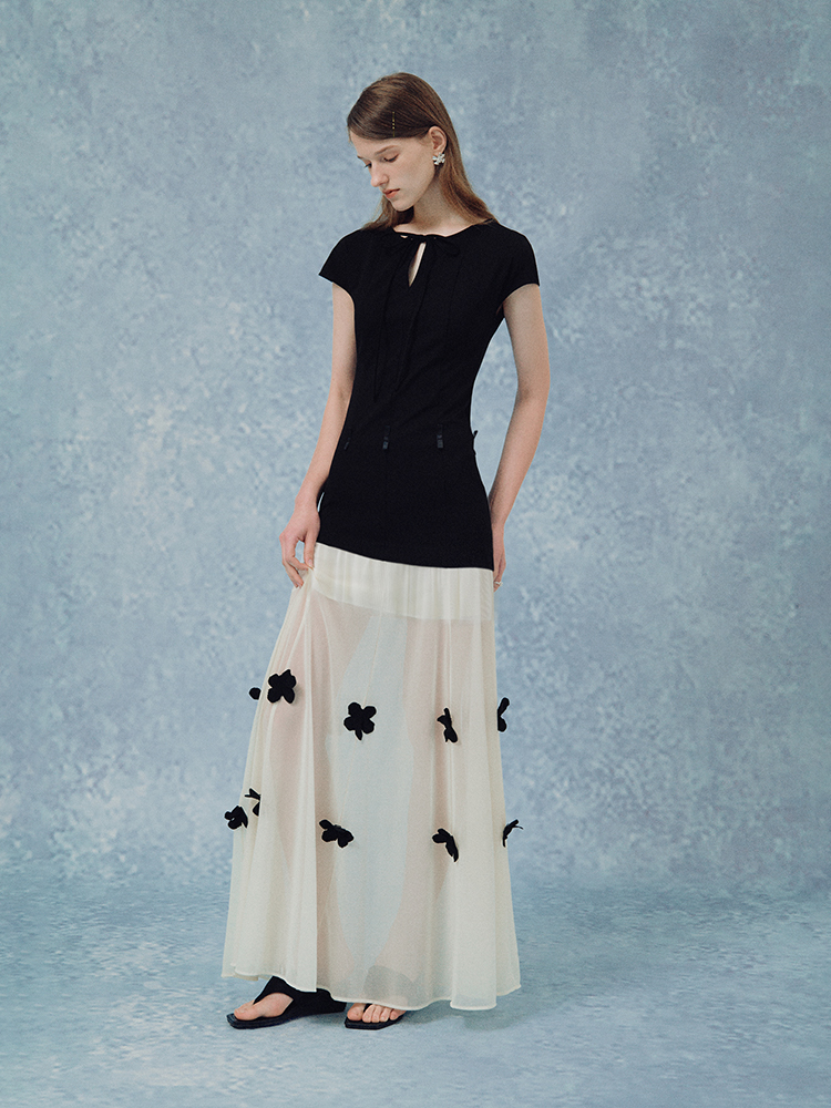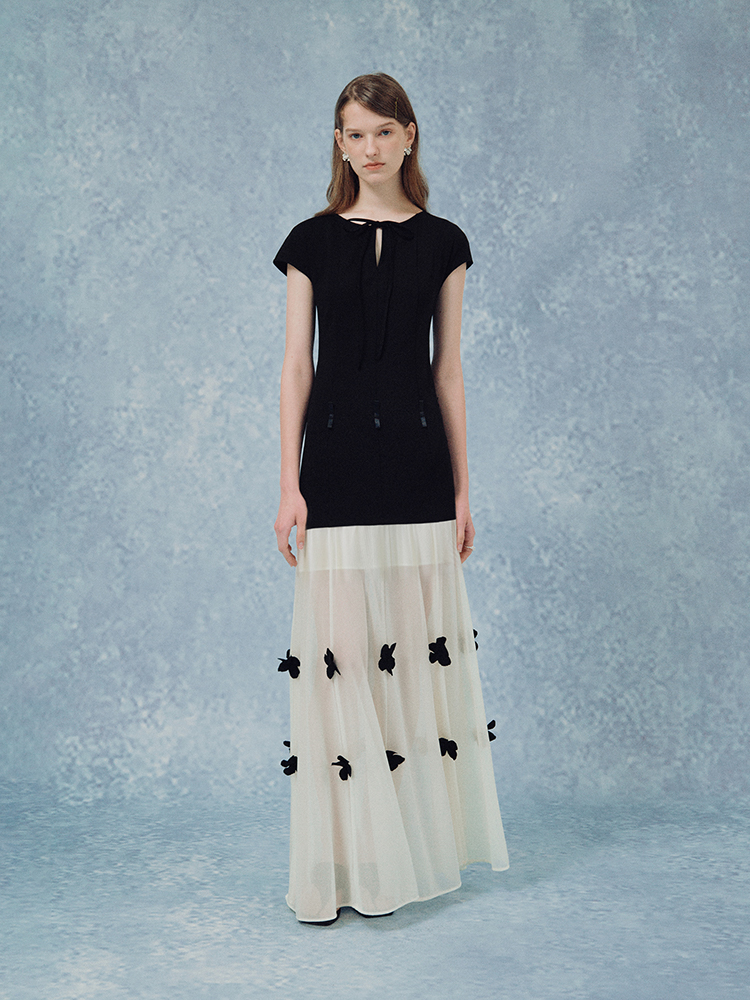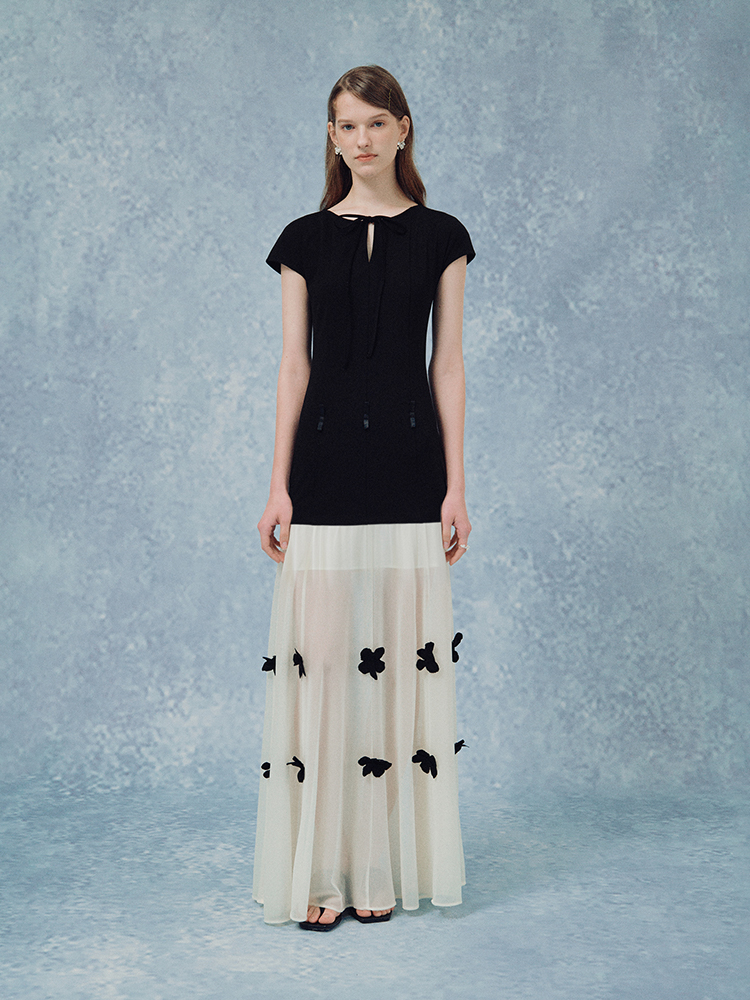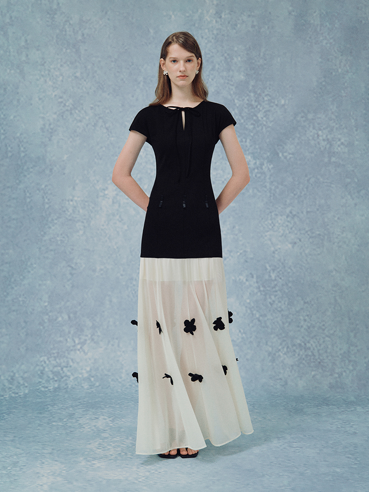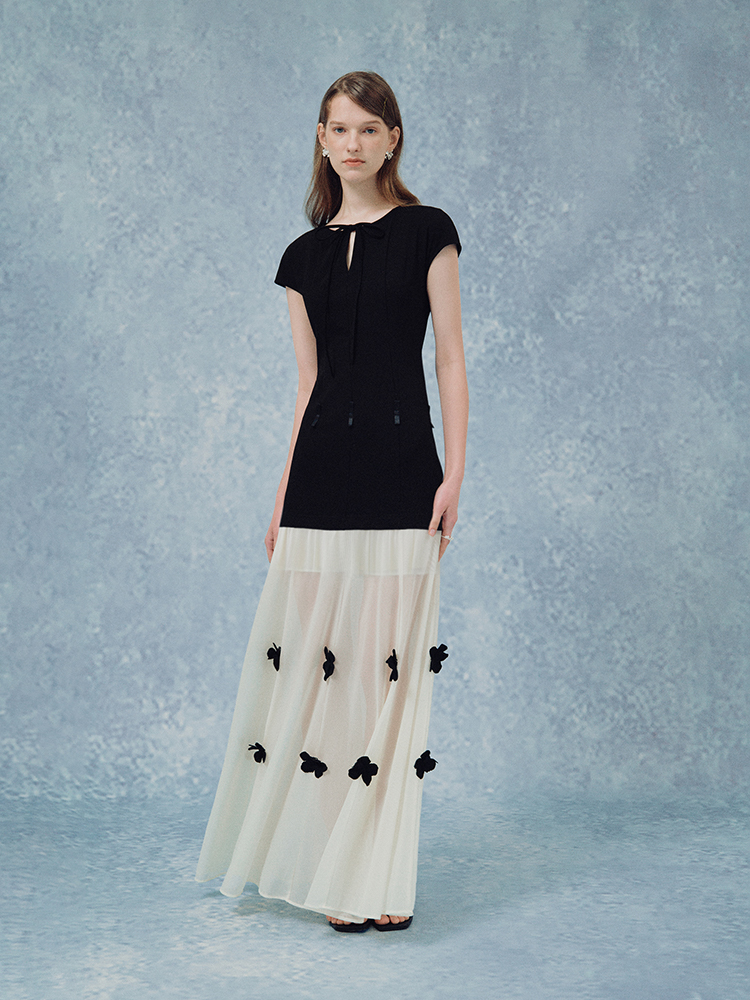 ForPoem 现货 25/SS原创设计醋酸网纱立体花多穿法重工长款短款连衣裙