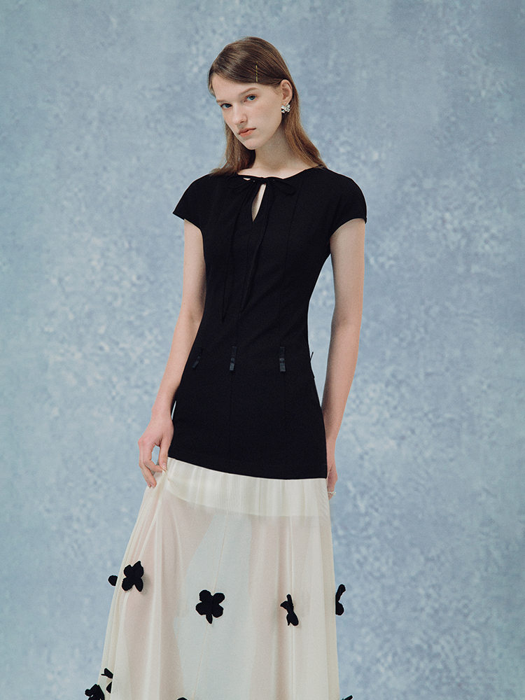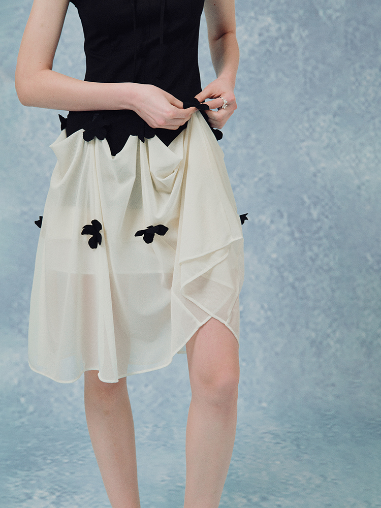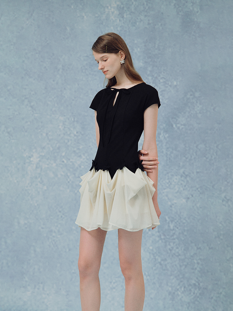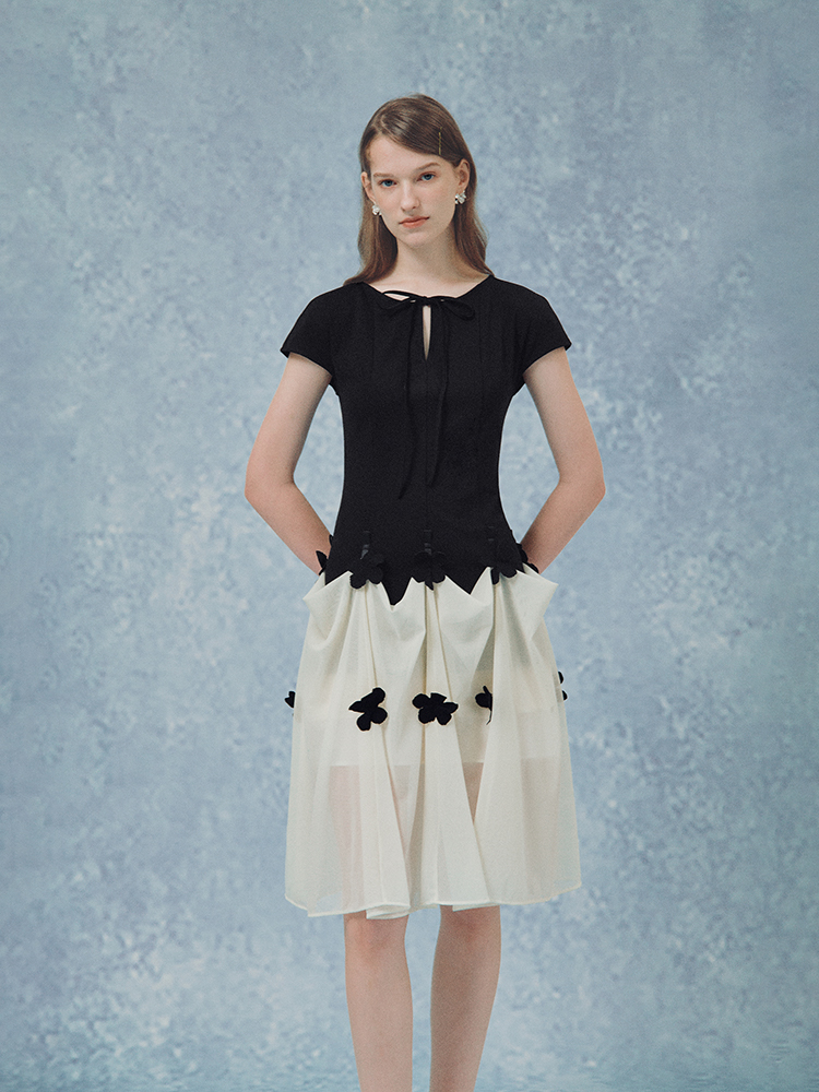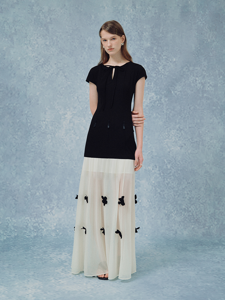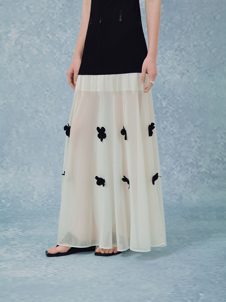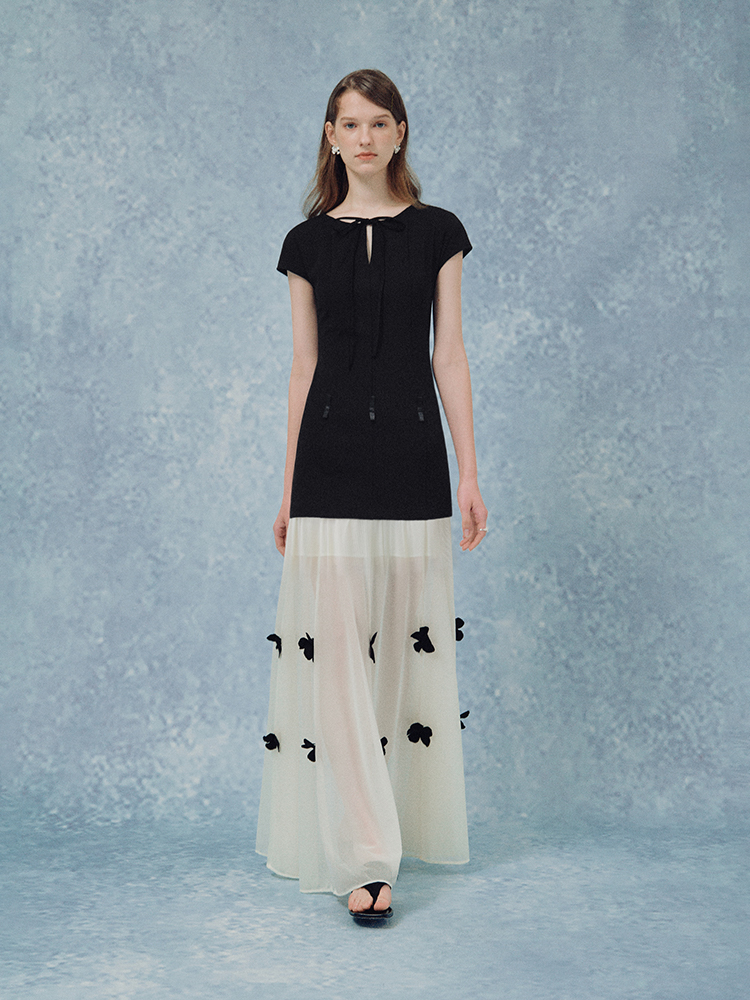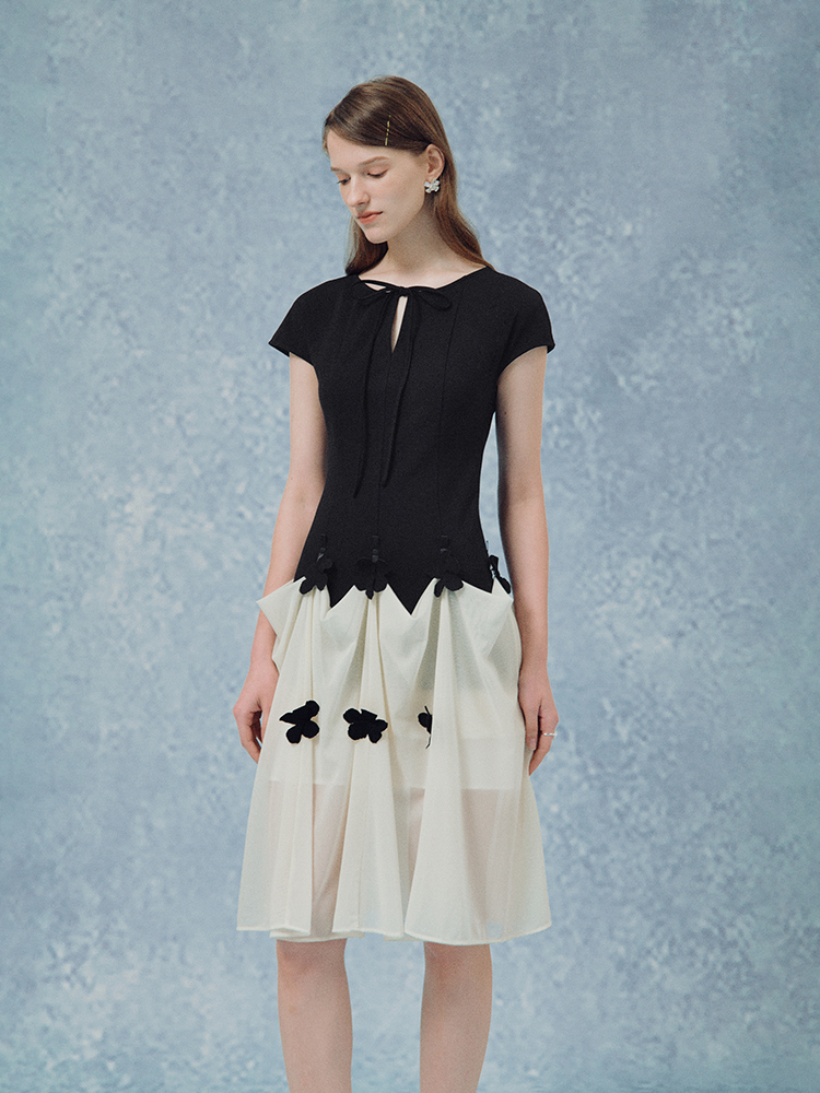 ForPoem 现货 25/SS原创设计醋酸网纱立体花多穿法重工长款短款连衣裙