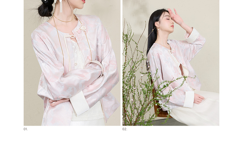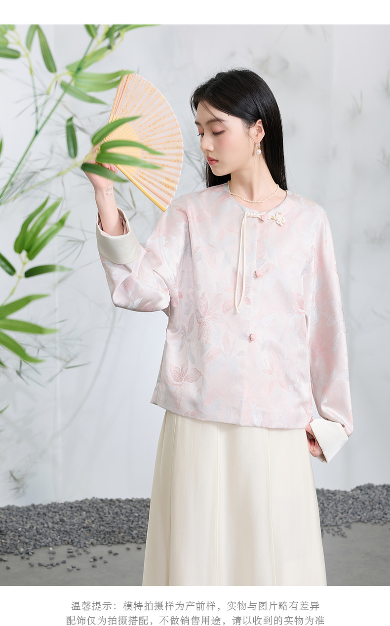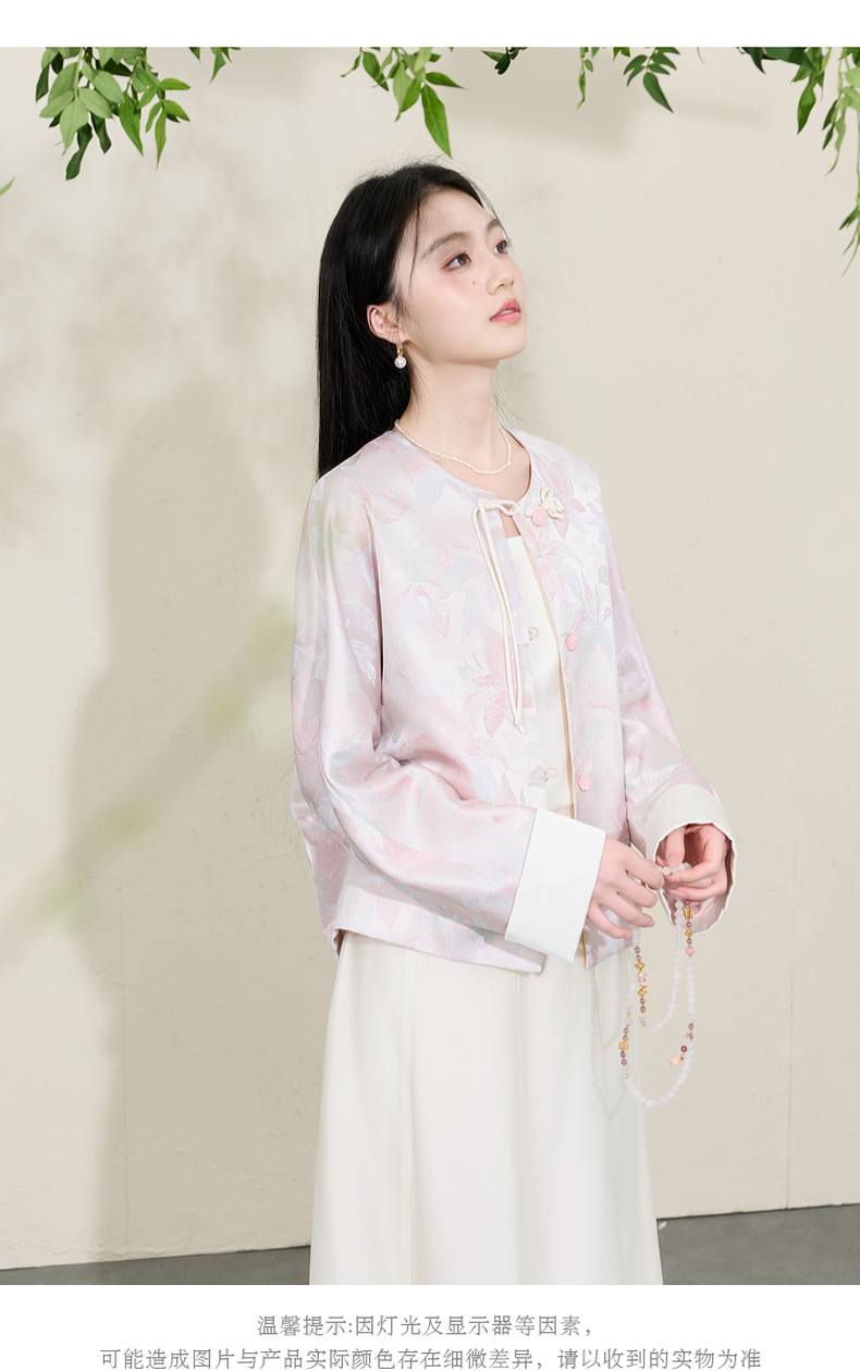 三彩【浮光花影】2026春季新款新中式提花外套盘扣开衫宽松C
