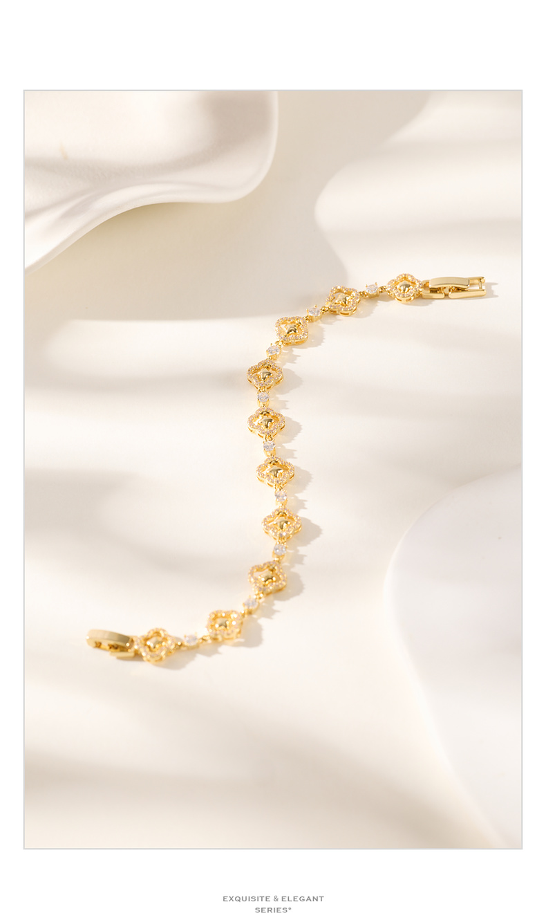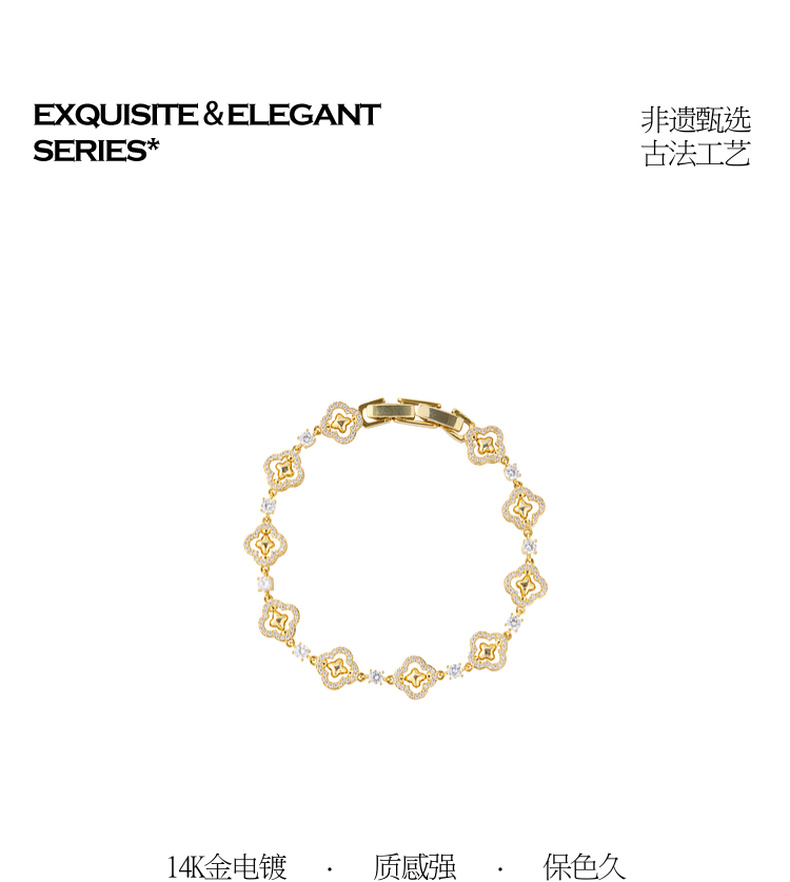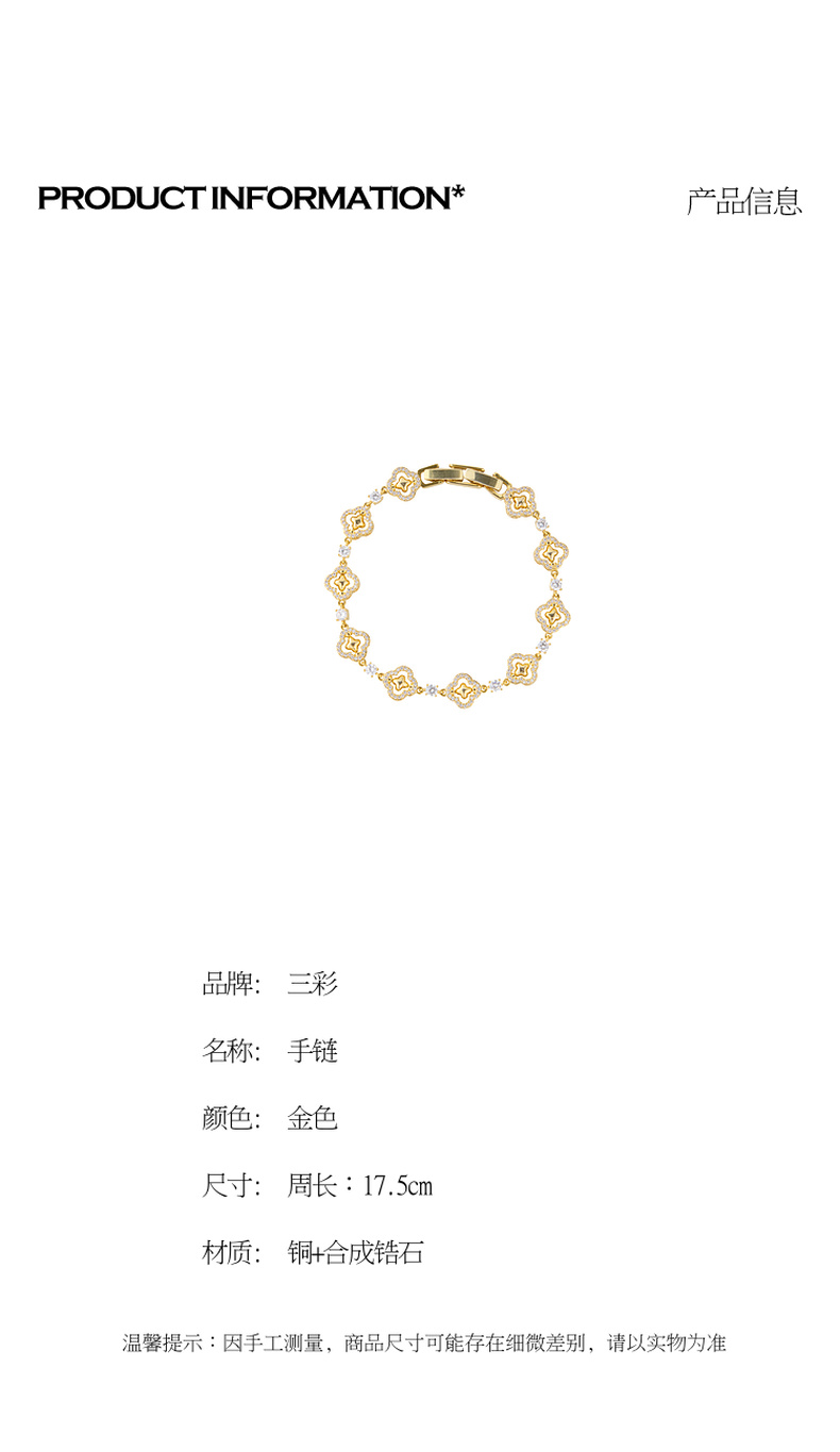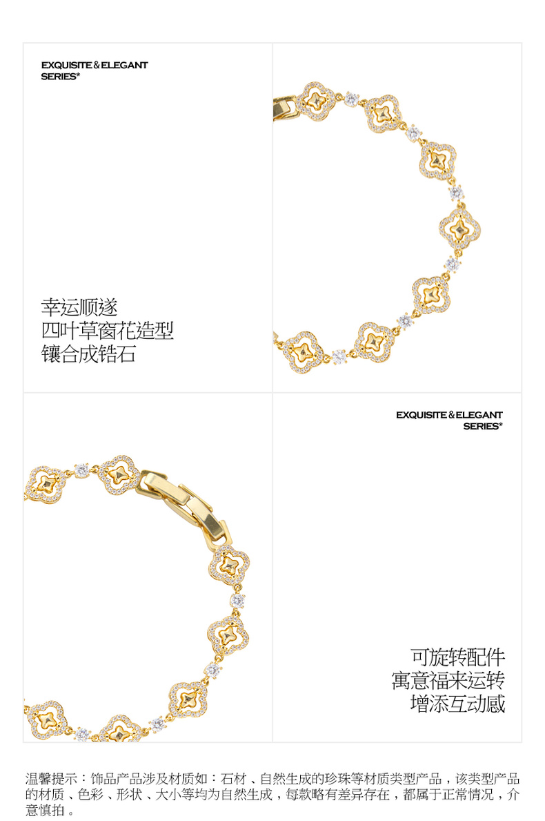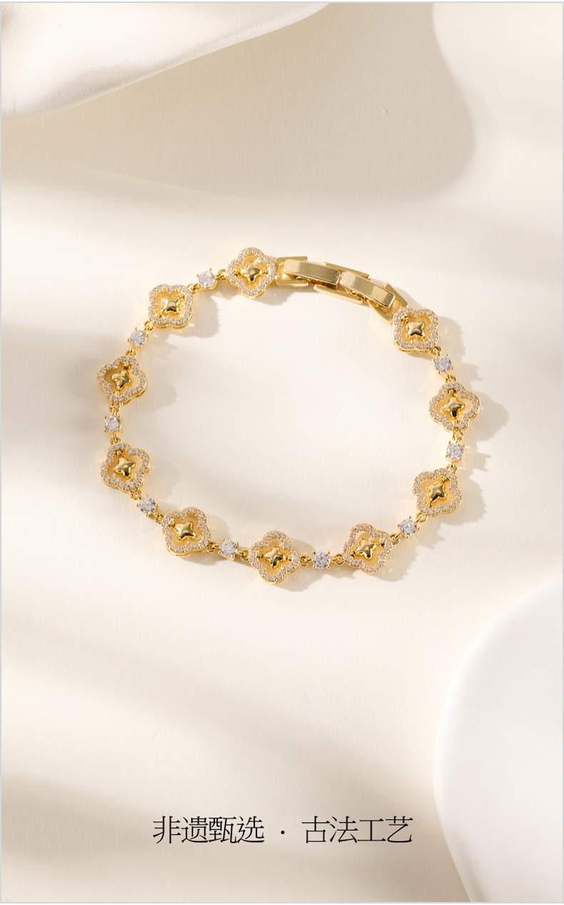 三彩2026新款镀金镶锆石四叶草窗花可旋转手链国风复古松弛文艺