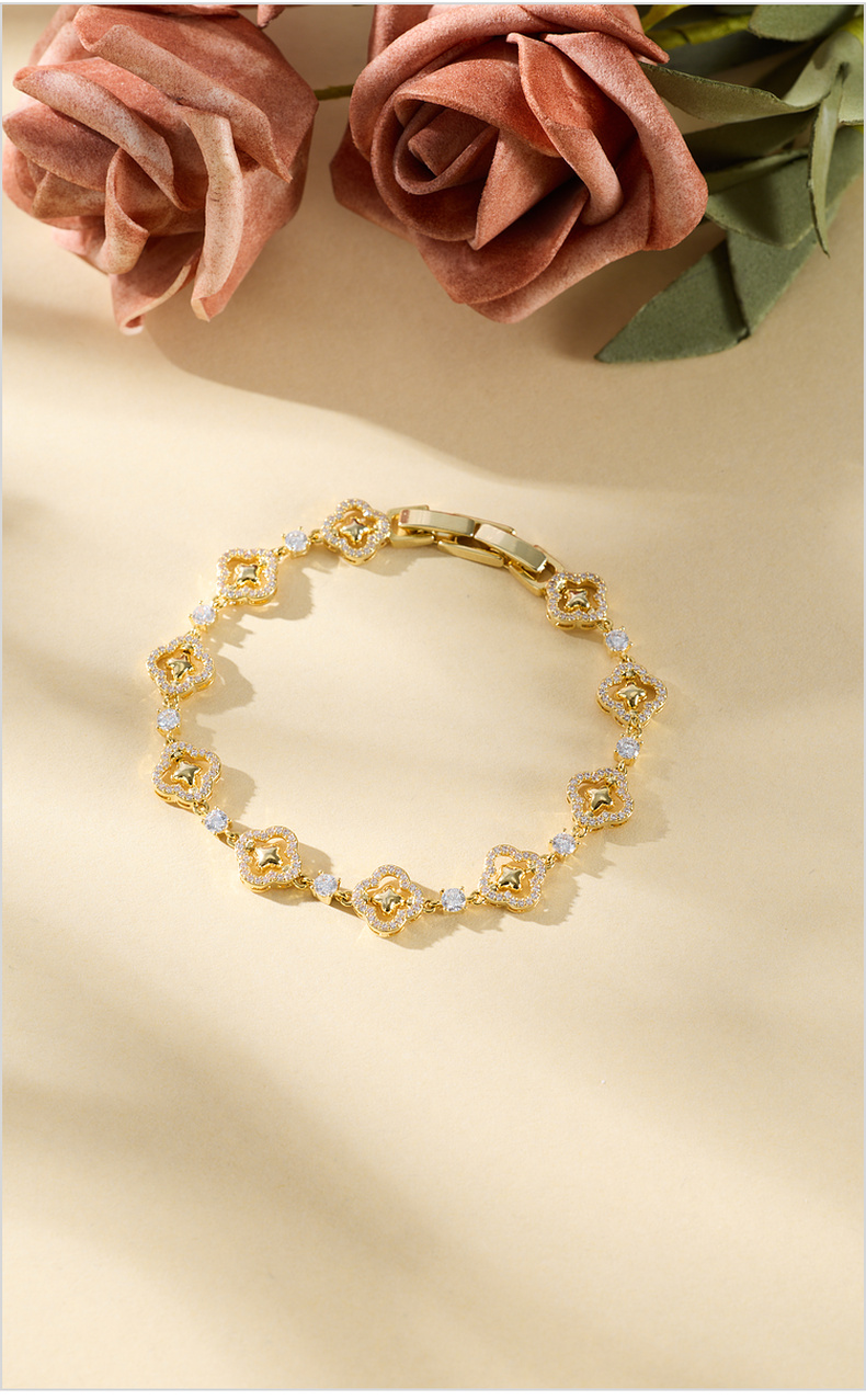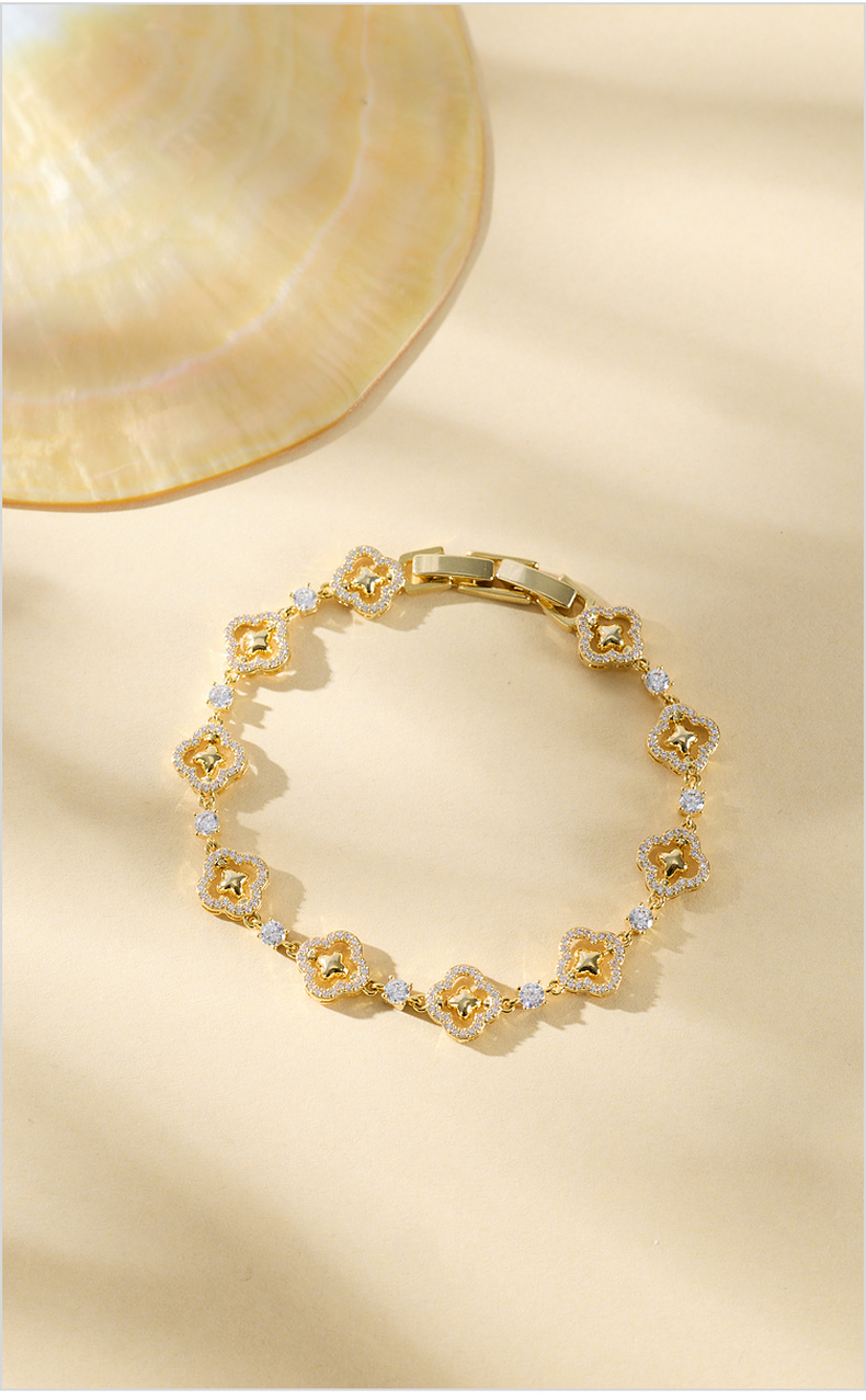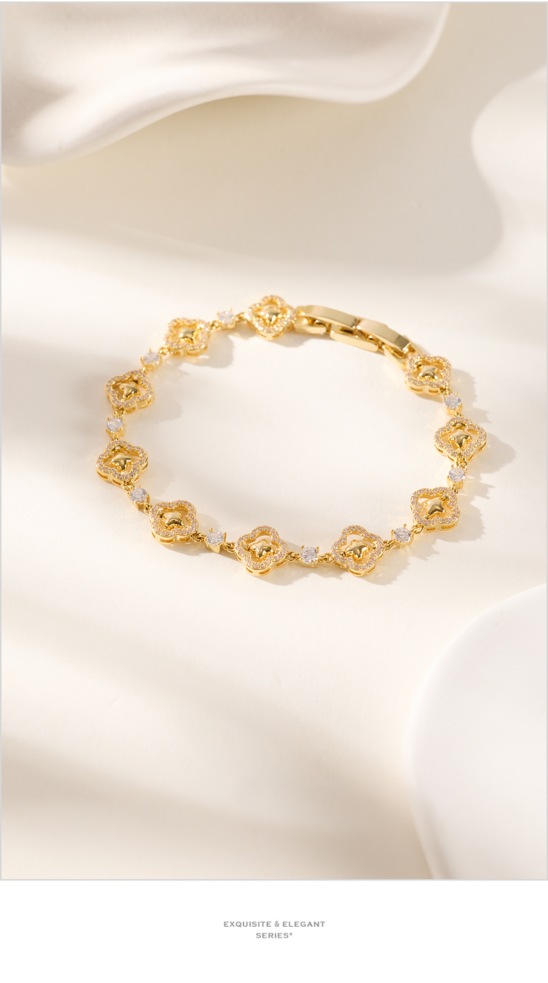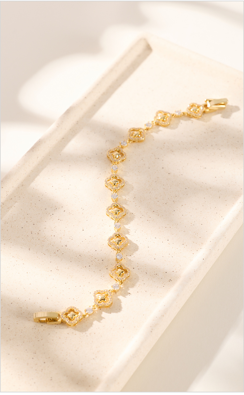 三彩2026新款镀金镶锆石四叶草窗花可旋转手链国风复古松弛文艺