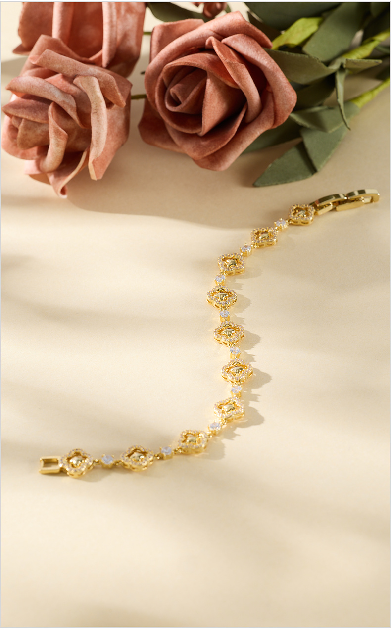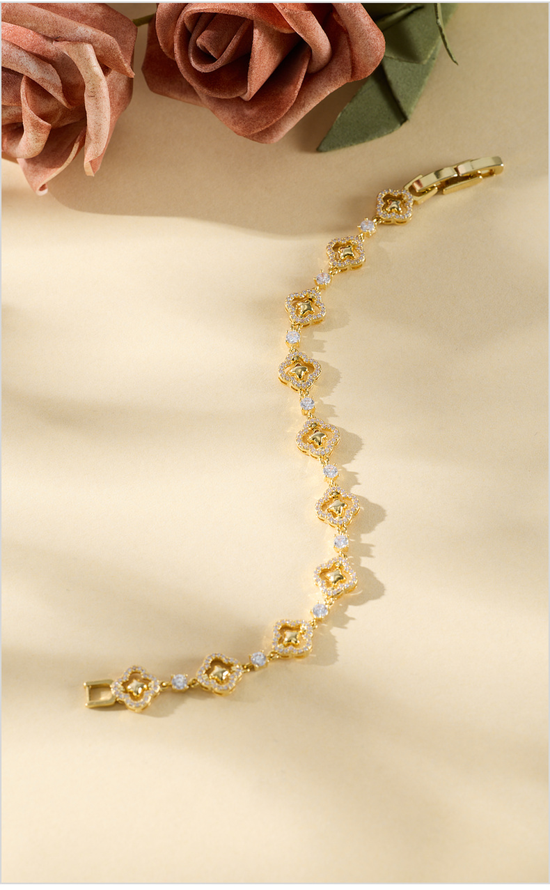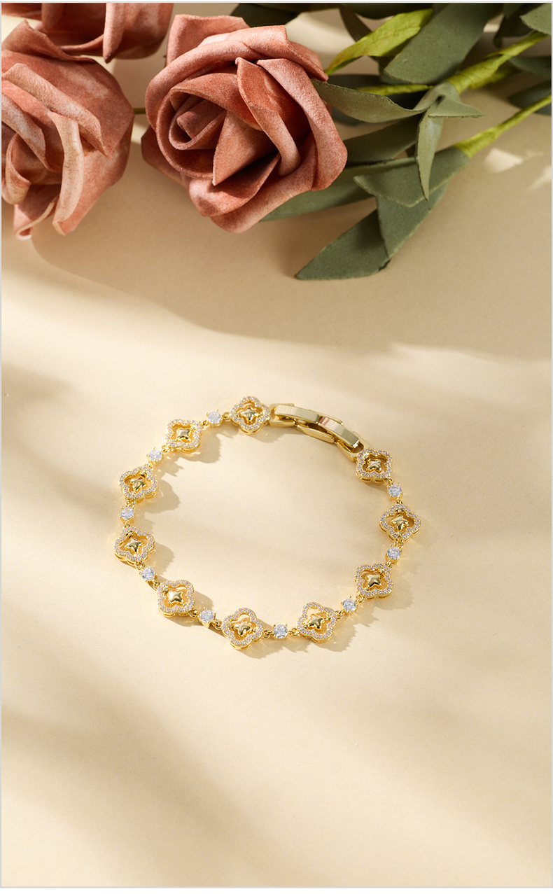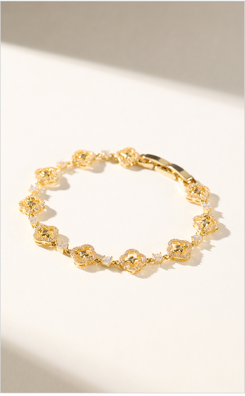 三彩2026新款镀金镶锆石四叶草窗花可旋转手链国风复古松弛文艺
