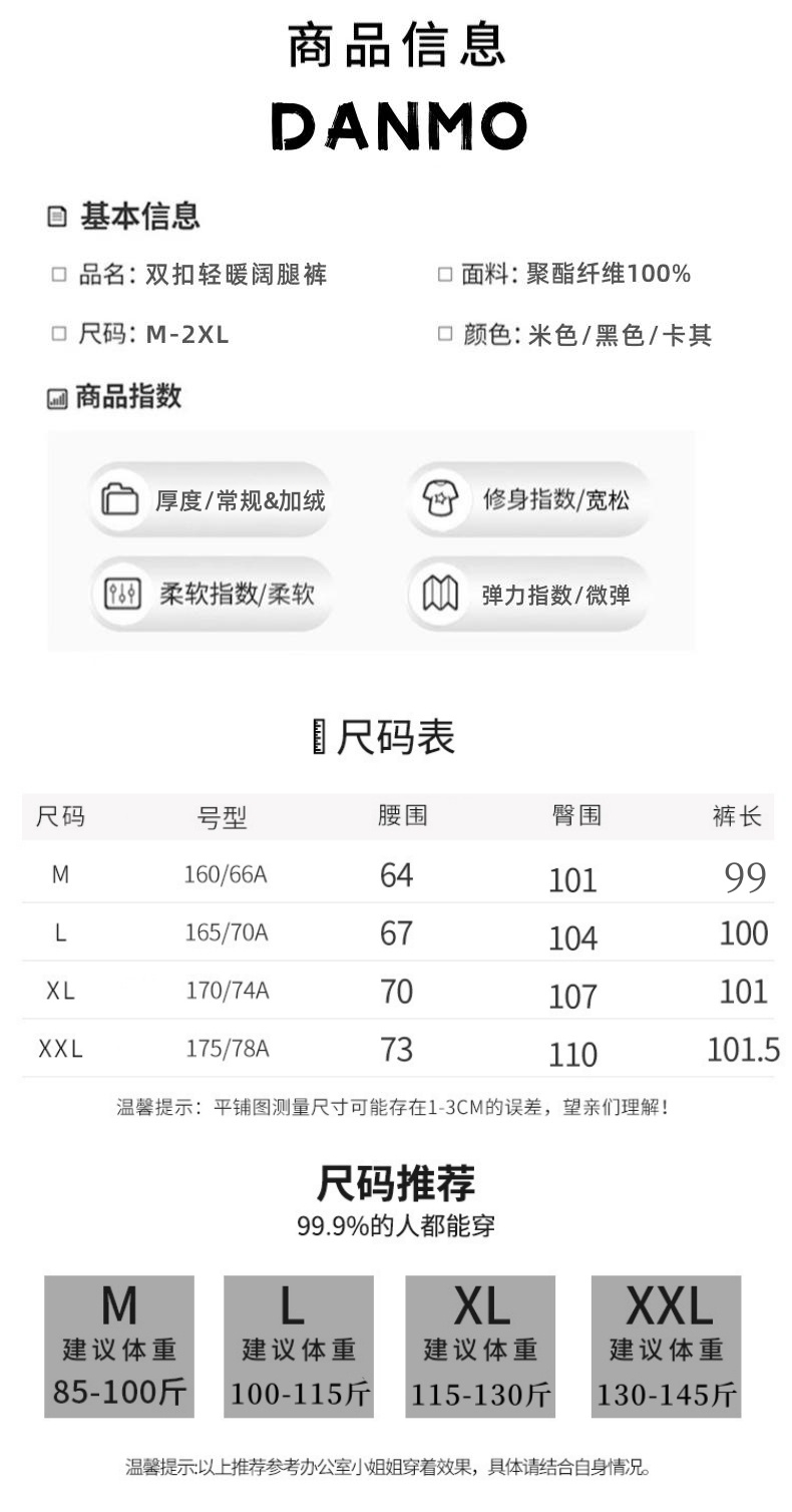 旦茉双扣轻暖阔腿裤,500g重磅面料!厚实不臃肿超保暖 上身秒变超模腿!【爆仓!加绒款预售3-5天内发货!!】